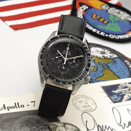 ·Donn Eisele wore two Speedmaster professional watches. The officially supplied watch was S/N 34. This watch was the ref. 105.012-65. He also wore another 105.012-65 but this was his own. NASA also gave this watch a serial number, which was unusual for an astronaut’s personal watch- S/N 38. This was sold by Sotheby’s.