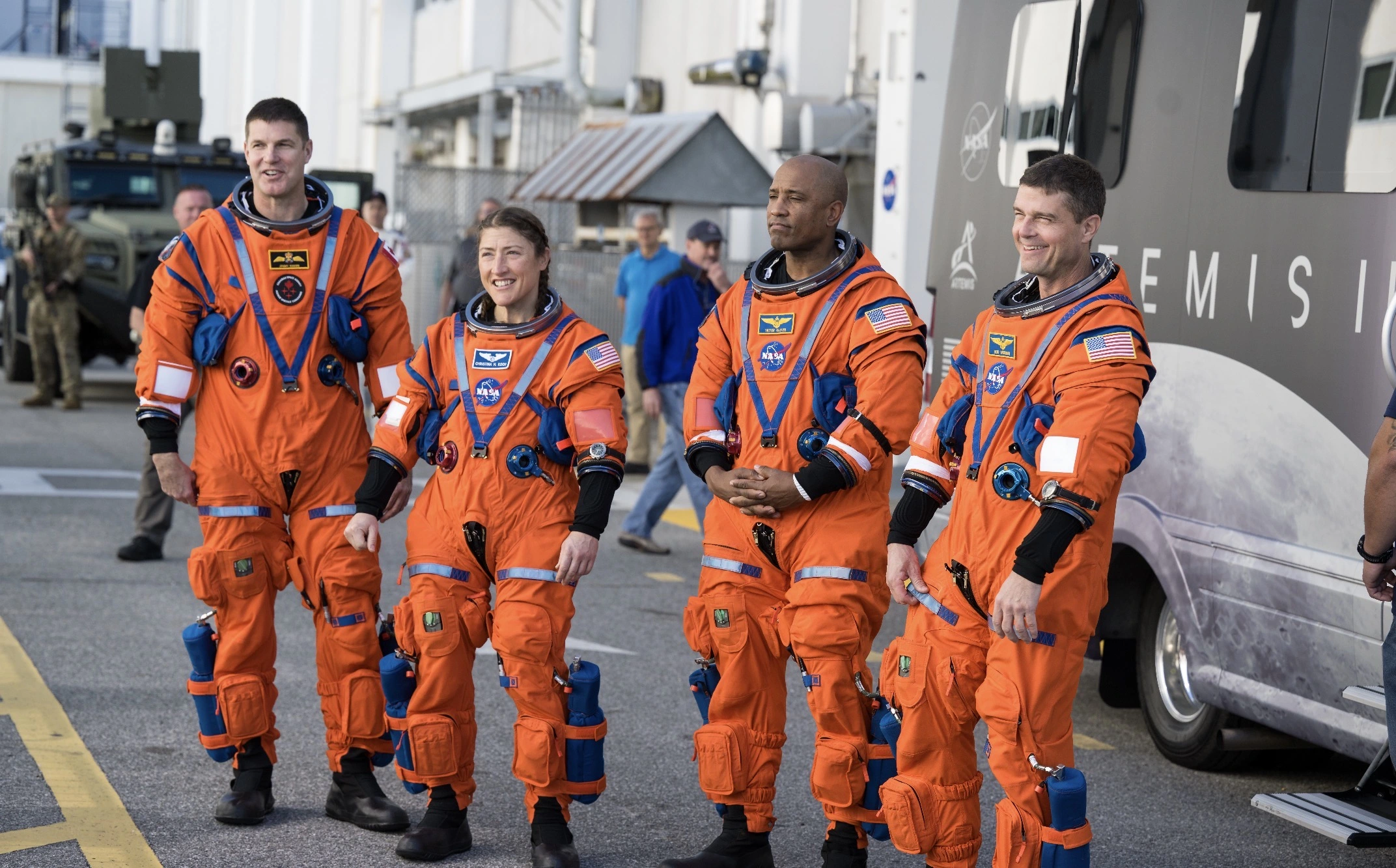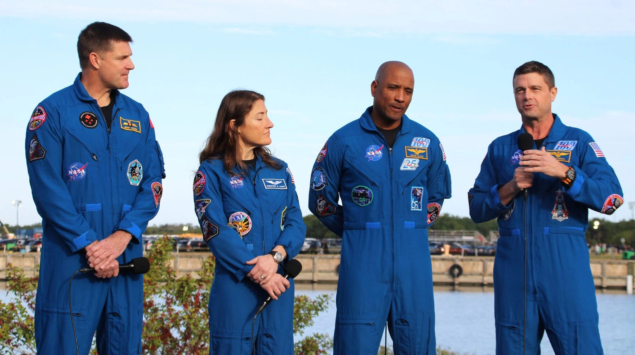 2026, March 29, pre-flight press conference in quarantine, as Artemis II astronaut Christina Koch clearly wore a NASA-issued Omega Speedmaster X-33 and the latest version of the NASA ActiWatch, her male colleagues all three wore a 24 hours dial Breitling Navitimer Cosmonaute chronograph.