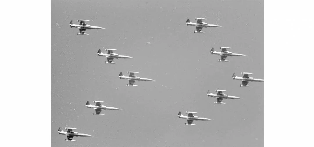 A F 104 Starfighter checking up on a Soviet Tupolev.