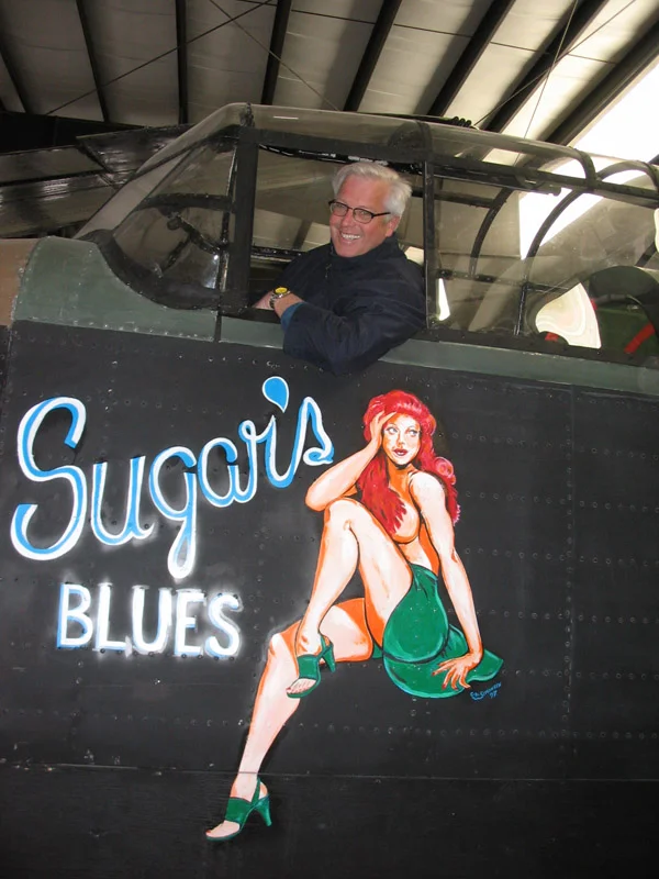 @Russ Murray doesn’t say it, but the Lancaster bomber located in Nanton, Alberta (see above), and in which he is pictured, is the very Lancaster bomber with the Sugar’s Blues nose art. We were there while it was running, today, but the crowds were too large, and crowd control was such that I was unable to photograph it while it was running.