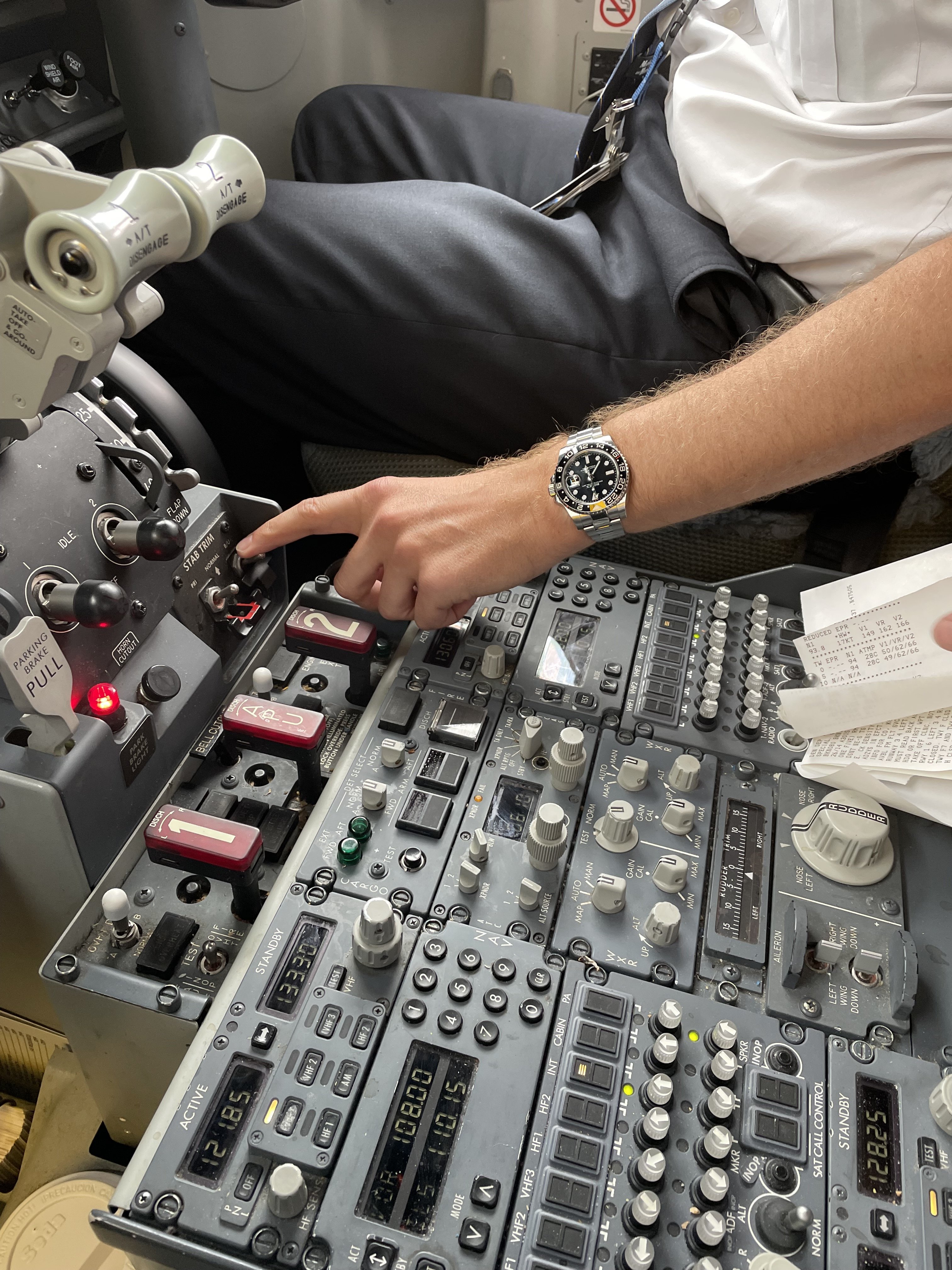 My last trip I just worked. 28 year old co-pilot with a GMT Master II....I made him go back out and double check the gear pins ever time I was so pissed!!!: