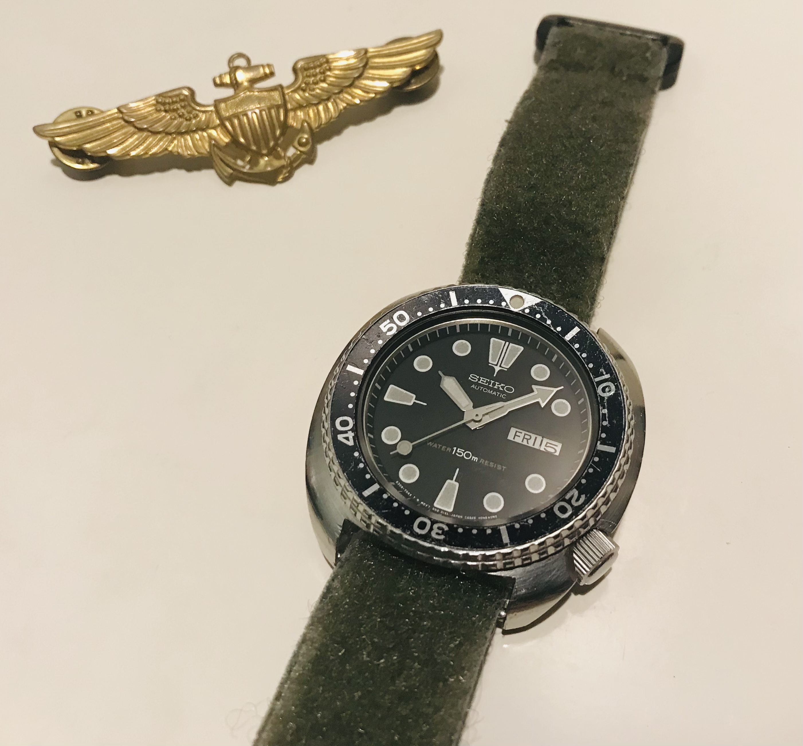 Just starting in to the mechanical watch world since my wife bought me the Omega Speedmaster Moonwatch this past Christmas; but I have been flying for the past 30+ years, most of it with the Navy. Here is a picture of a recent acquisition here in the desert. I will try to post some more watch action shots from the aircraft.
