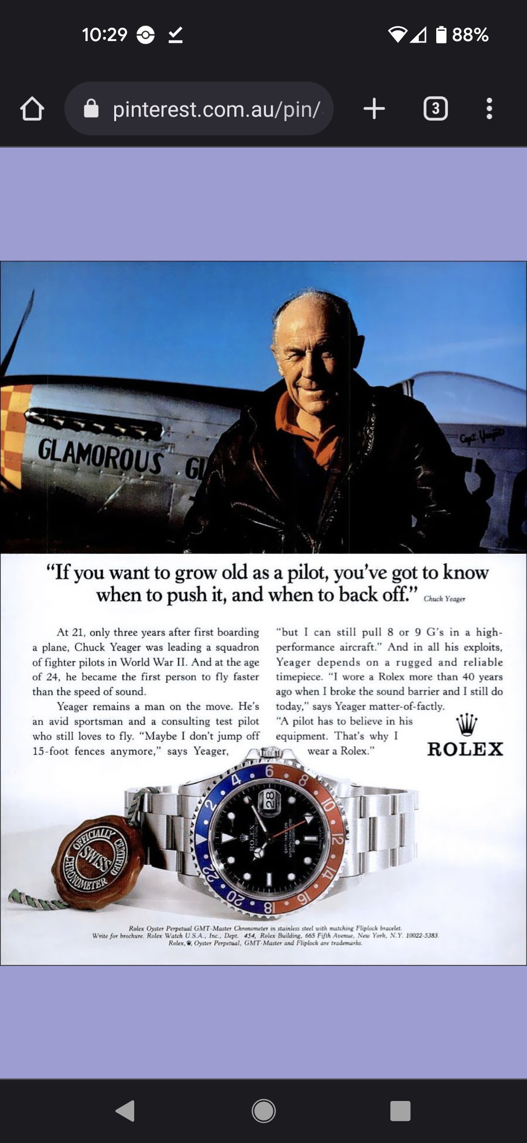 I didn't know that Chuck Yeager was a Rolex ambassador. Guess you learn something new every day! 😁