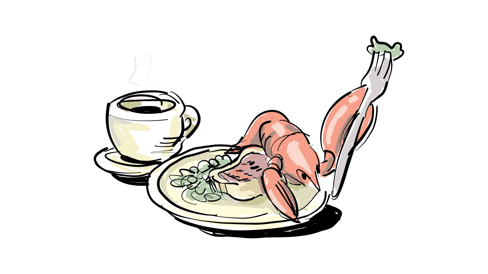 I had been flying night flights every night for the past few weeks up to this point, and it was taking its toll on me. Landing a jet on a carrier at night is truly terrifying. Everything is controlled with your fingertips; the glideslope, the lineup control, and the angle of attack of the aircraft. My legs were shaking after every “trap,” or landing, so I needed my body to be in tip-top shape. That’s why, on this particular night, I was happy to see that it was surf-n-turf night in the wardroom. Steak and lobster usually signifies that bad news is coming, but I was fat, dumb and happy, and ready to eat some good shellfish.