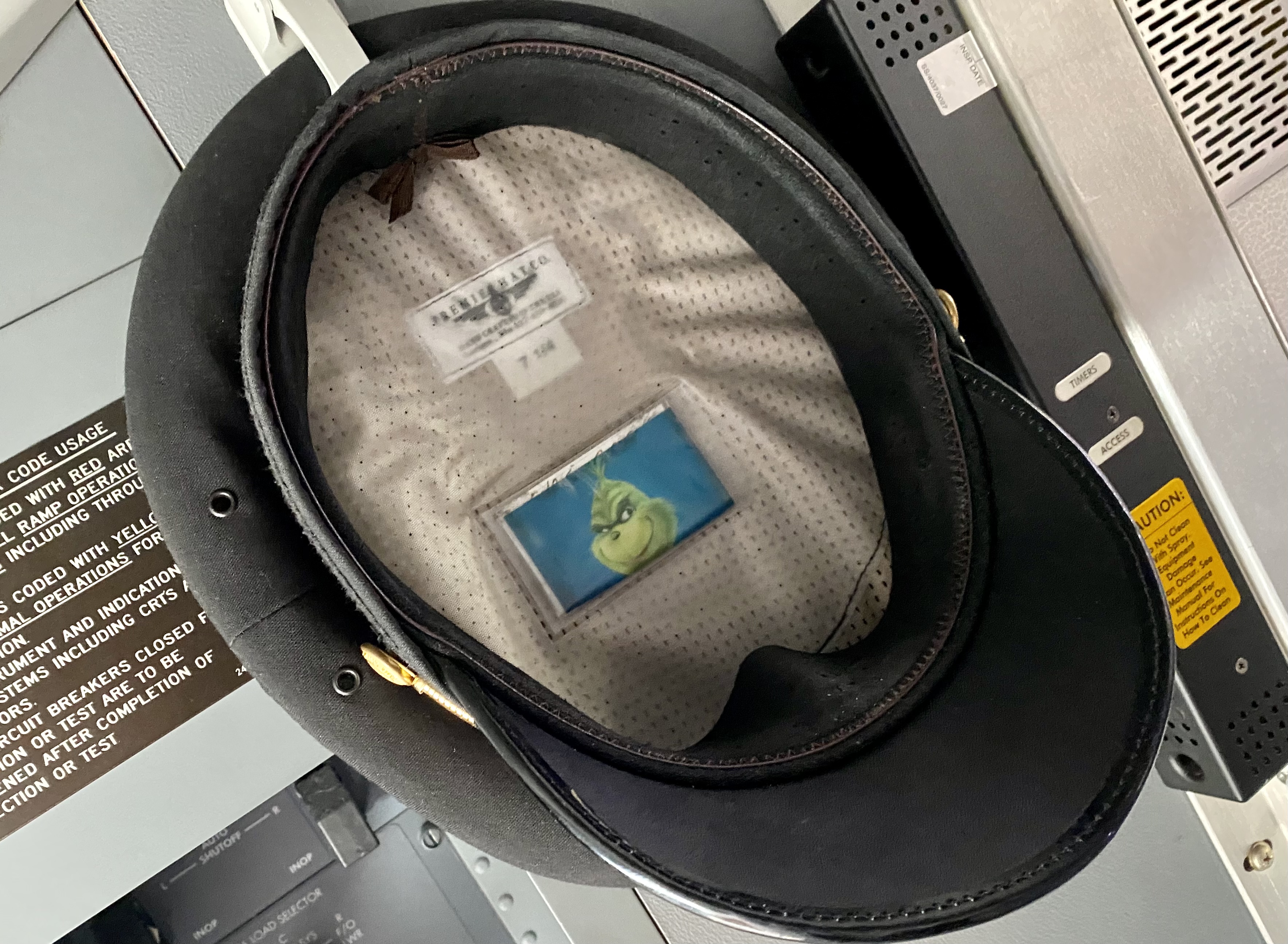 BONUS: Here’s a pic of the inside of The Grinch’s uniform hat…and his Breitling Headwind automatic…