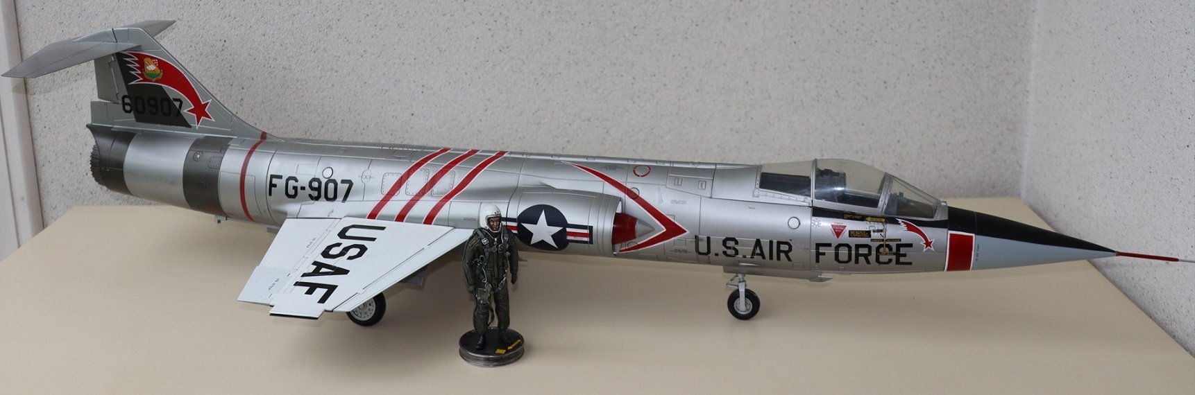 Snap& click scale model of USAF F-104C FG907, delivered in January 1959 it already crashed on January 29, 1959 at George AFB, California.