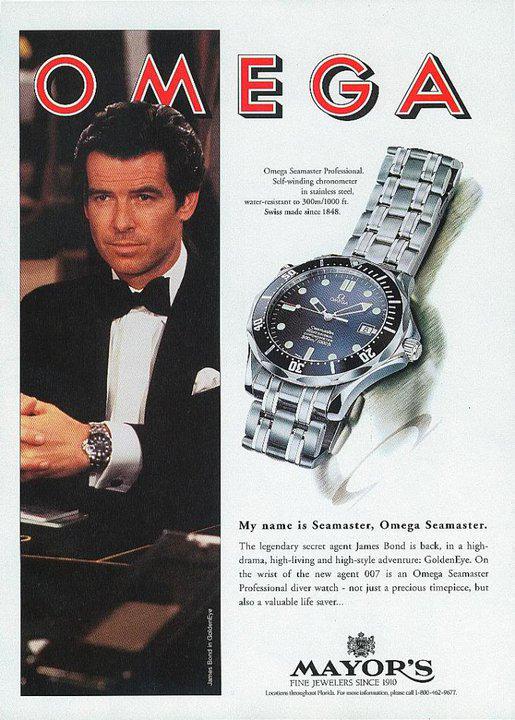 ·Correct. The switch from Rolex to Omega in Goldeneye was not product placement, but the decision of the costume designer. There is certainly a product placement arrangement now, but that was not the case at the time that the change was made.