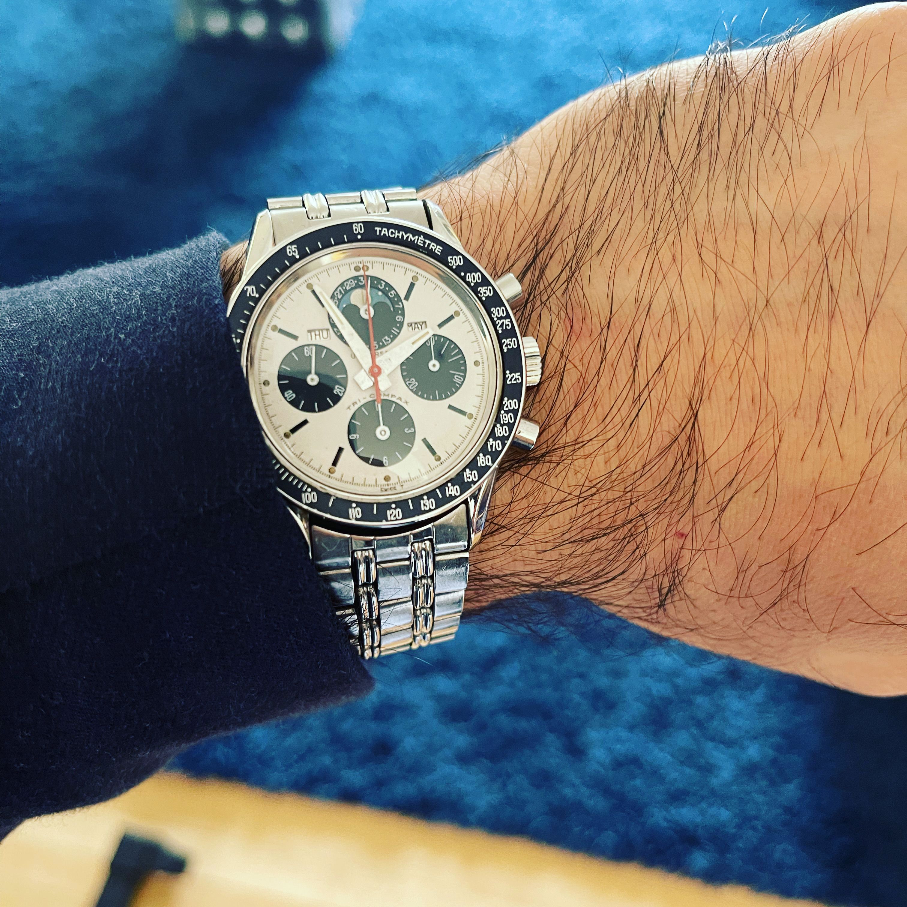 ·I was lucky to pick up an incredible, time capsule worthy Clapton Tri-Compax a couple of weeks ago. The seller's family owned a jewelry store for decades and at some point in the last decade, she purchased the watch (presumably through her family's store). She tucked it away in her safe, however, and never wore the watch (I guess she just liked to look at it - I get it!). She listed it for sale a year ago and I came close to buying it, but ultimately her ask seemed a bit too high at the time. A year later, she texted to let me know that she wanted to sell it to me if I was open to the same price - I should have purchased it the first time, so after I serendipitously got a second bite at the apple, I didn't hesitate.