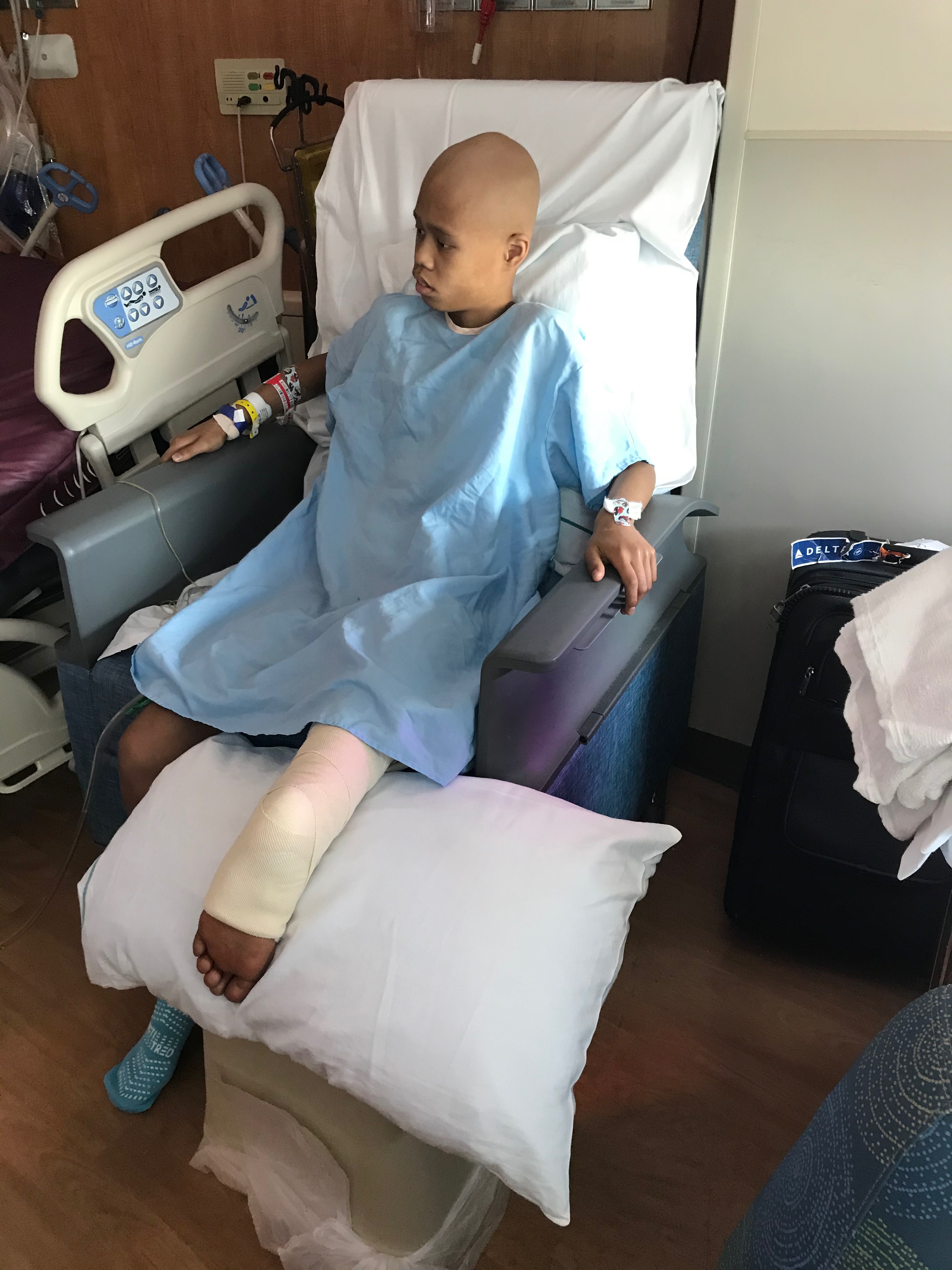 Mark has been doing reMARKably well (pun intended), and we brought him home this afternoon. We still have months of chemo and also physical therapy/prosthetic fittings, etc. to go, but we believe our boy is going to beat this cancer.