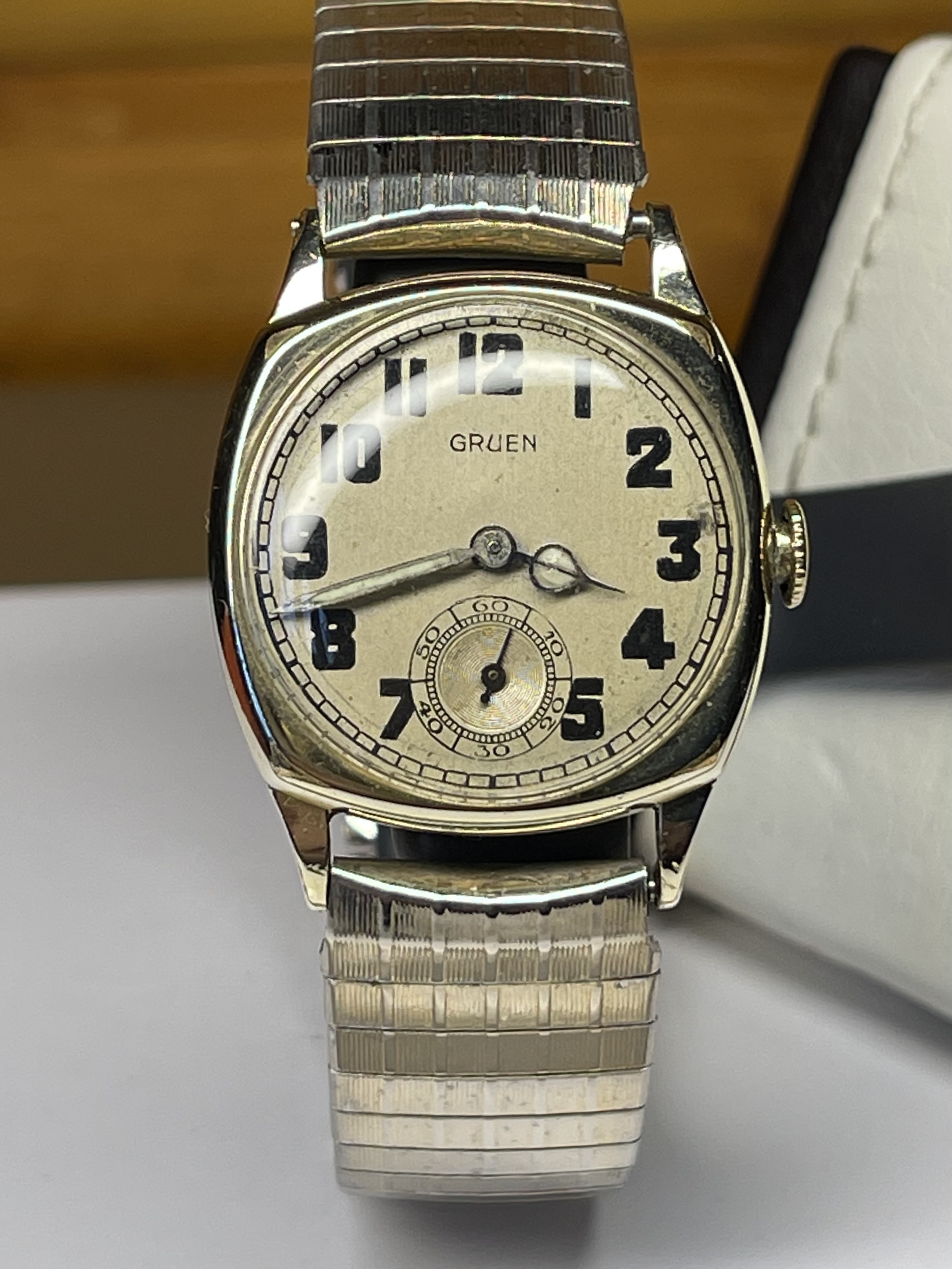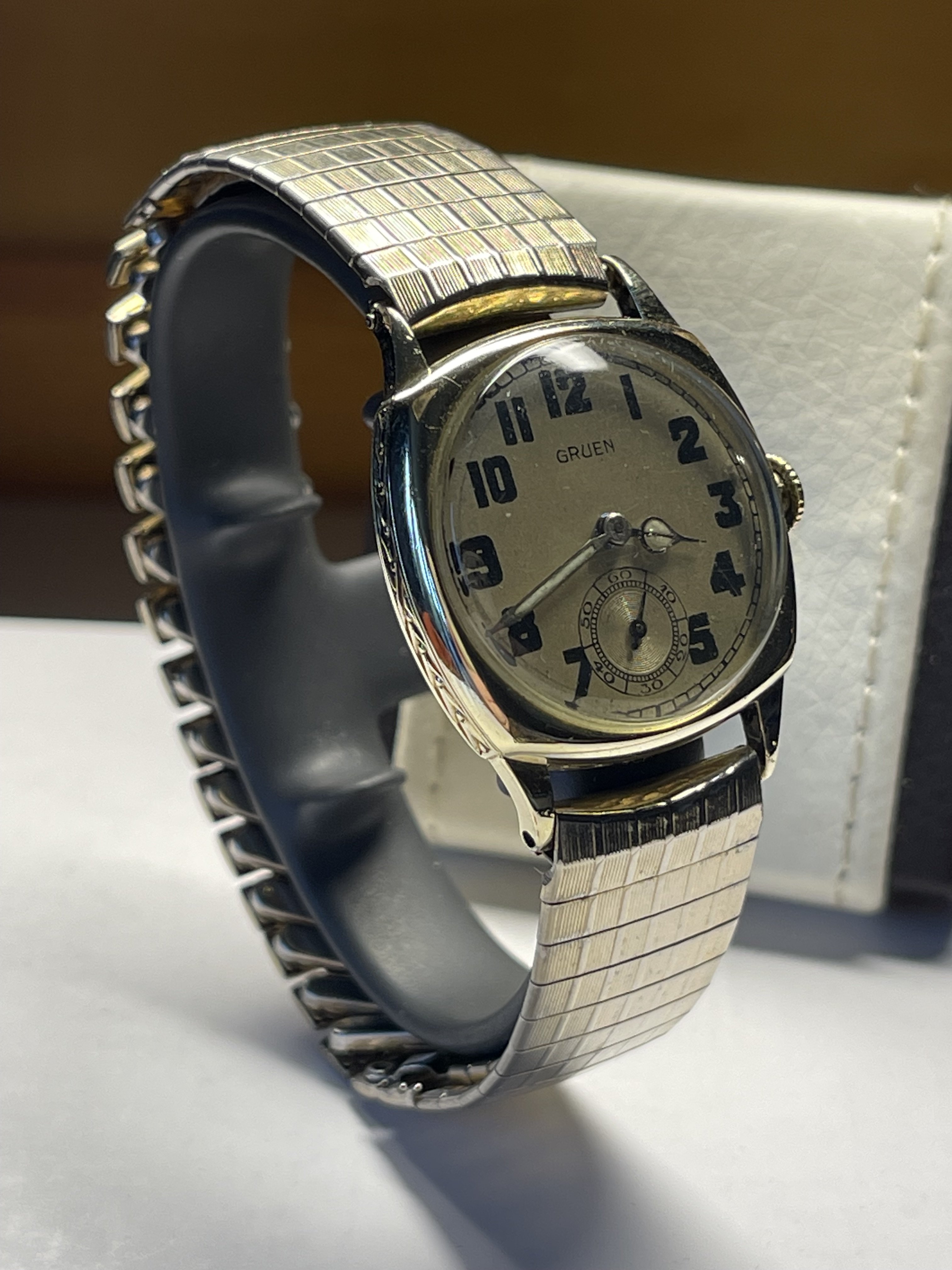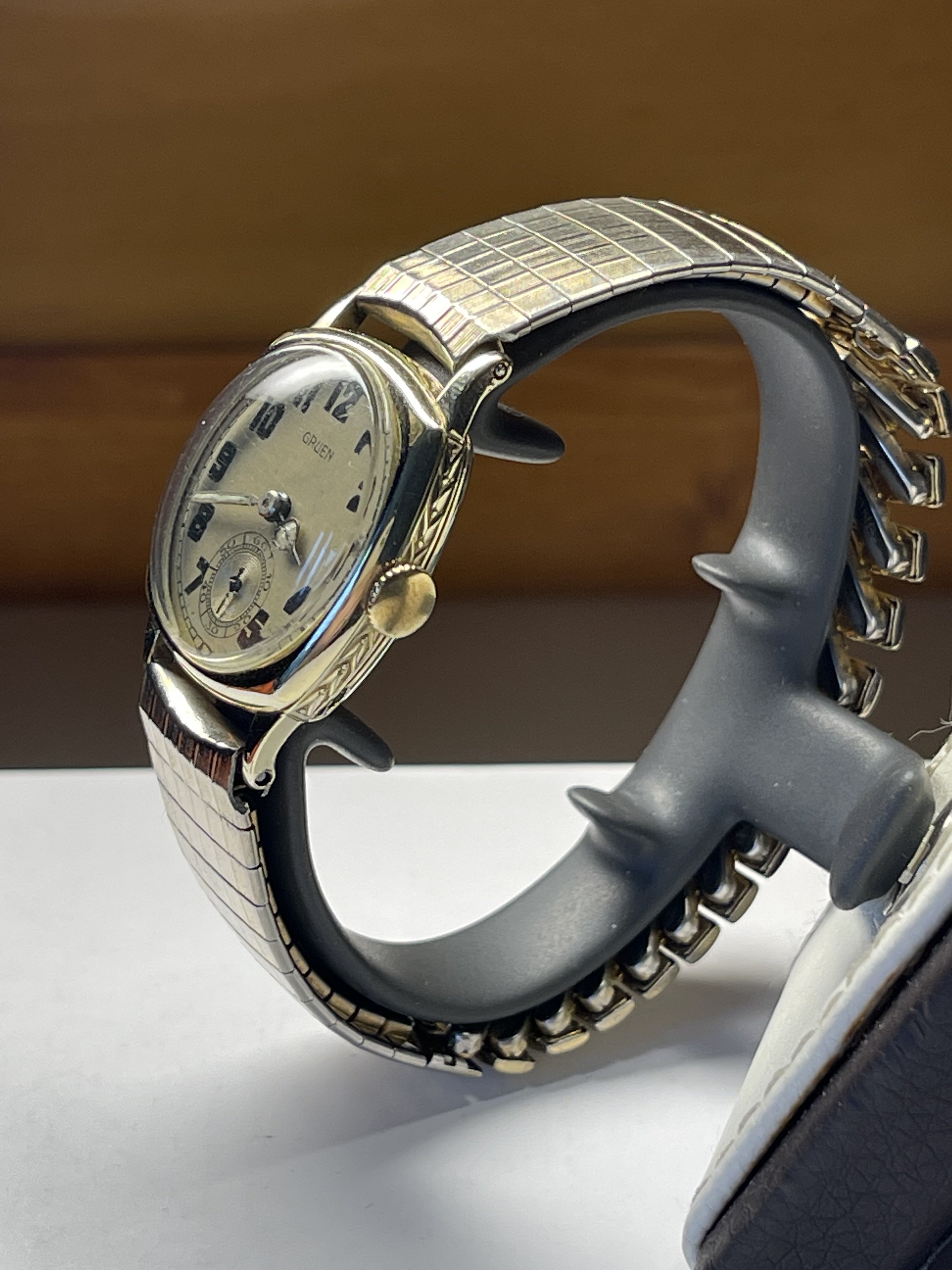 The wording for the Artcurial Auction was in French as a first language but someone must have used a "translate" so copy and paste the description and sometimes the word "Gift" comes out as "Offered" and that would explain the awkward wording in the Ebay listing (well in my mind anyway).. so I asked a question on the listing, It turns out the seller is the original purchaser from the Artcurial Auction in 2012 and he is an Italian Doctor that lives in Monaco, he was a busy chap and must have copied and pasted the Pic and the description for the listing and placed it in "Film and TV props" category rather than "Watches" he also was very much into high end collectors cars 1930s Bugattis and Bentleys worth millions and that was his main hobby, he bought the Gruen and another watch at the Artcurial Auction as he was "just there" !
