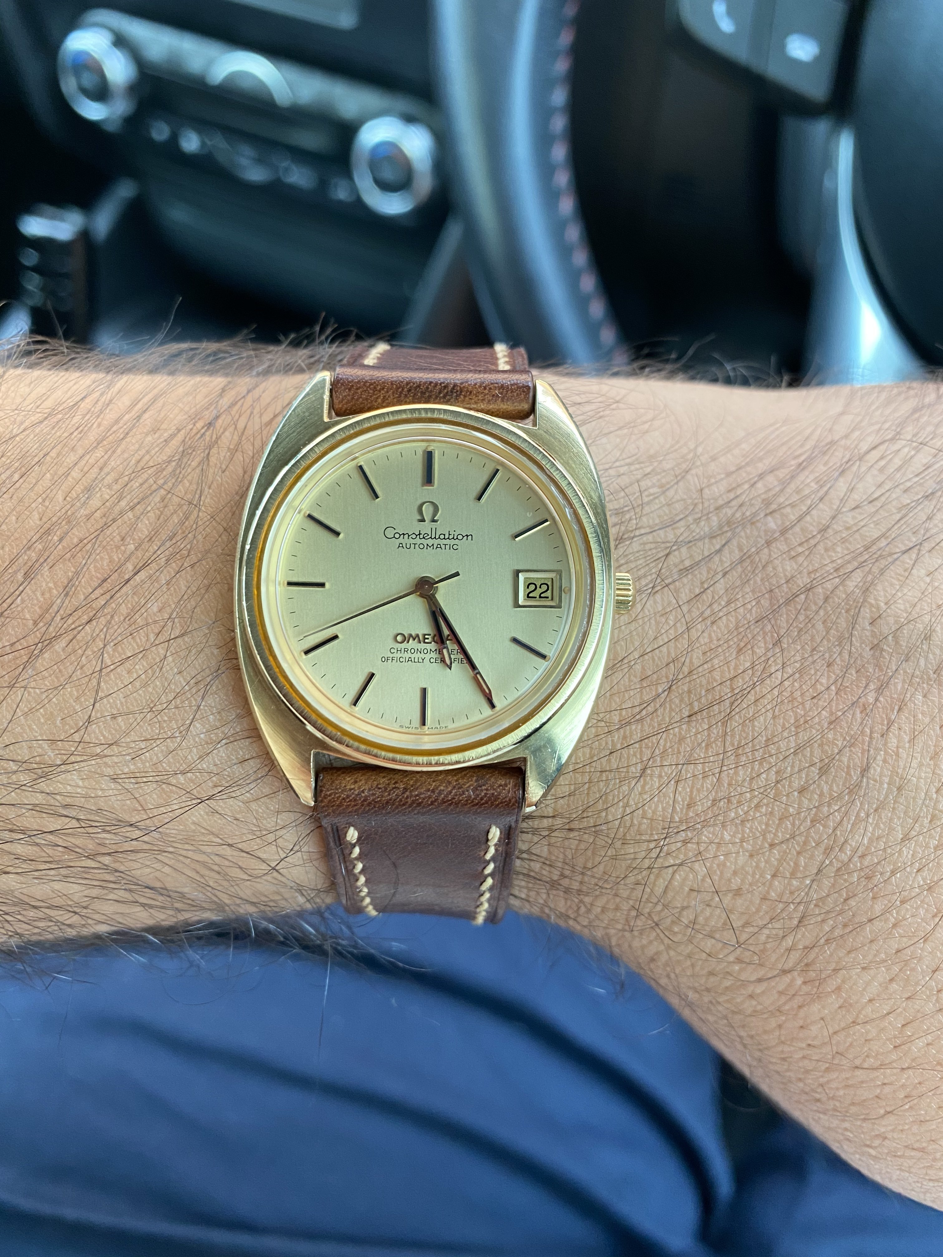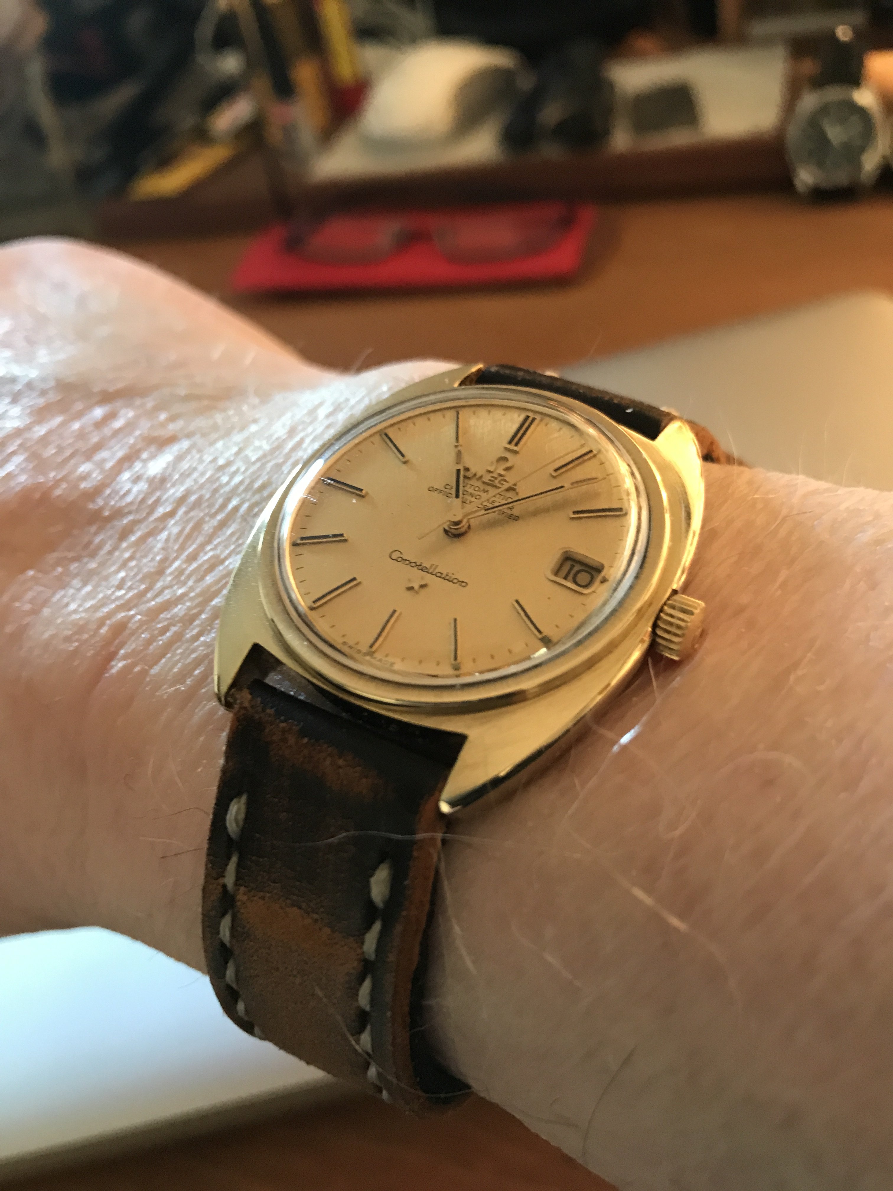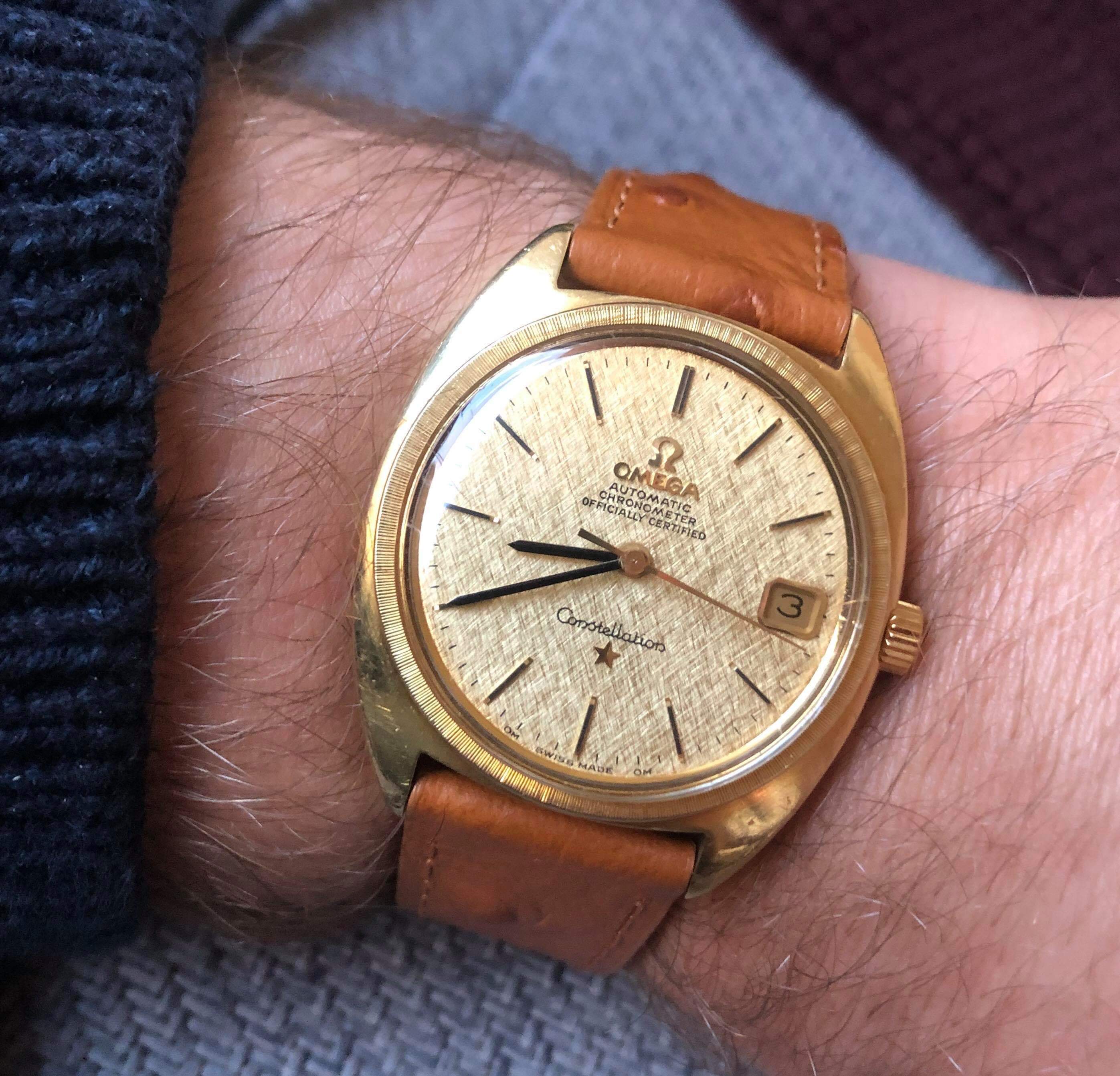 The 168.017 is available with both a radial brushed and smooth bezel. This is my gold-capped example from 1968