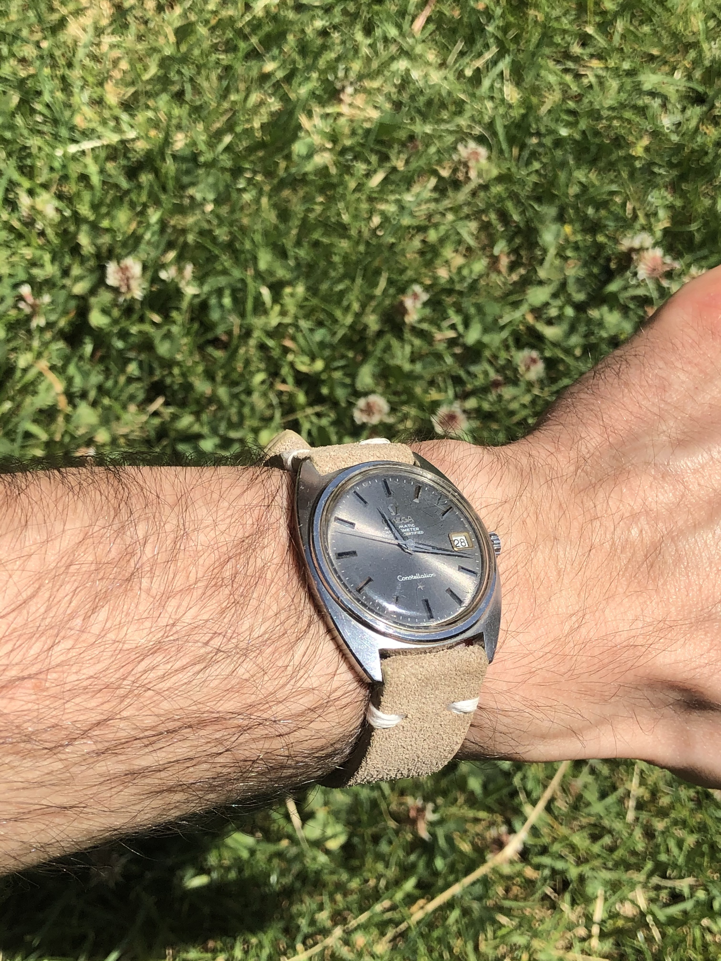 My potato photos don't capture much well, but the one on the top right corner is the whiter one, while the rest appear more light-greyish - this one almost appear like the white/plain dial variation