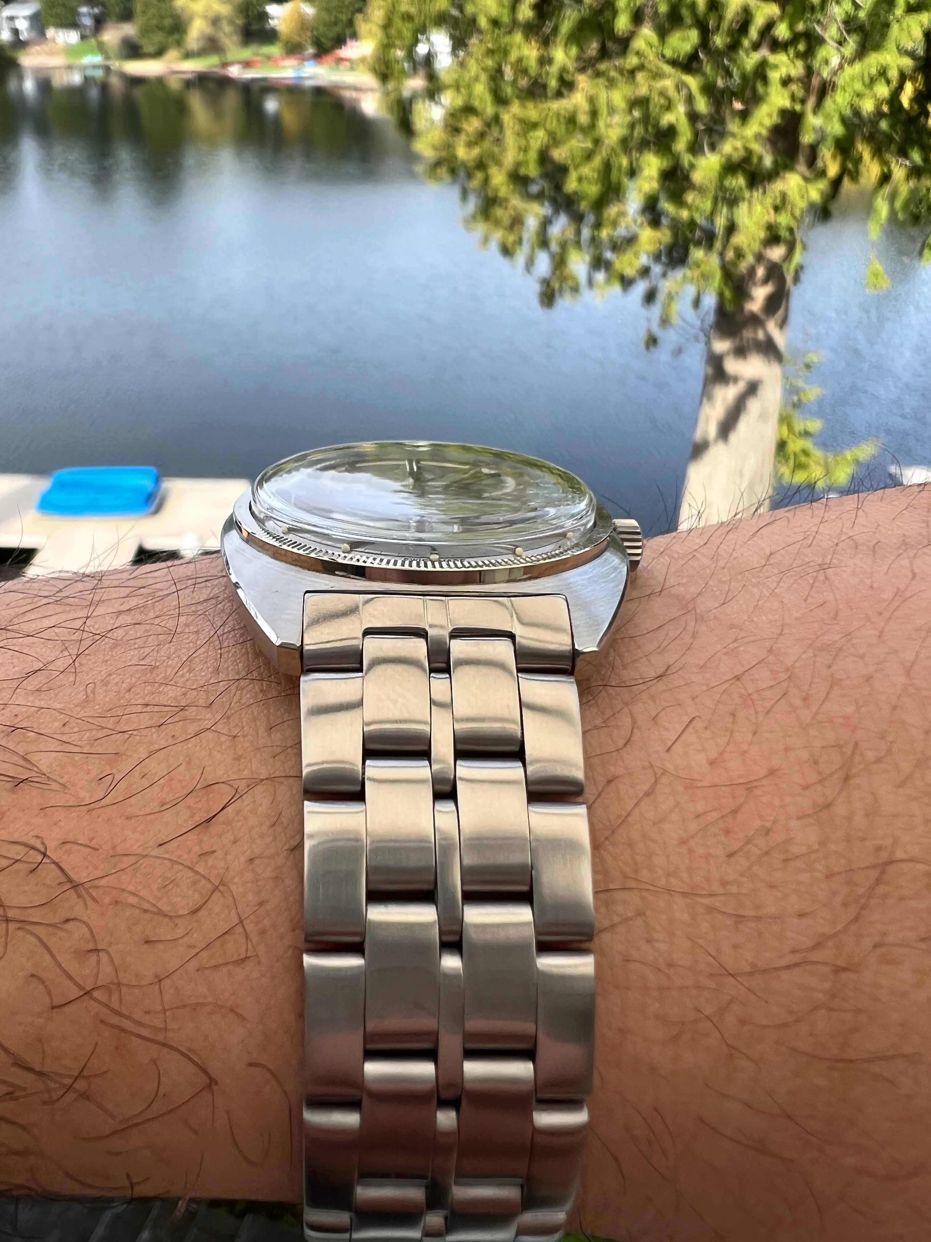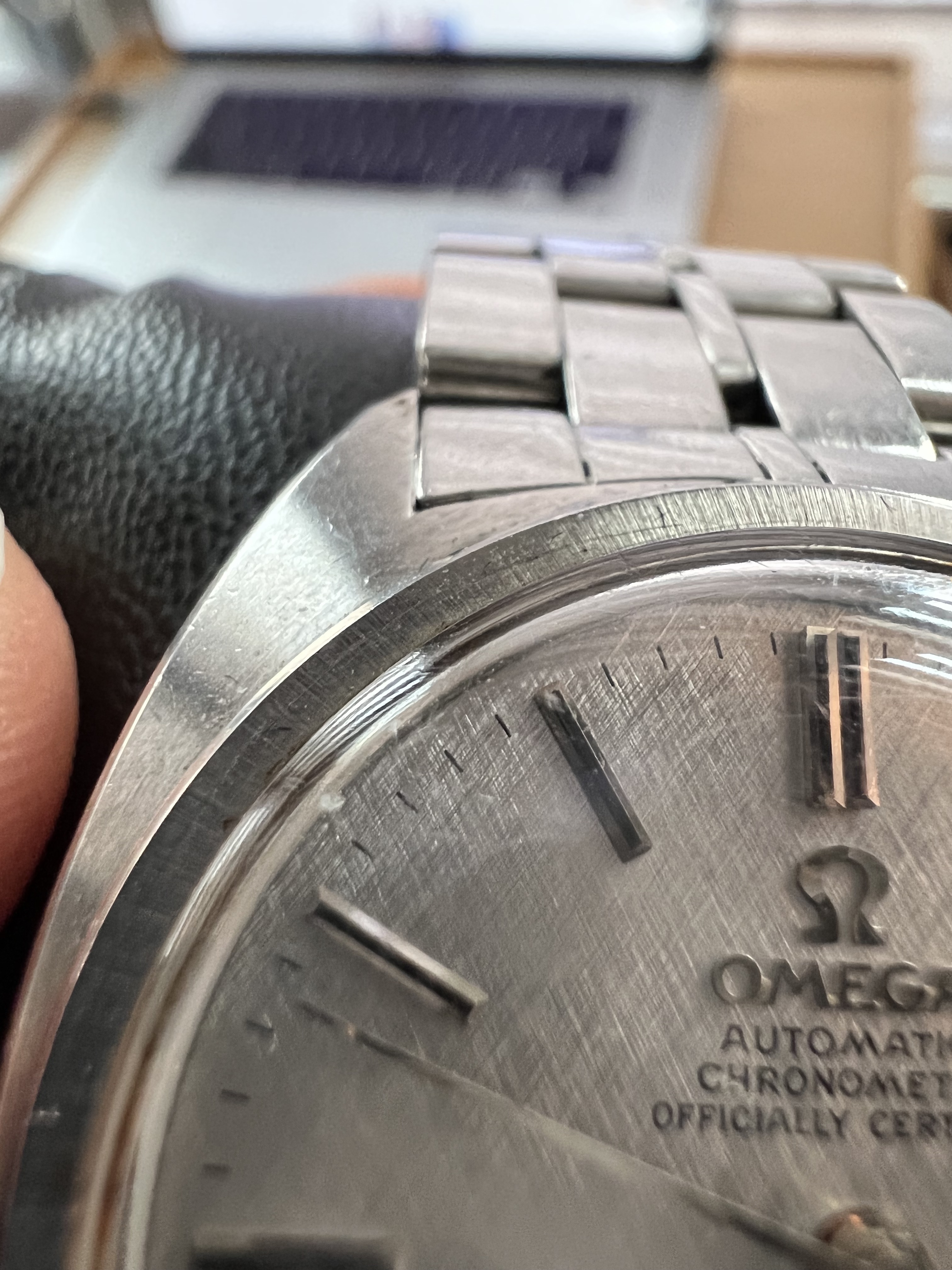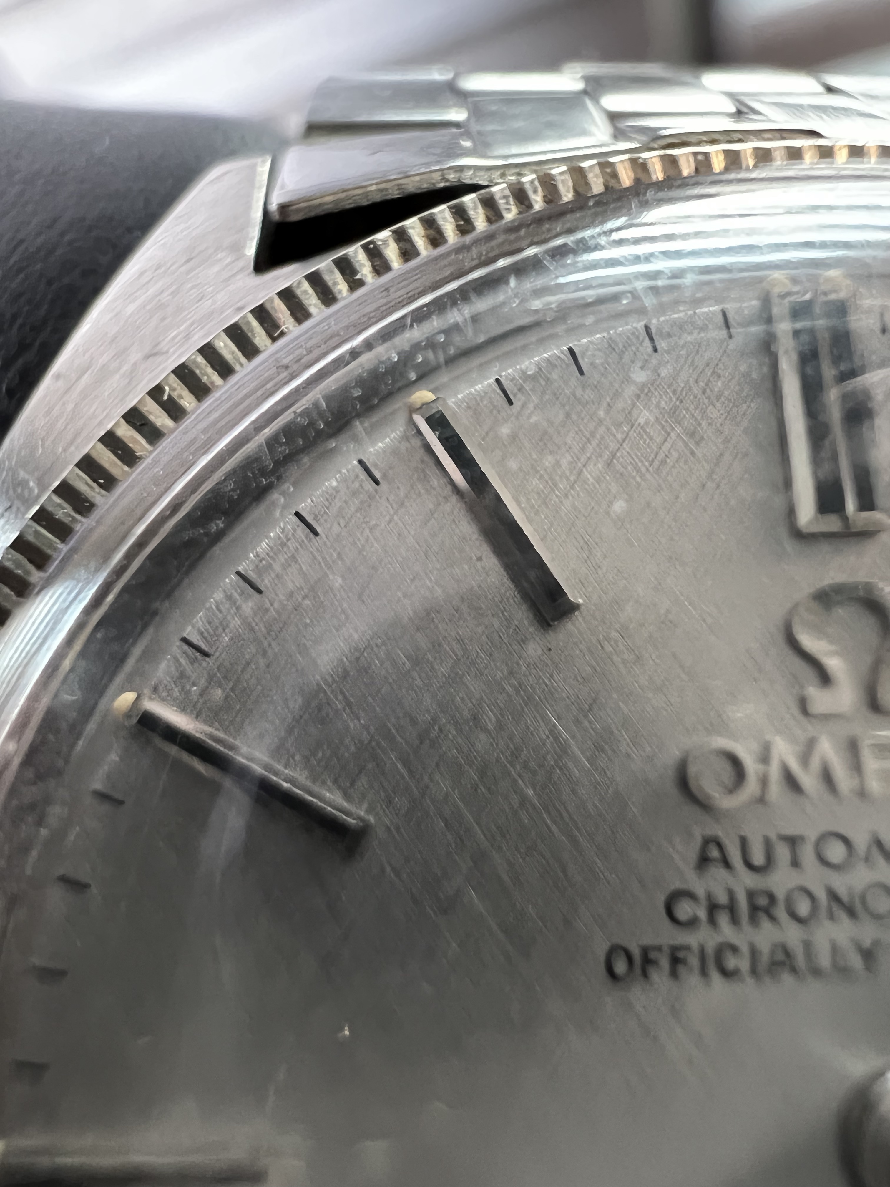 I have a Meister dial 168.017 cal 561 c-shape and it too looks flatter than my other 168.017 cal 564 for example. The Meister dial one is of earlier series and I suspect that it's got a slightly flatter crystal and that causes the effect.