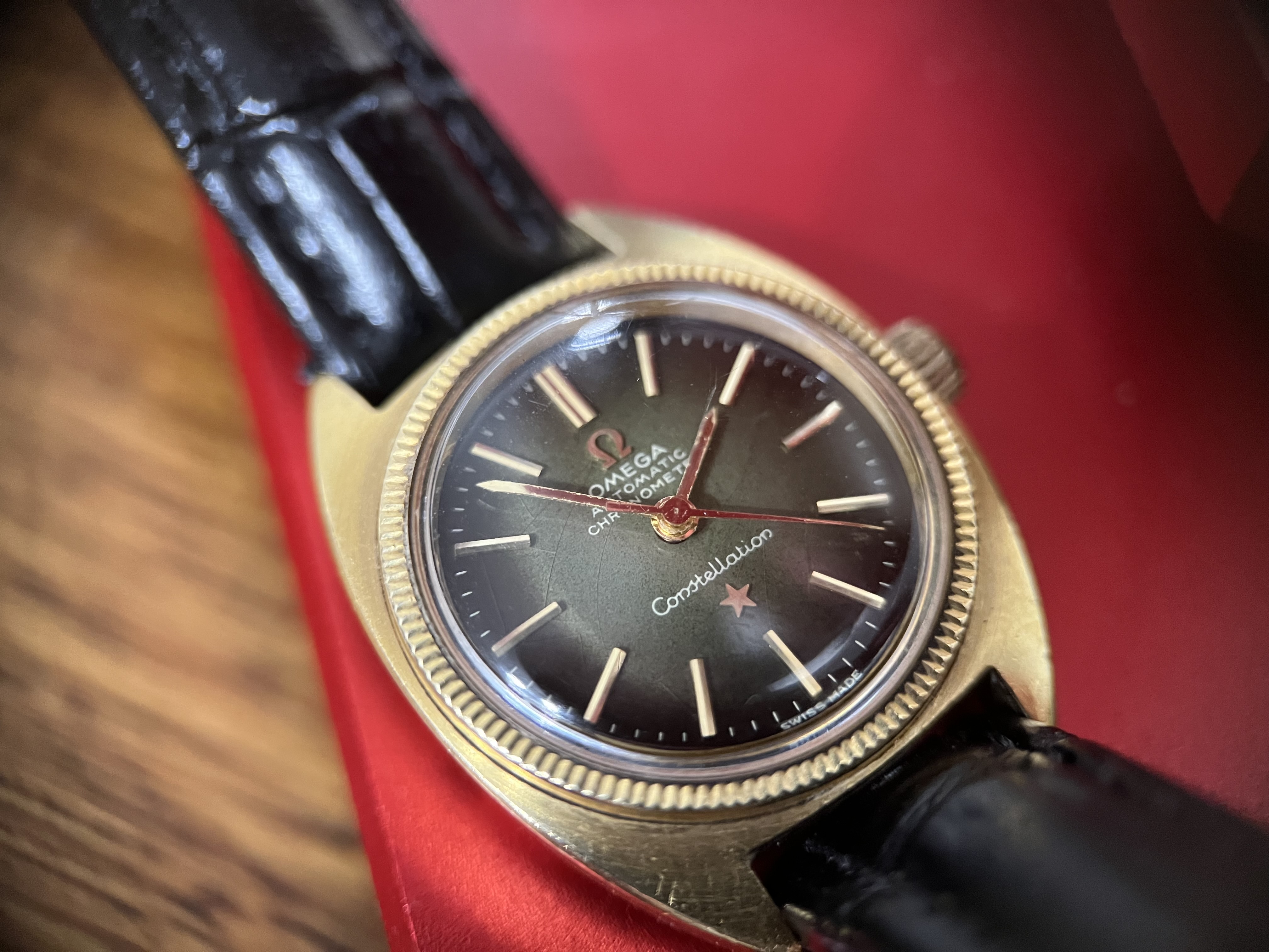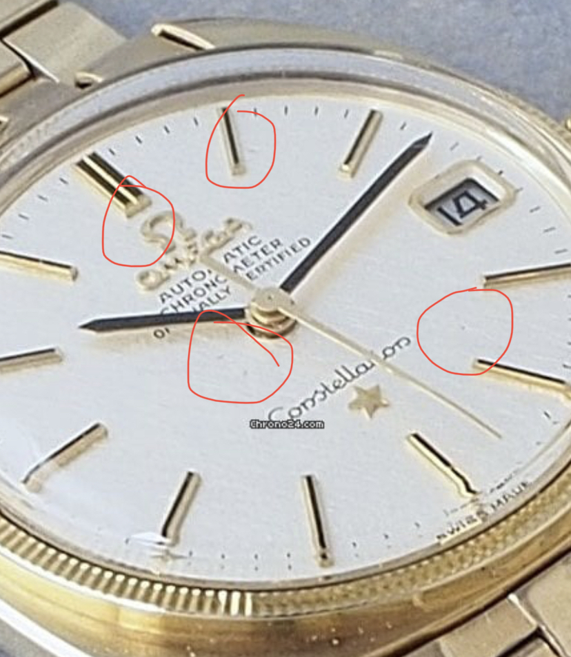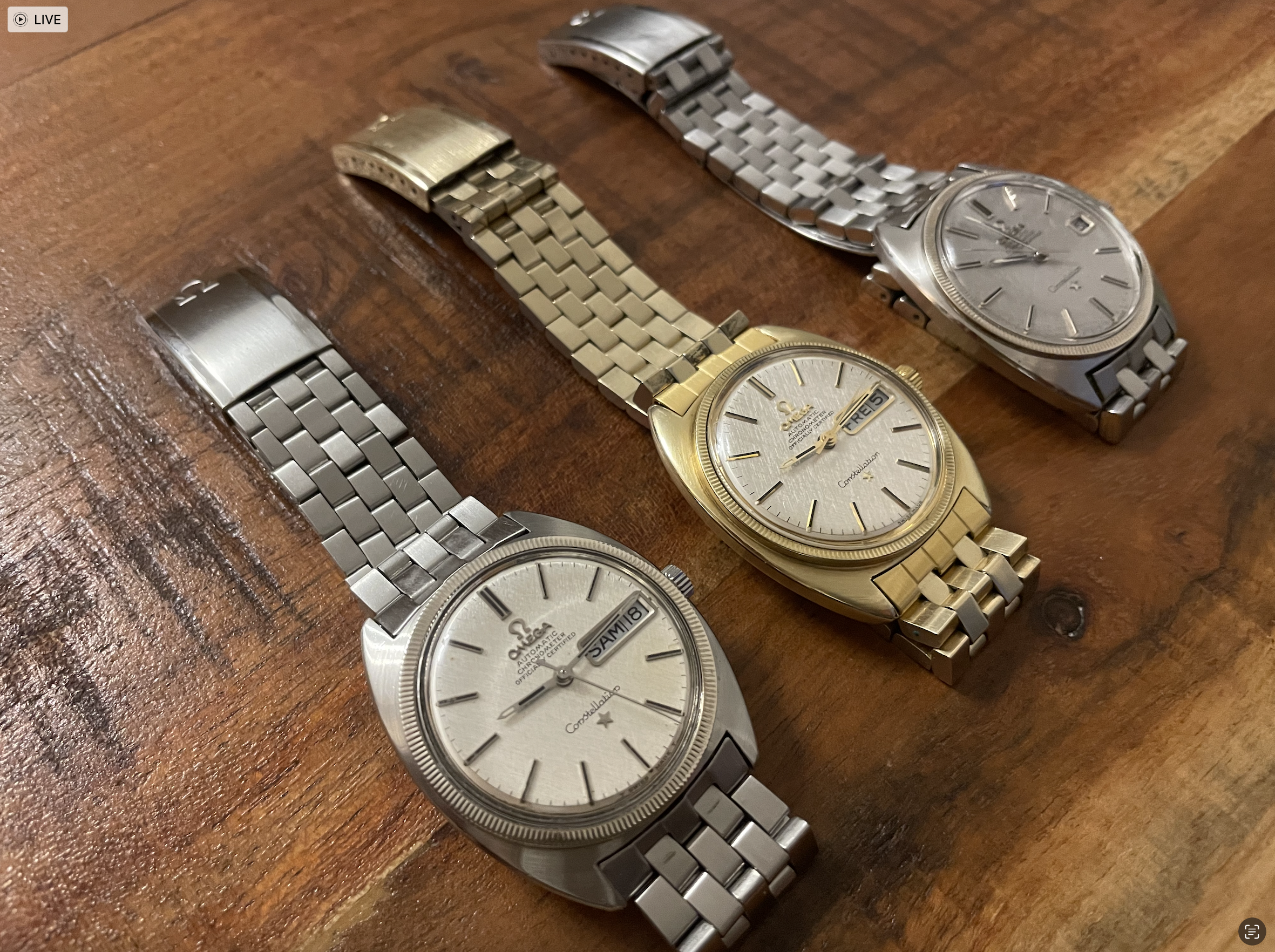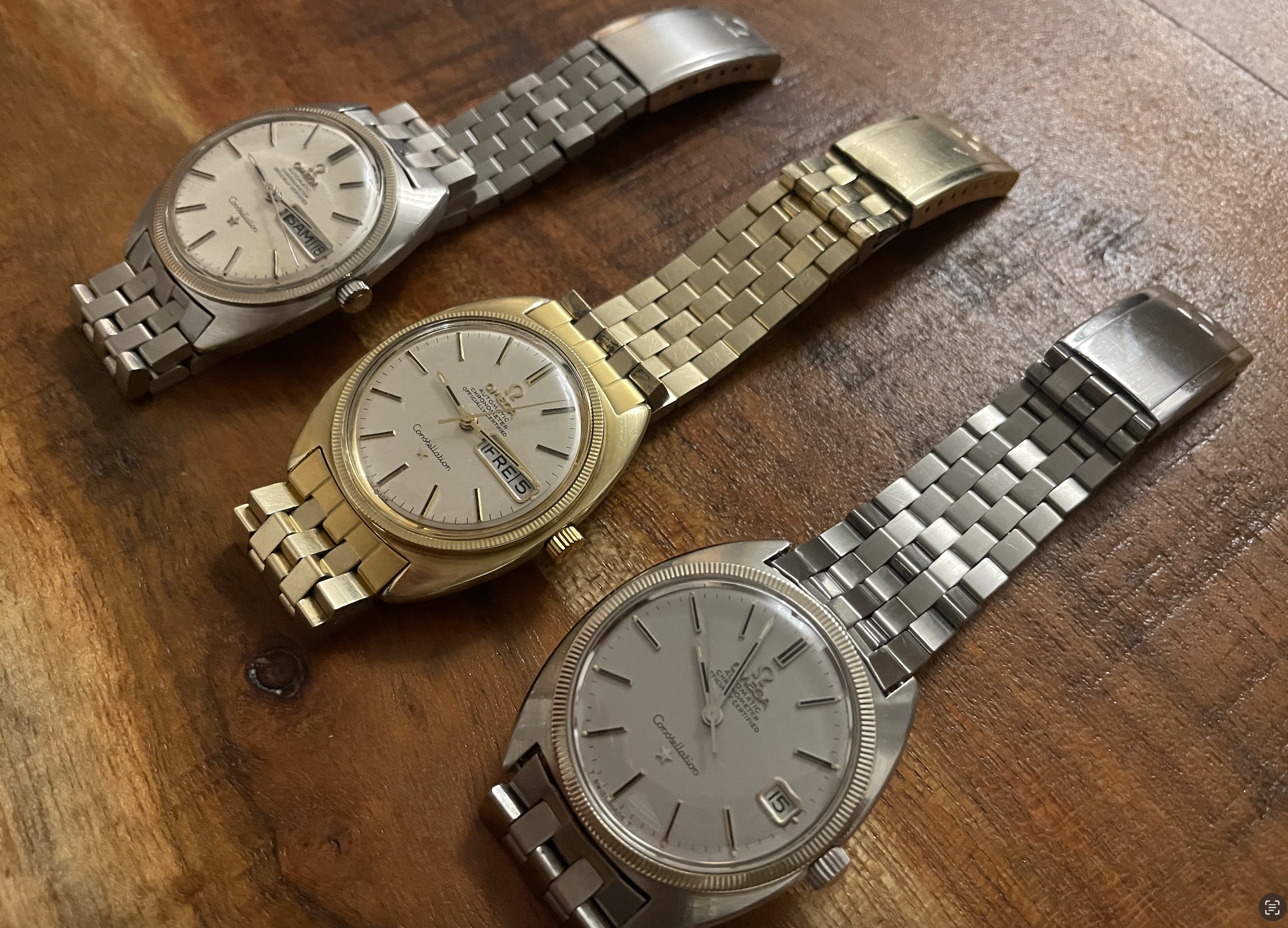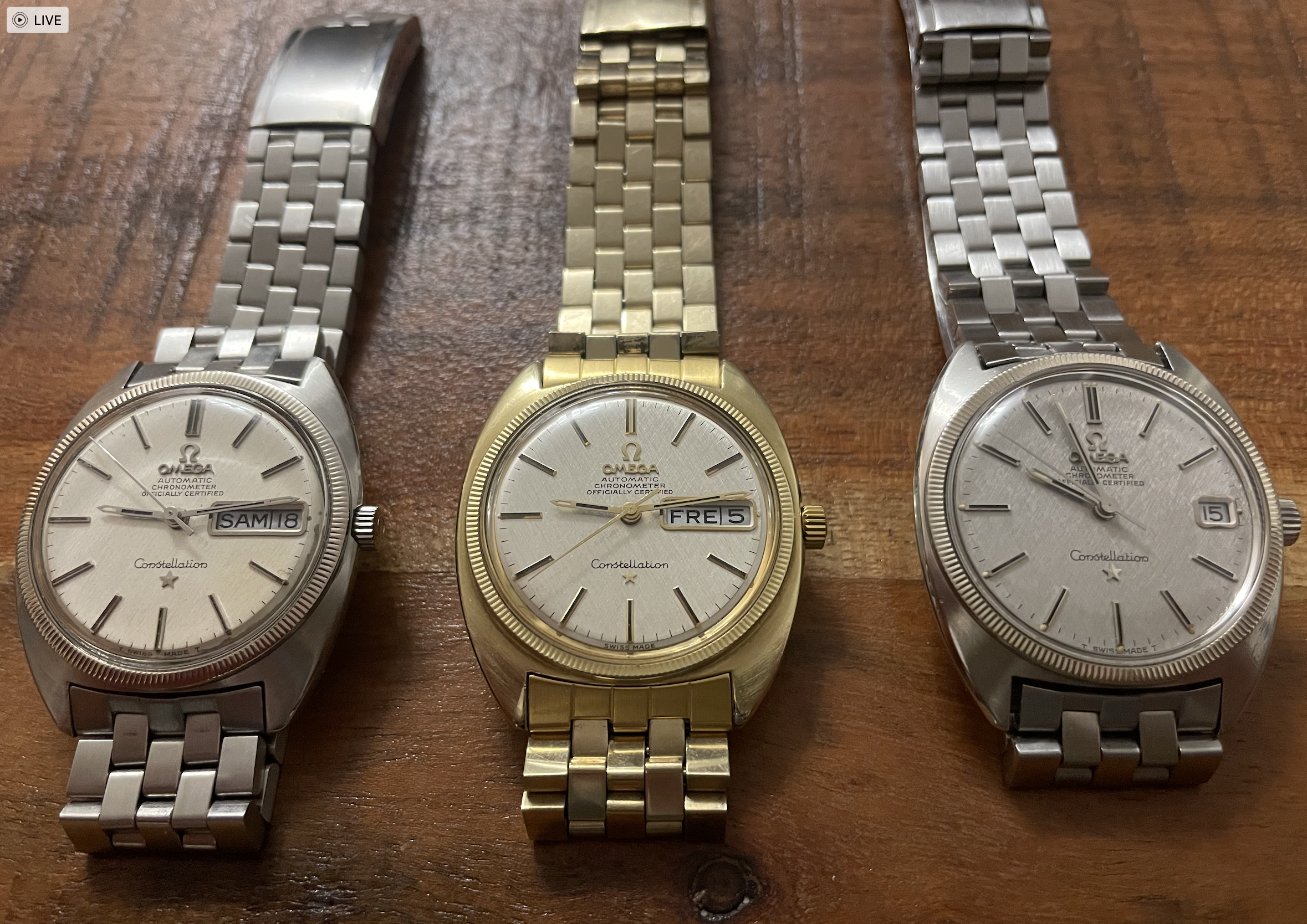 The third one is my favorite dial if you're into the gold and it's a cal 564 date only. Also, for the same price as the others you get the bracelet. The "Constellation" text looks a bit bold but I've noticed that a lot on other examples as well. I'm actually trying to gather more examples of that.