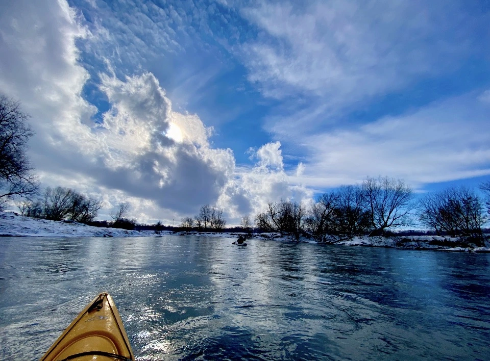 My friend Liam paddles the Thames (the real Thames in London, Ontario, Canada) in minus 10 temperatures.