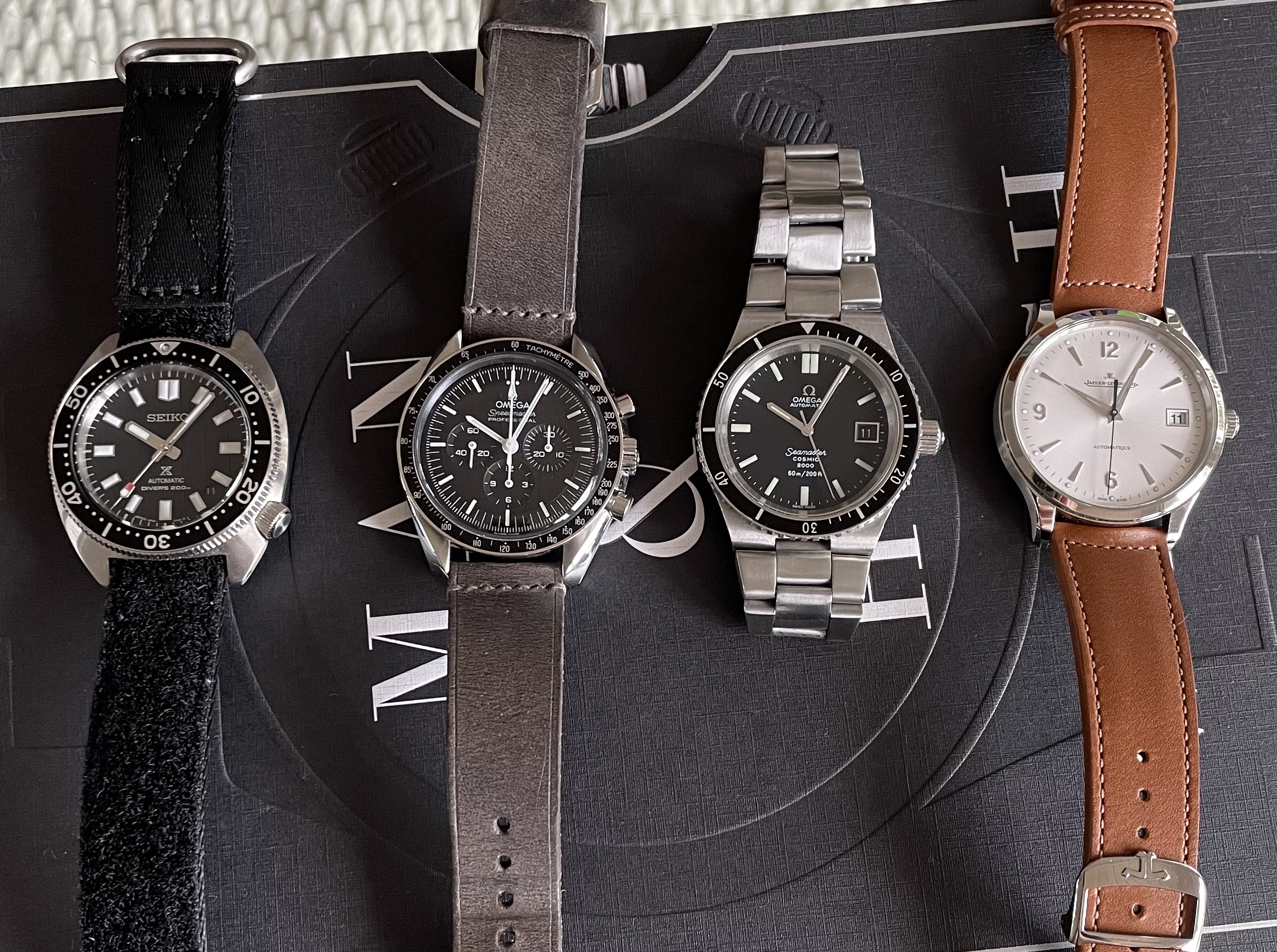 ·3 seems to be the right number for me. I’ve had more, I’ve had fewer, but these 3 all get a solid amount of wrist time. All are special, but the Cosmic is the standout- it was my Dad’s watch that he purchased in 1971 (my birth year) and I had totally refurbished by Omega last year (still have all the original parts that omega sent back after the service). Have thought about going for an all Omega collection (selling the Sub for another Seamaster), but I really like the way the 5 digit Sub wears. Maybe someday….but it’s a keeper for now…