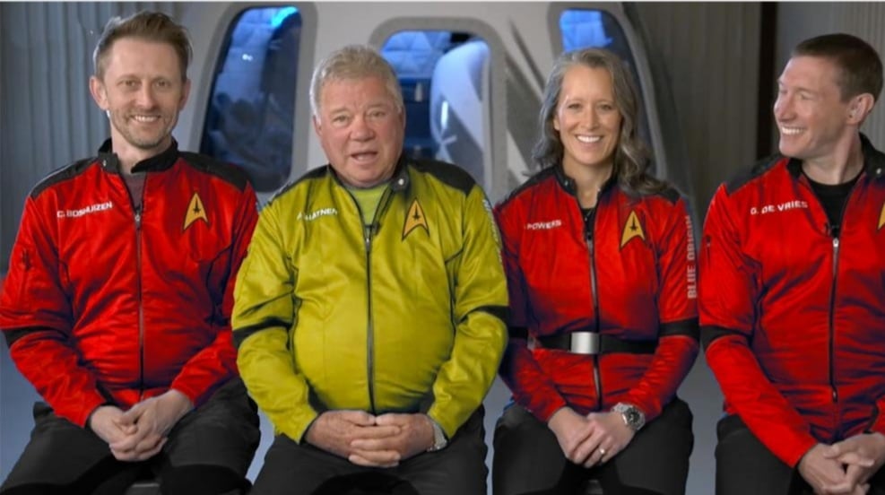 Kirk was born in the year 23 something or other. Shatner beat Kirk into space.