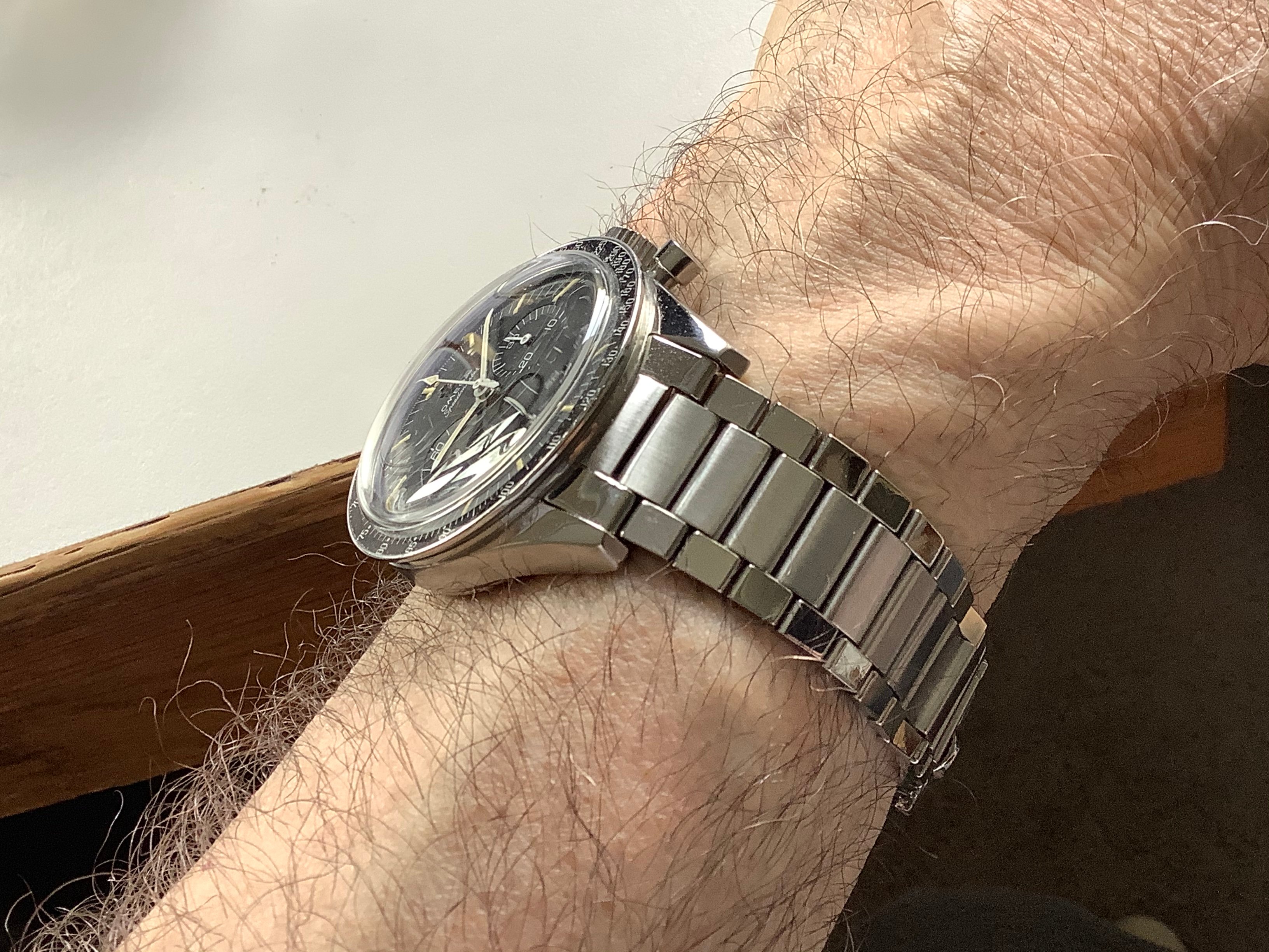 Okay, now here’s the dilemma: we have one bracelet that’s been carefully restored (not overly so), and a much more desirable, “untouched” example. But therein lies the rub: do you go with the more esteemed, more collectible bracelet, even if the aesthetics are not as good? Or with the one that clearly matches the watch better? I chose the latter. What would you have done?