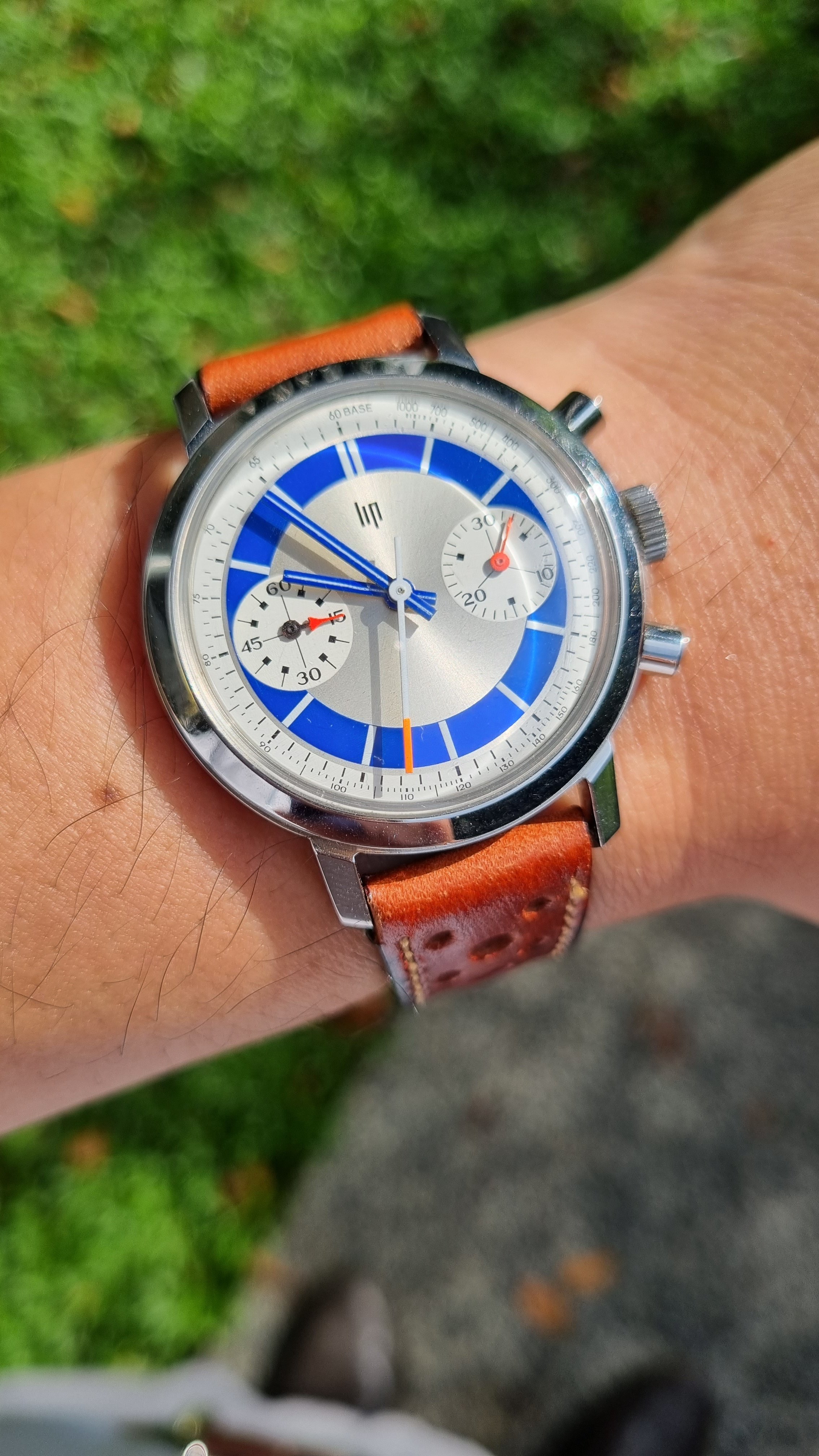 2.) two-tone dials with a thin outer tachy in a contrasting colour