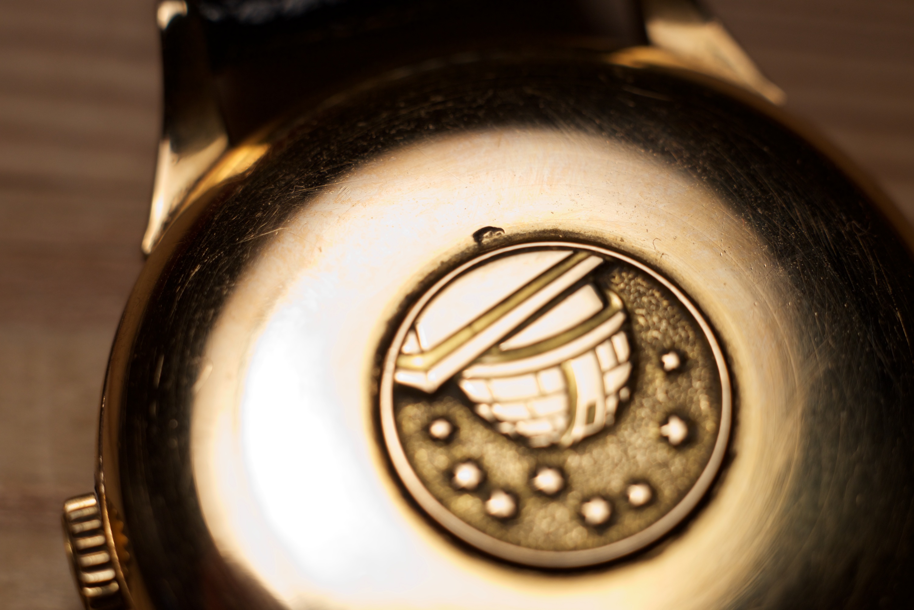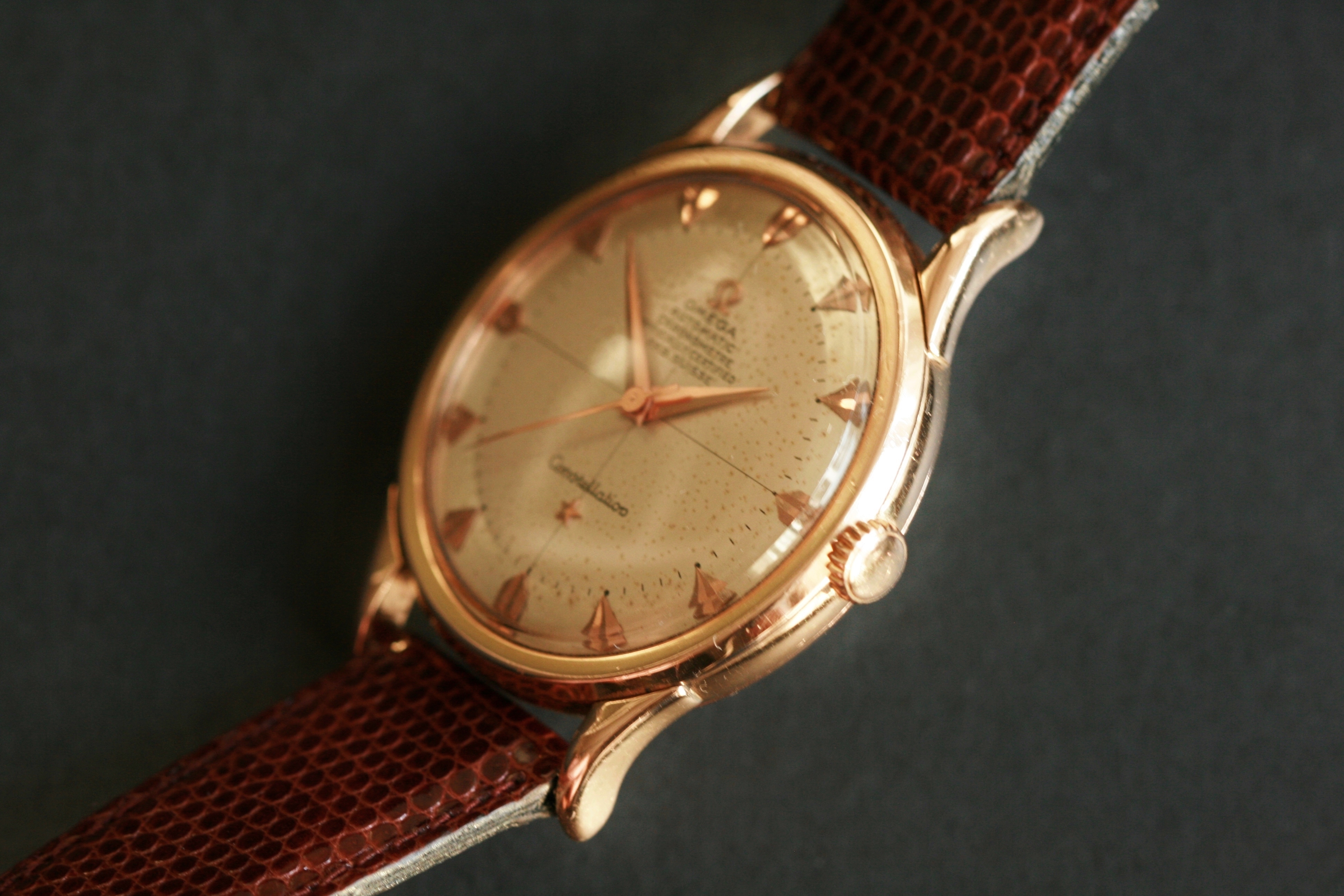 This watch, with its aberrant case and missing Fab. Suisse, is still a french cased watch. The thread has many interesting points and I urge you to read it. One of the highlights is @kedrico 's contact with Jean-Louis Strack, a french Omega certified watchmaker, who states that the first french constellations were delivered with unsigned crowns. And the crown is solid gold!