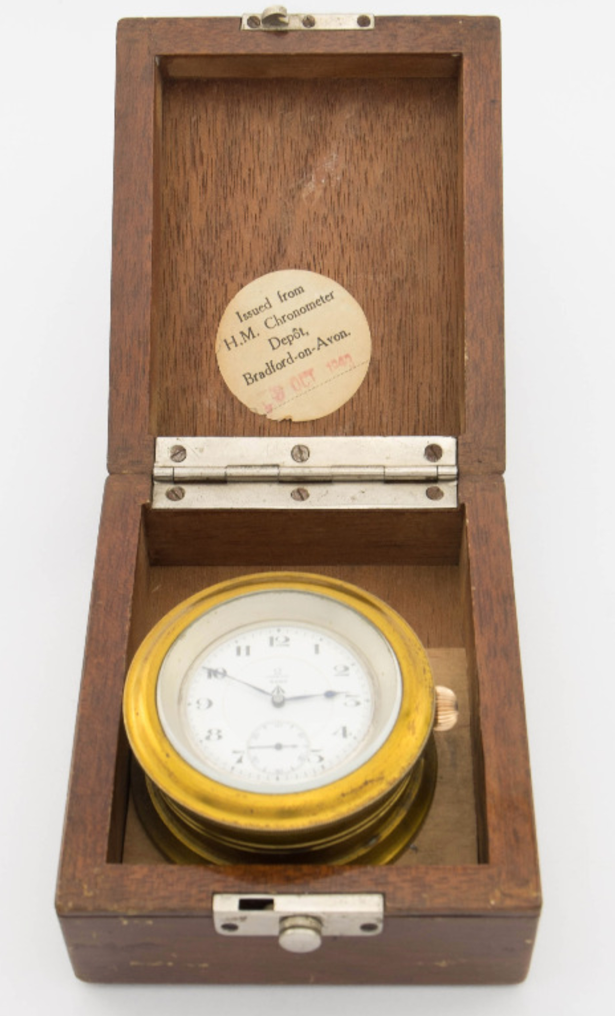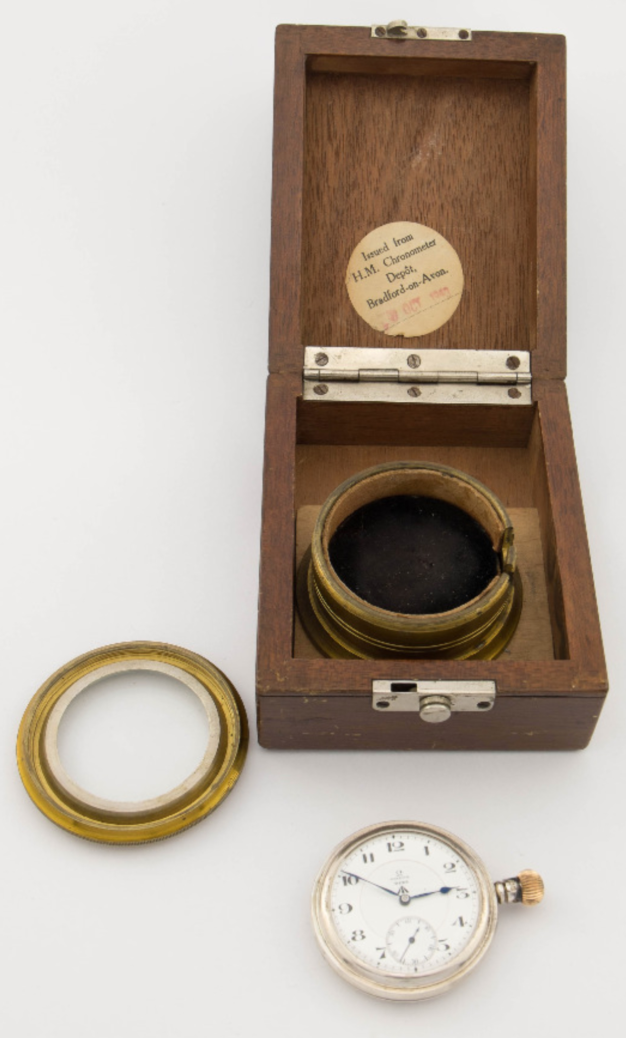 I have what seems to be a military issued « deck watch » with Omega DDR 19´´´ 23j chronometer movement. The cased is a Dennison silver case, with wooden carrying box. Doing some research on internet, the deck watch I have been able to find have most of times an inner case signed with the watch brand (for example Ulysse Nardin, Vacheron Constantin...) and may have wooden carrying box sometimes by Dennison.