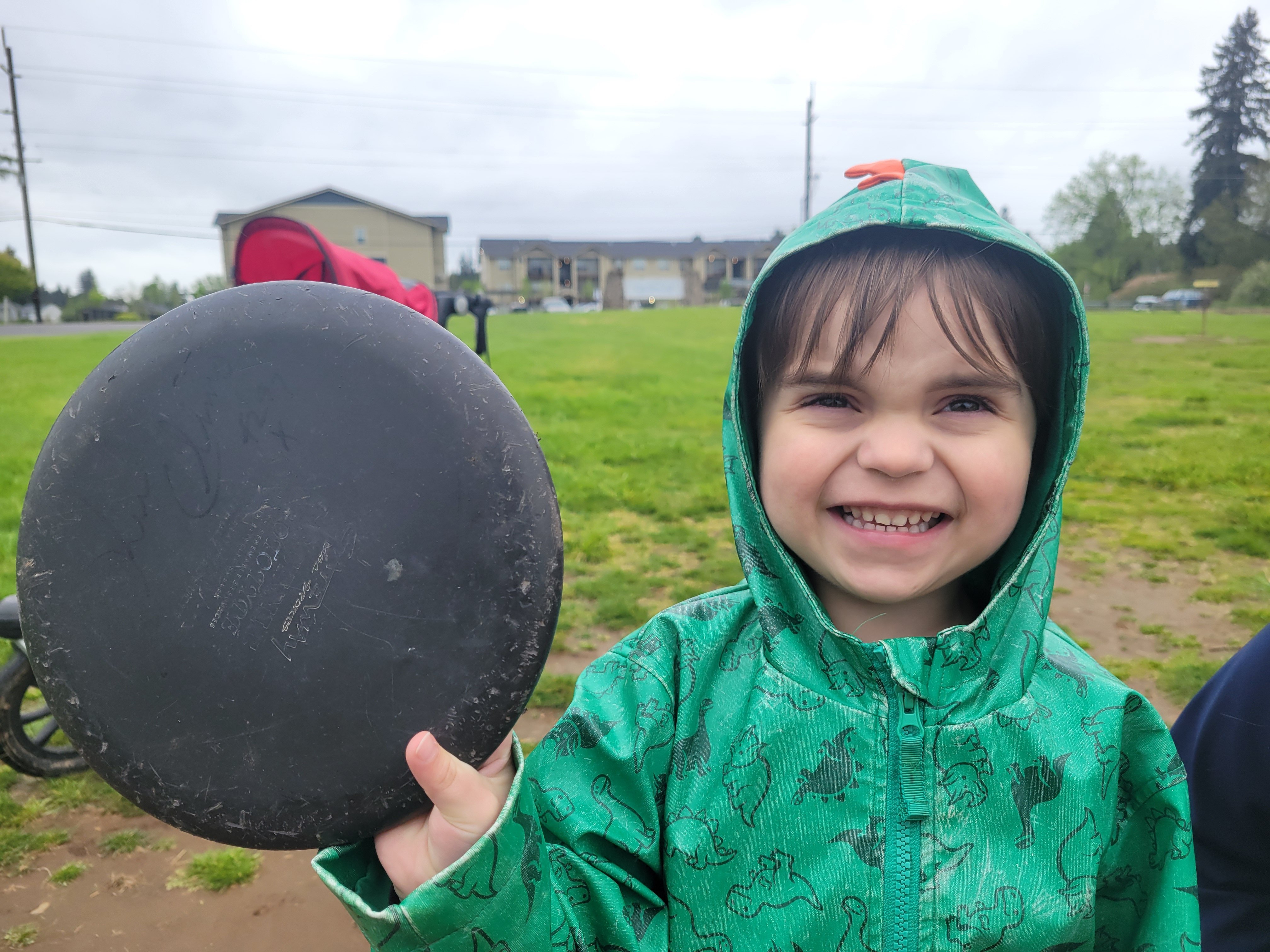 路路Seamasters ForeverHeaded down to Portland last week to pick up some replacement discs from Disc Golf Depot. They have a great selection of new and used discs, and the kids found some fun designs that they loved. we tried them out at the baskets at WSU-V campus and then took them to Glenwood, which is a 9-hole course in Vancouver WA put together by a church. It's a fairly straightforward course with very little technical skill needed so perfect for a 6 and 3 year old accompanied by a 40 year old man with a busted elbow. 馃榿