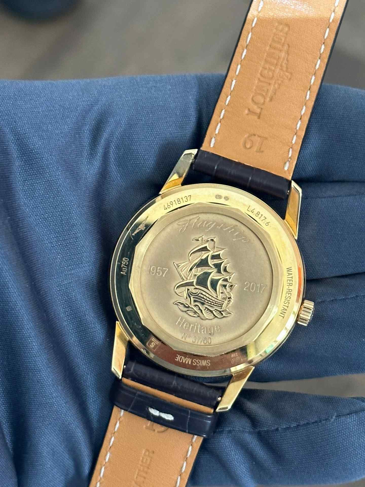 This one is not to my taste. I think the clasdic simplicity is undermined by the full set of numerals. And though the blued hands are lovely, I don't care for the blue numbers.