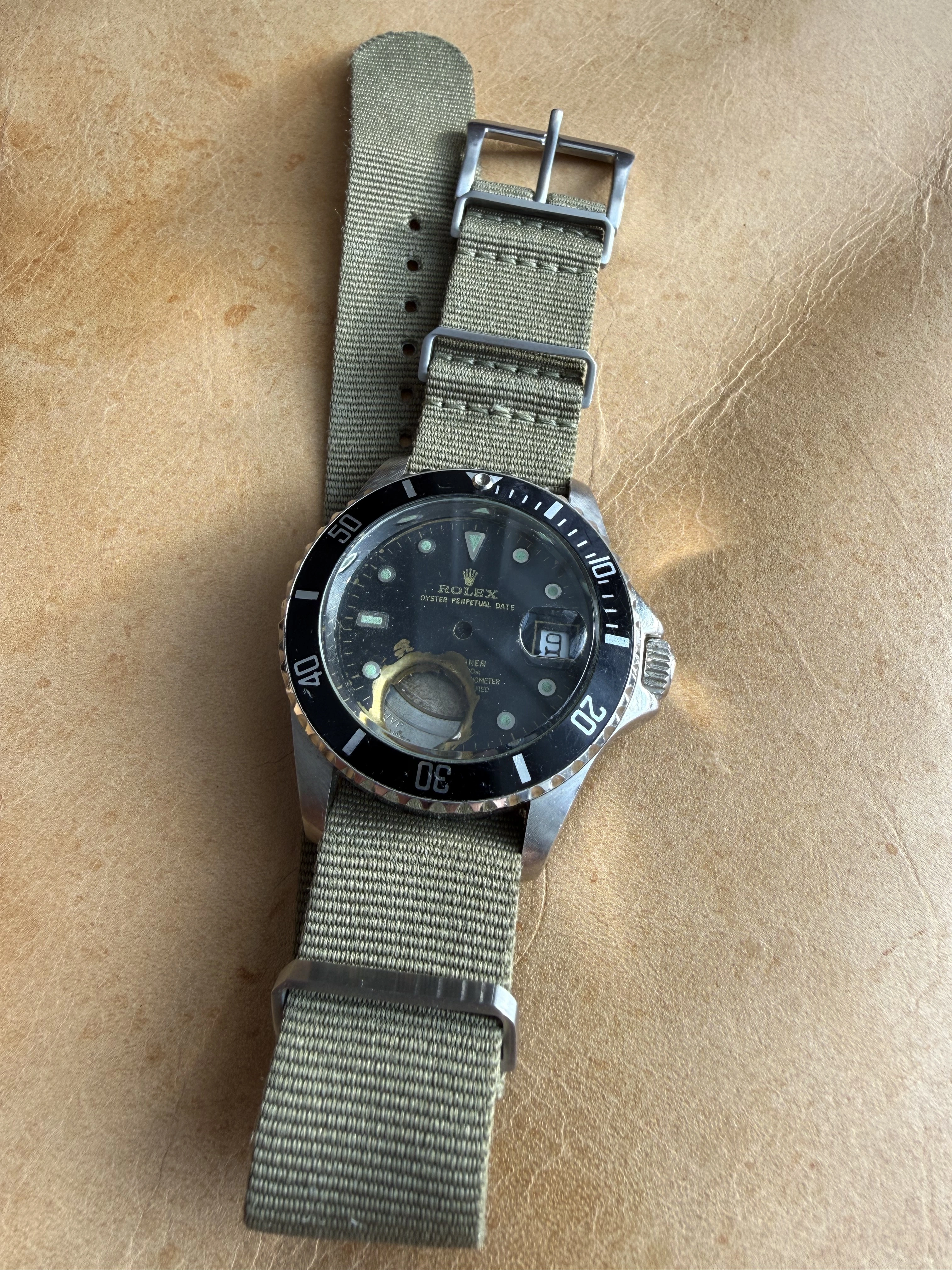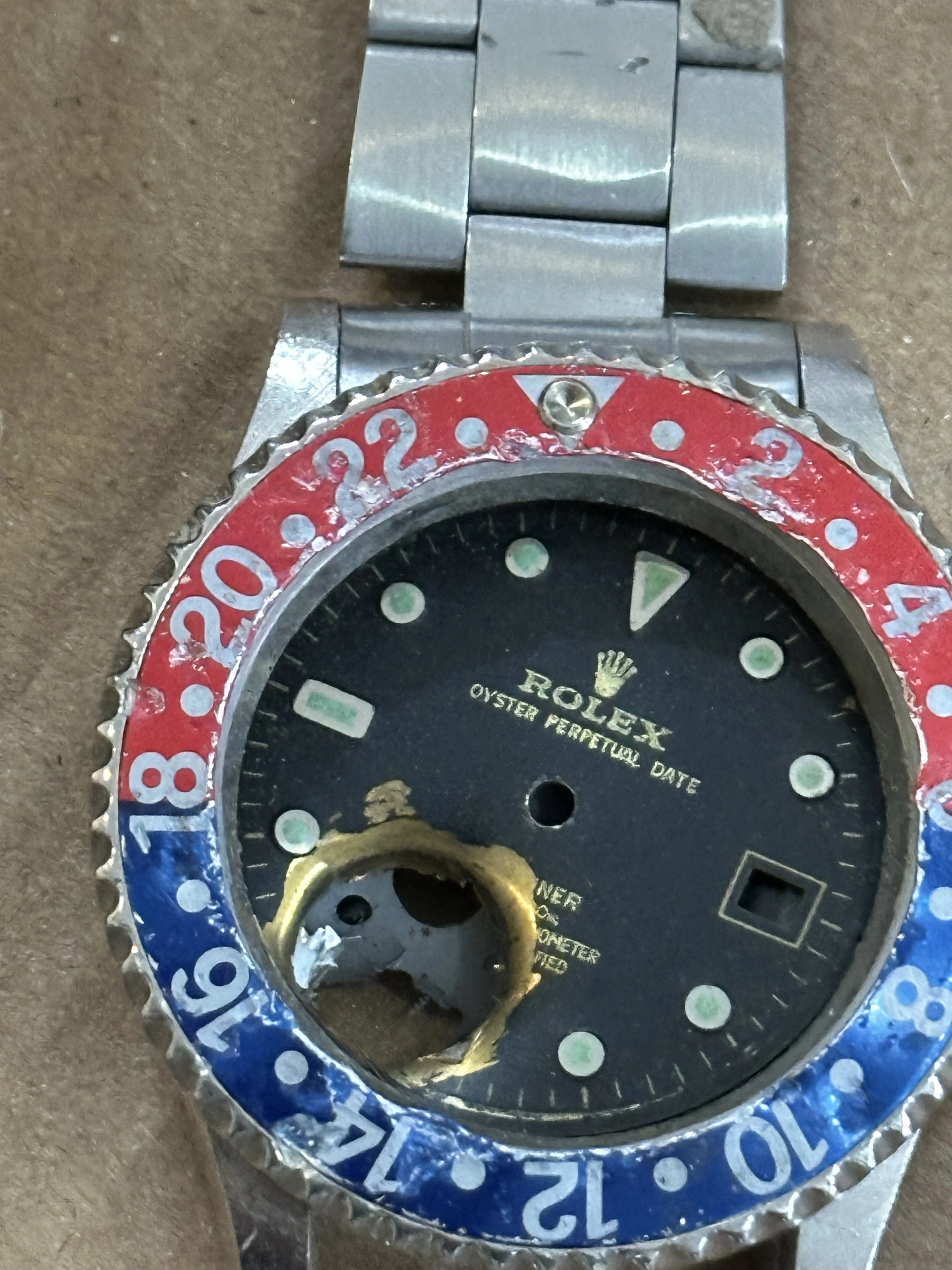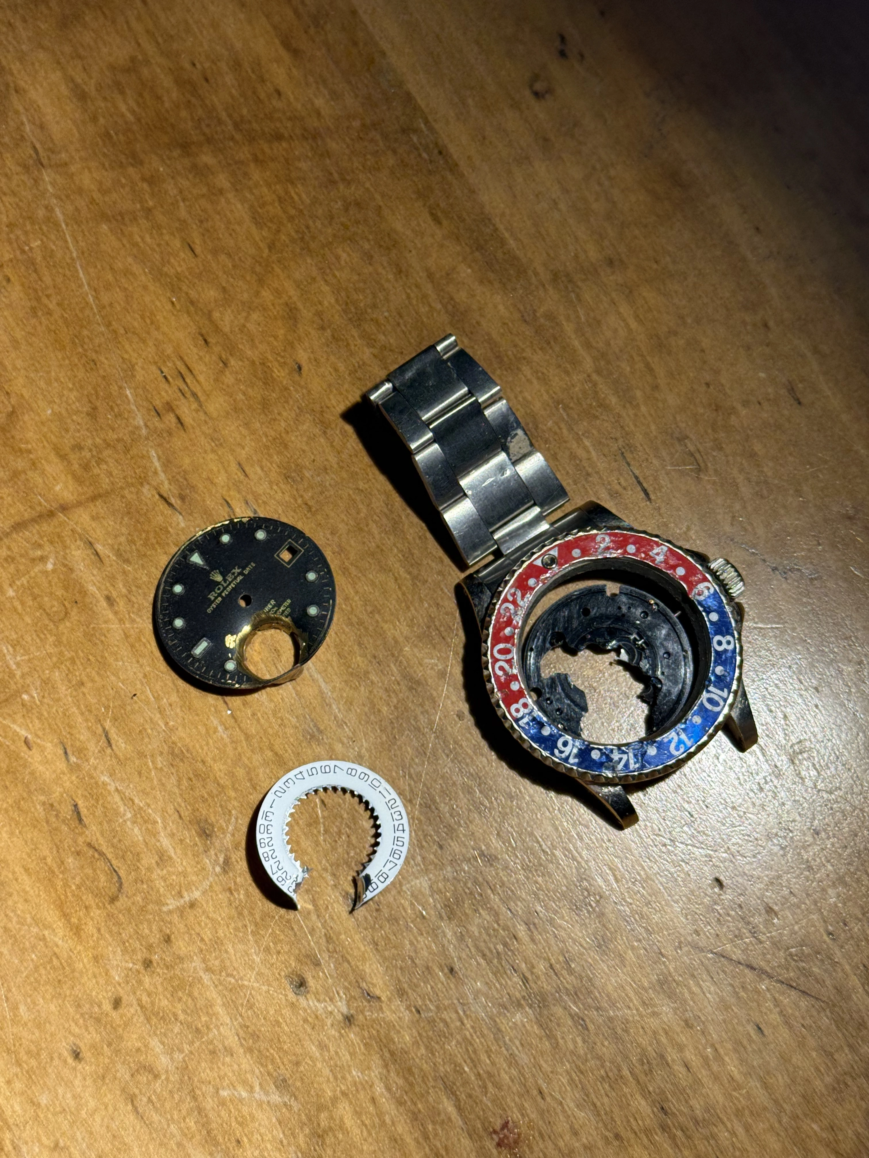 This time he did humour me and we did a bit of watch talk. Along the way I produced a container full of cases, backs and parts. One case had a bezel and looked like a Submariner.