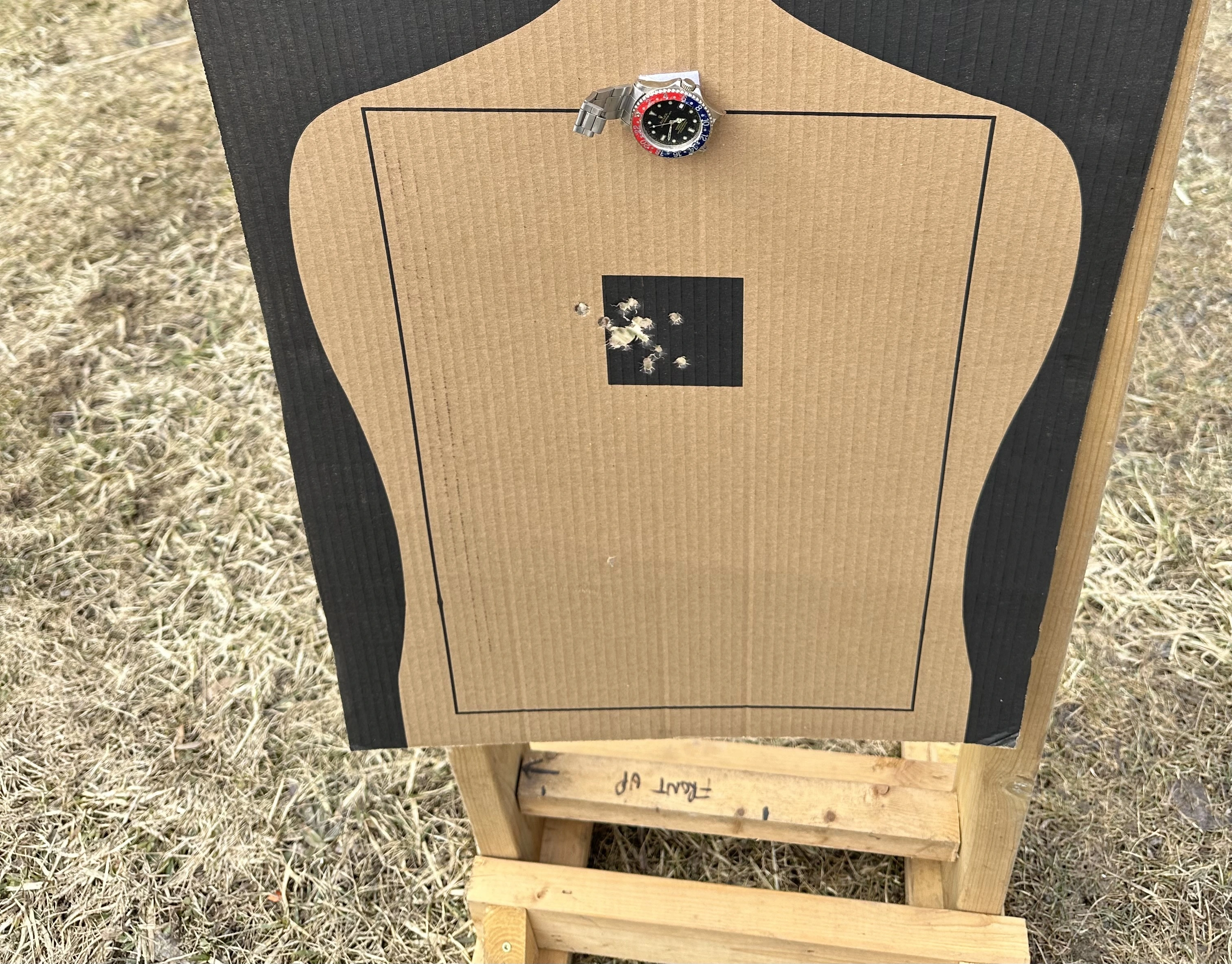 In March of 2025 I was at a shooting range and with a Glock 17 Gen 5 (the last pistol that I carried on duty) I fired at that fake Rolex.