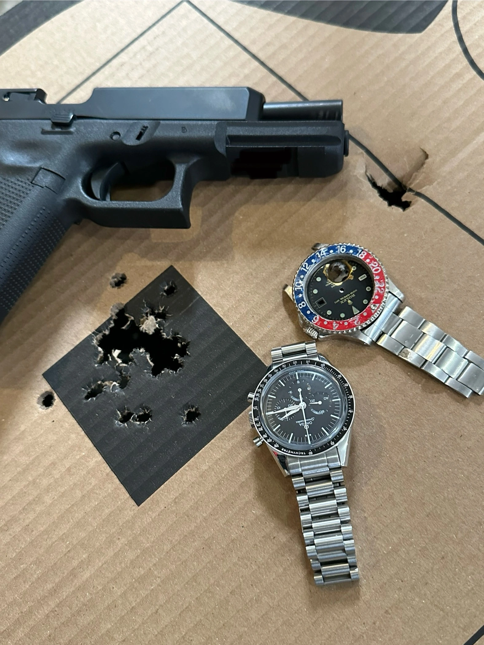 That post was in response to my destruction via 9 mm pistol of a fake Rolex in 2025. (Disclaimer to crooks. Wife does not like guns. You will not find any in the house).