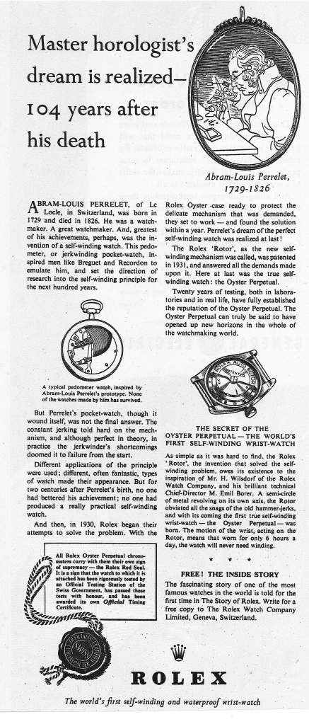 The advertisement where Rolex claimed the world's first self-winding wristwatch