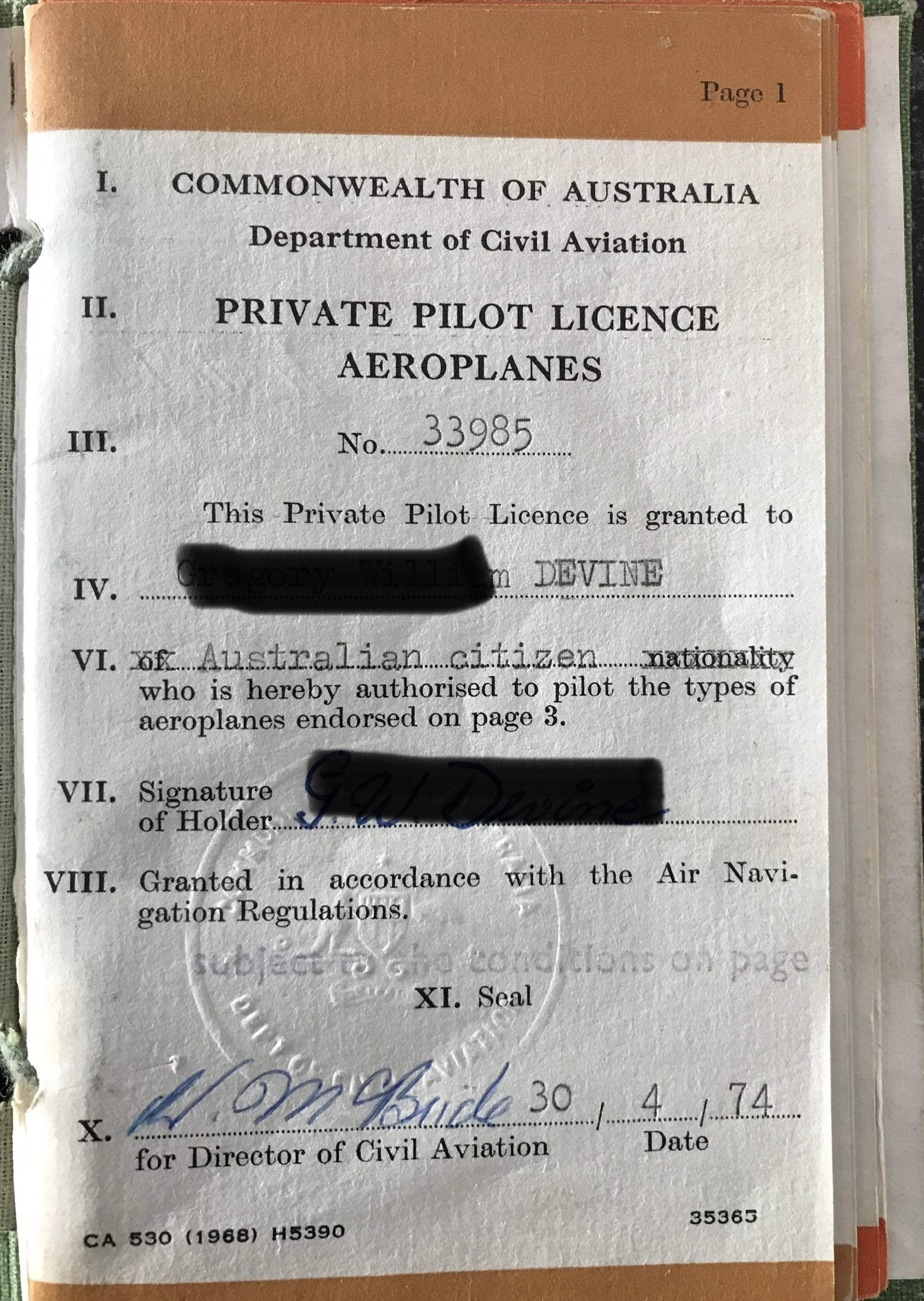 I sent it off to Adam Lewis for a service and case kit (all the gaskets had melted). Adam found extensive water damage on the keyless works and setting mechanism so there were plenty of parts replaced. Although Adam does amazing case restorations on these, I elected to keep it as is, despite the many scratches and dings. Part of that reasoning was that the caseback is engraved with the owner's name and 1975. Having heard the story, I wanted to retain its history - especially since I have a photo of his pilots license to go along with it.