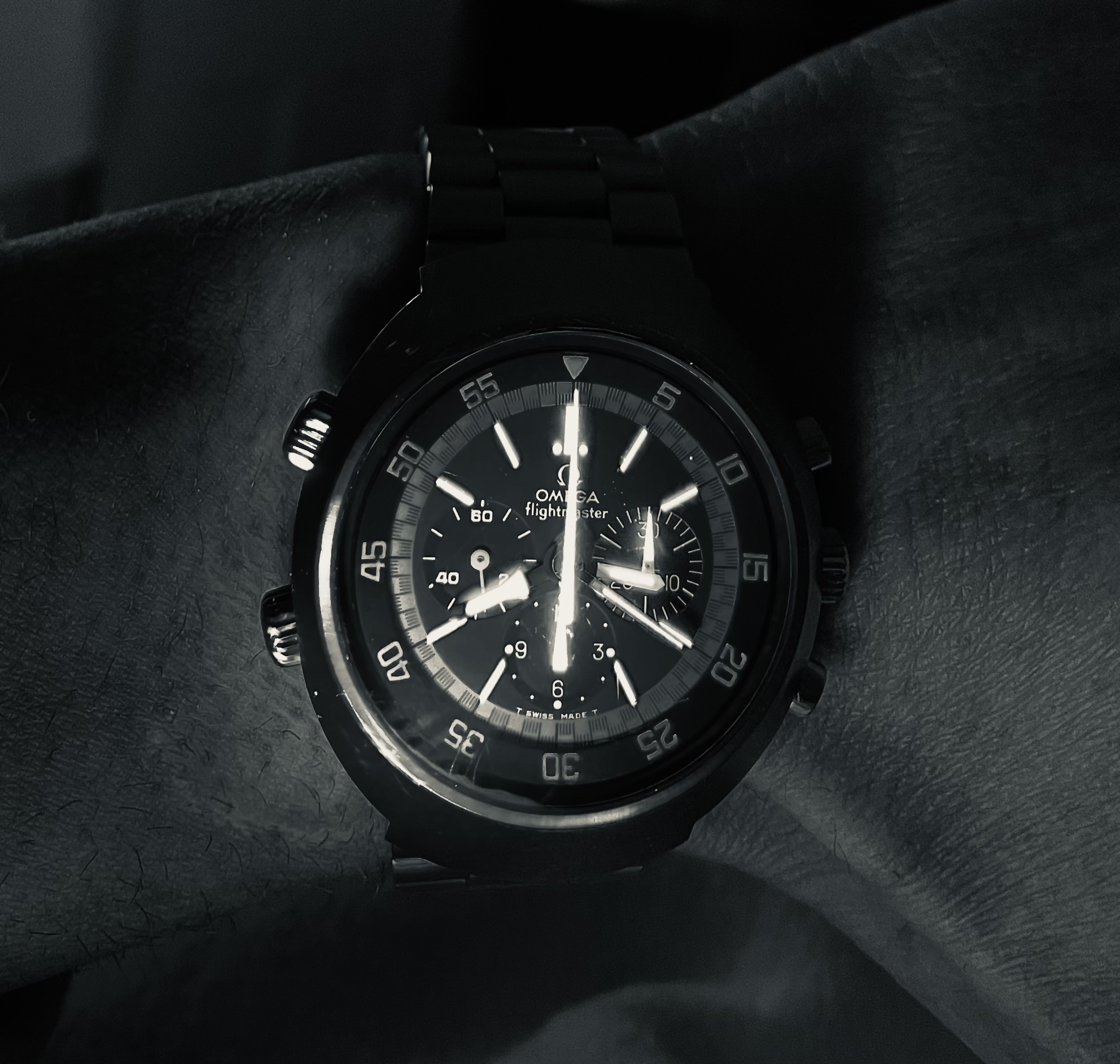 The Flighty now lives in a family of other Omegas... a DeVille, a Speedmaster, a Constellation and a pair of my Dad's old stop watches.