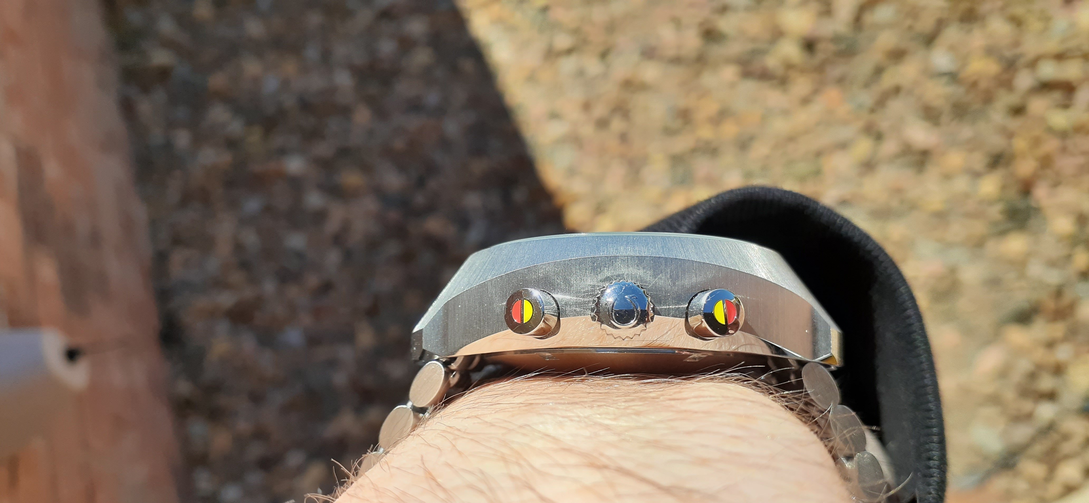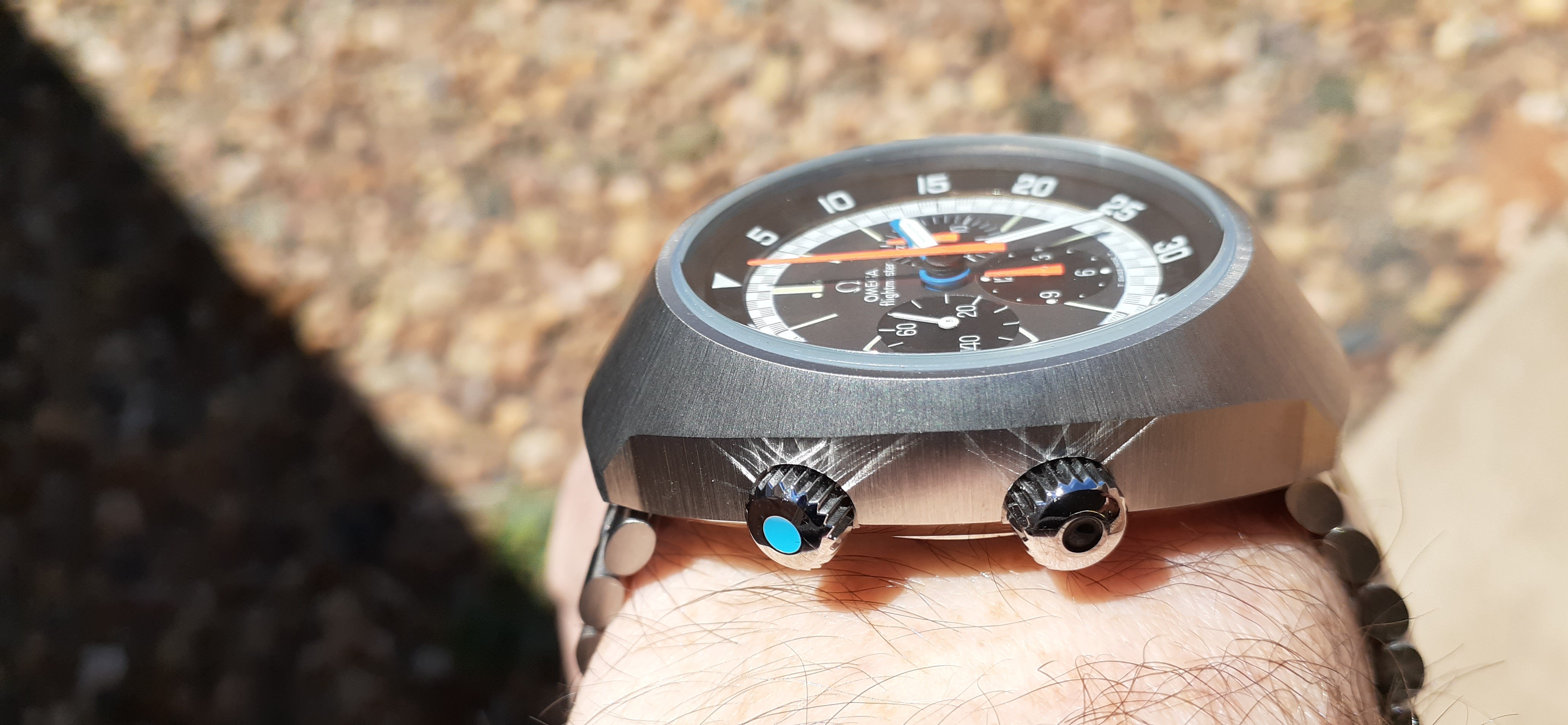 I spent a couple of years looking for one with sharp lines that I could afford. The worst damage to it was where it looked like someone tried to take the caseback off with a butter knife and there was what I assume to be a watchmaker's mark near one of the lugs. Omega did a great job minimizing the damage. I thought they might replace the caseback but they just refinished it so I got to keep the original.