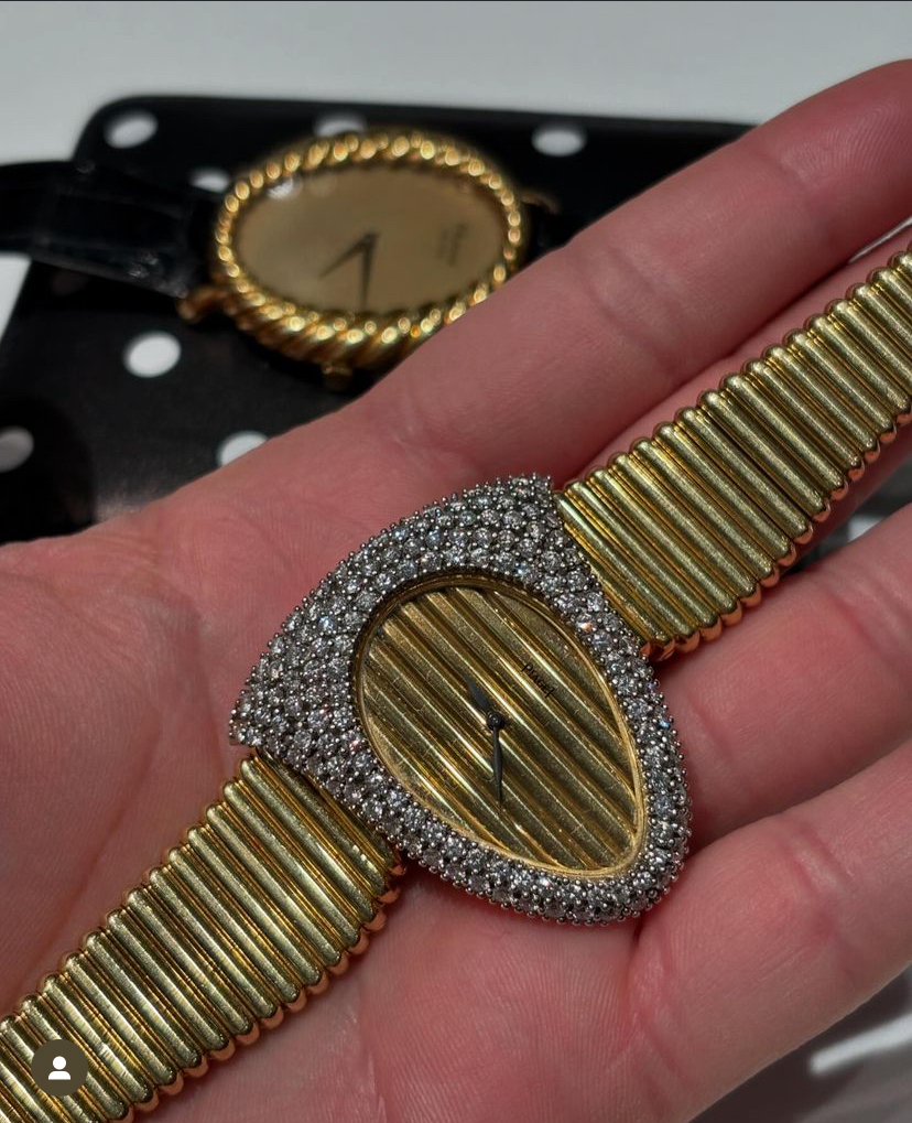 ·Geezer watch is Mike Nouveau and Phil Toledano (Misterenthusiast) slang for typically a small, precious metal watch, often with an integrated bracelet and an unusual case shape, sometimes with a stone dial or with gems. Think 70's and 80's Piaget or certain Pateks. Bracelet is often some kind of braided metal or woven mesh. Seems to have trended on tiktok and now I see it on instagram a lot. Does anyone here like these?? Doesn't sound like it