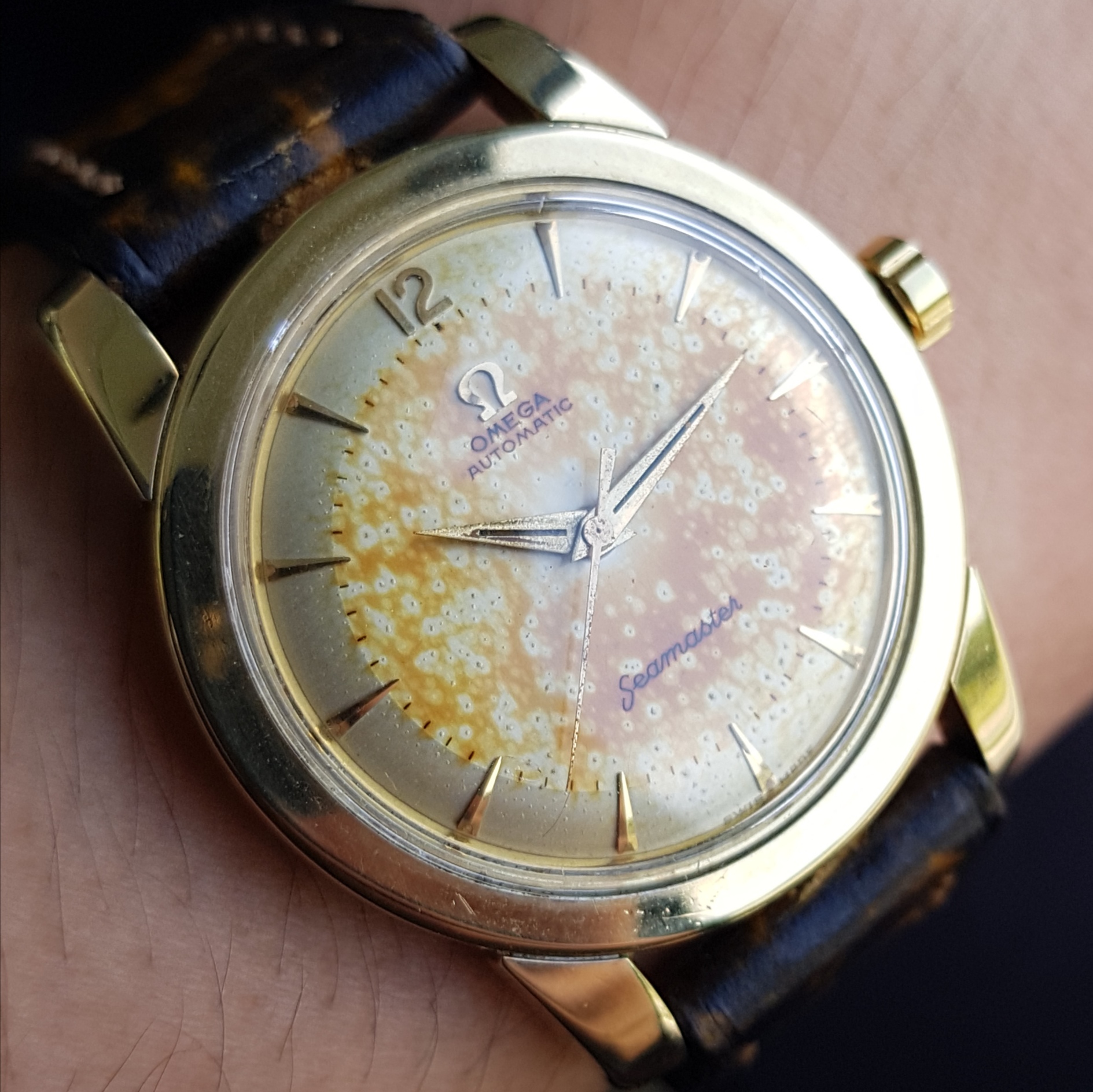 So, a while ago I pulled the trigger on a watch I saw and the seller could not provide good pictures but I decided to take the risk. It is a 2438 powered by a bumper movement I still was not able to decipher which one.. Will take it to my WM so I can know. The 3xx movement number does not show so maybe this is a 30.10RA? 📖 The clover crown is definetely incorrect for the reference but it is a nice bonus given it is a rosegold vintage original one.
