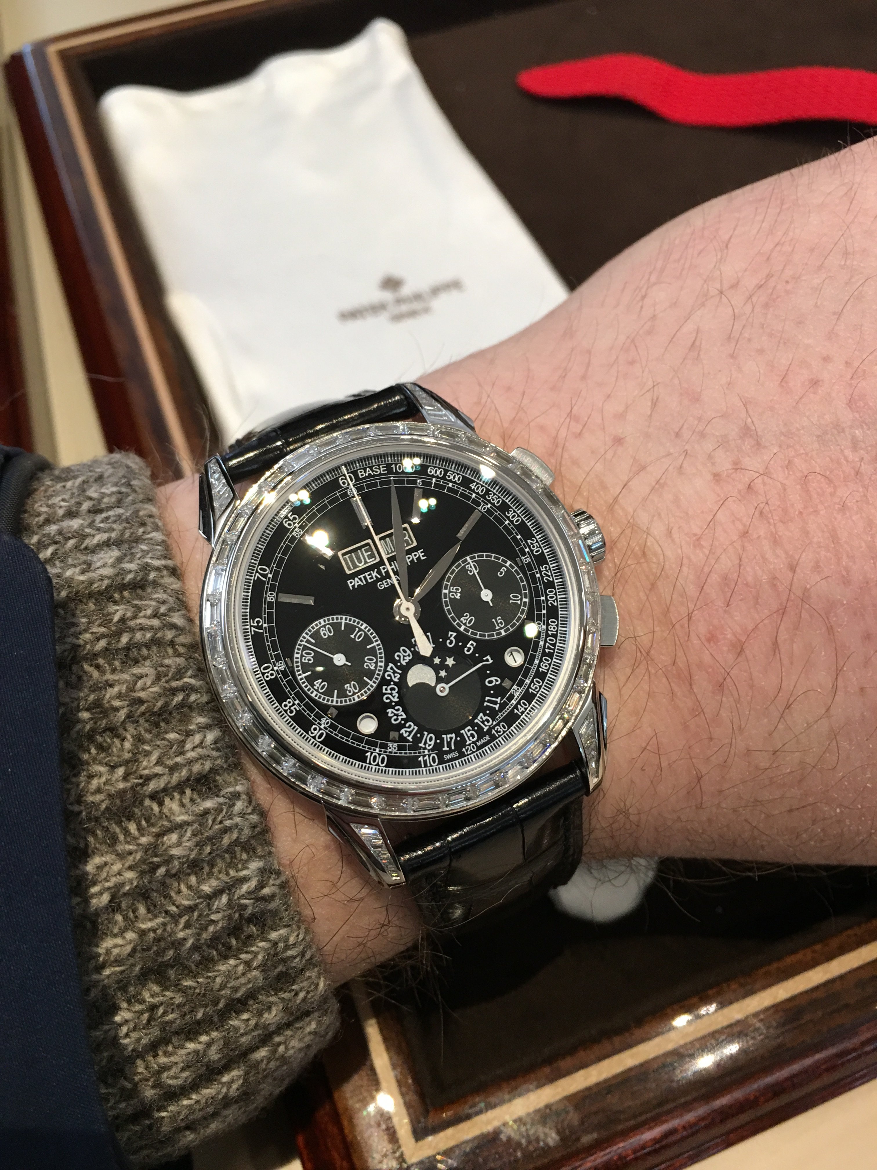 Helped Charlotte's mum to drop off Charlotte's Dads Patek Calatrava (which I'm not allowed to borrow/wear/breathe near) for a service, and had a huge geek out with their sales staff here in London.