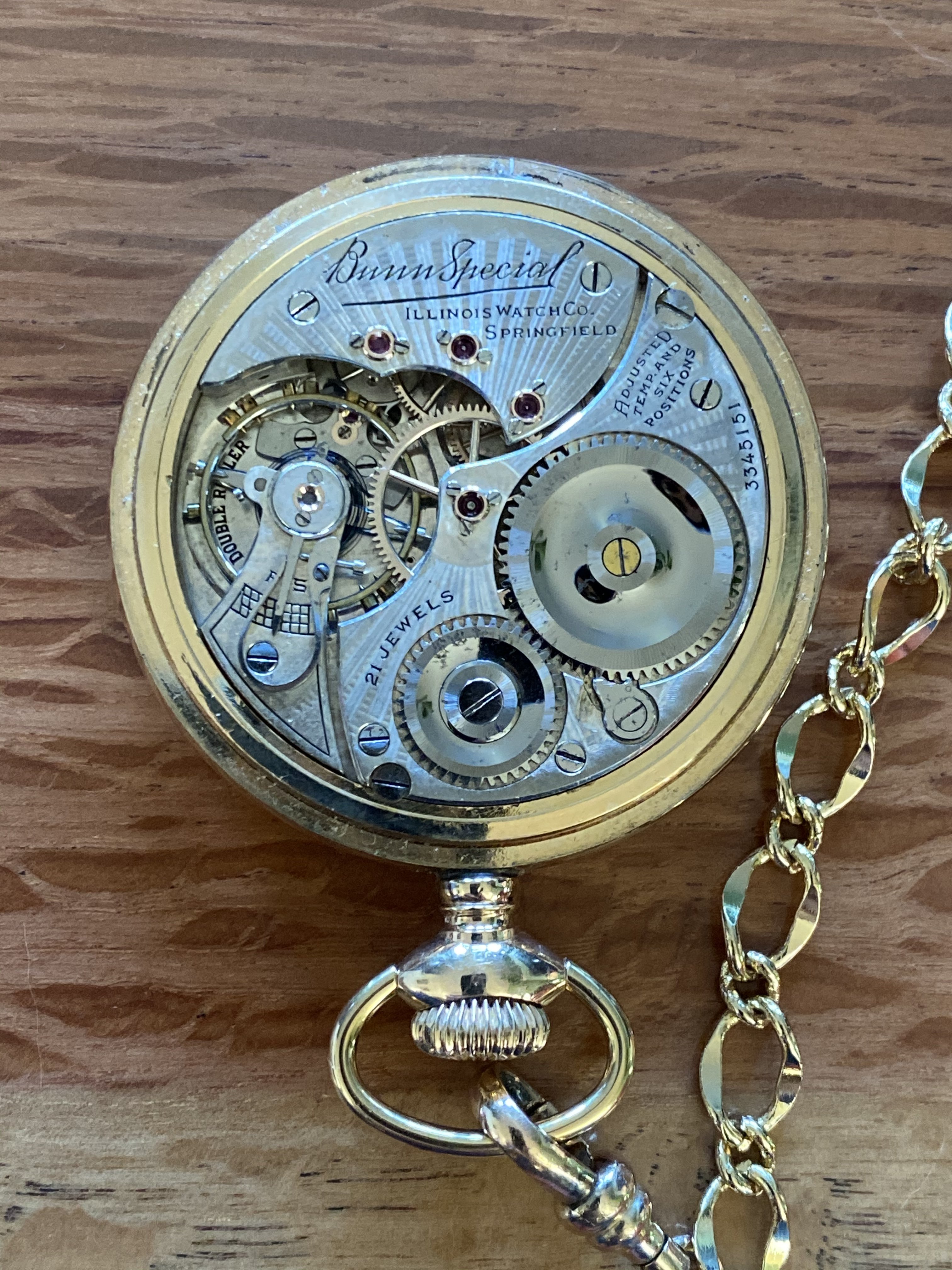 ·I wanted to share my newest acquisition that arrived in the mail today. I bought this beautiful 1904 18s Illinois Bunn Special off of Ebay and I'm delighted. It is running well, has a clean dial with only one small chip by the one, a fantastic looking movement, and as a bonus it came in a 14K J. Boss case.