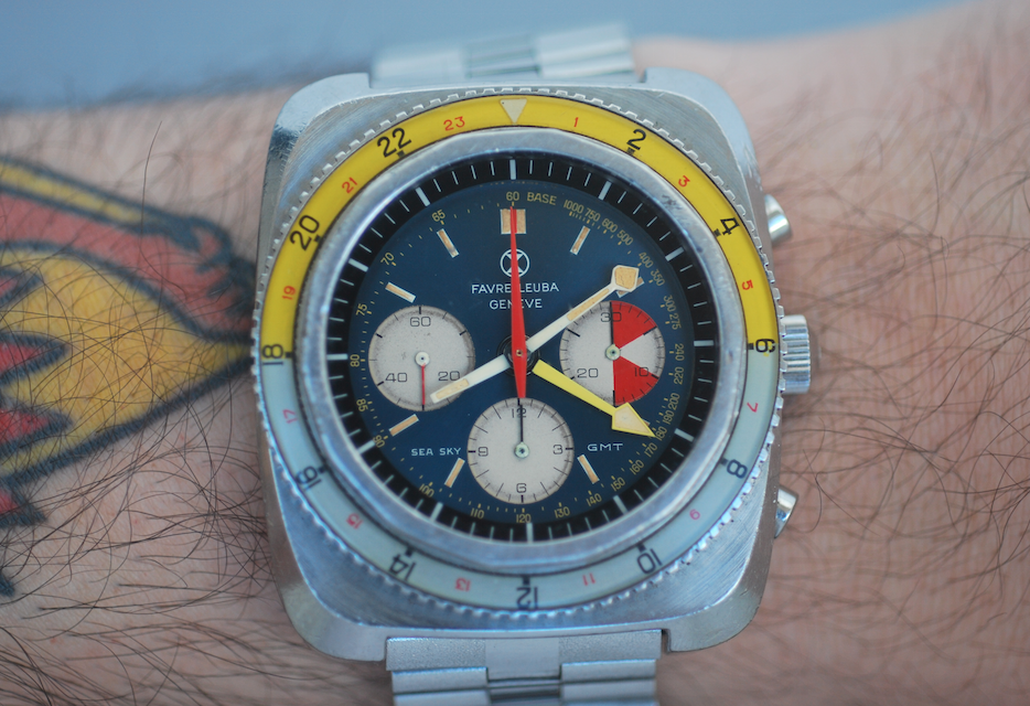 Another chrono purchase in Valjoux 72, the extremely rare Favre Leuba Sea Sky diving chrono in Valjoux 72, rarer than a Speedmaster 321, a Carrera or a Zenith 146. Favre Leuba became known for the Bathy and the Bivouac, notably as professional watches. The Sea Sky is a very little time encountered because on one hand there were not many produced and on the other hand, the brand had a confidential production of the same level as Roamer. It is a sought after collection watch, mine comes from Italy. I will post my photos as soon as it arrives.