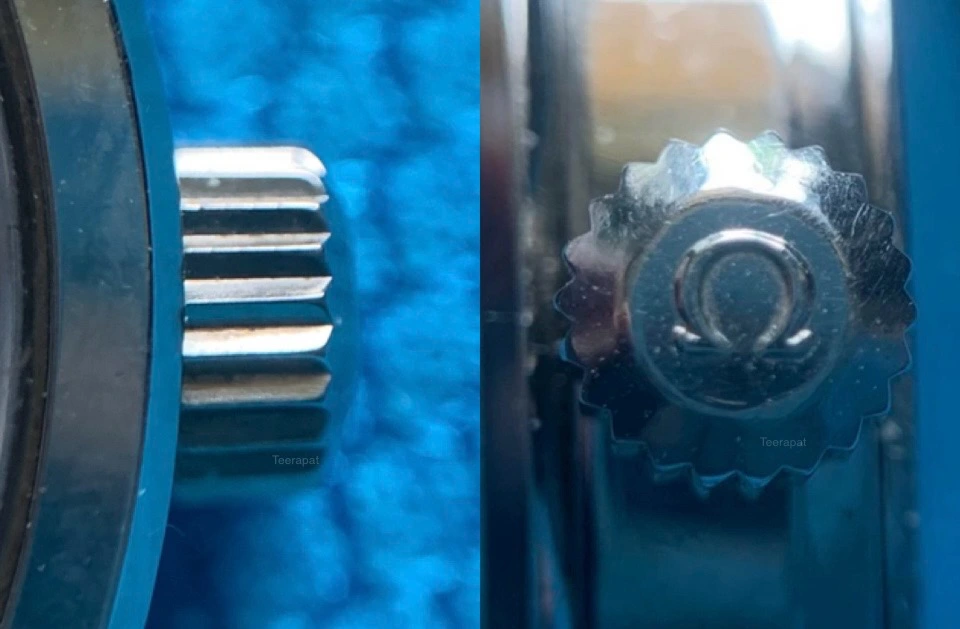 It is worth noting that the correct and original crown for this special reference is not the thin decagonal style commonly seen on dog-leg lug models.