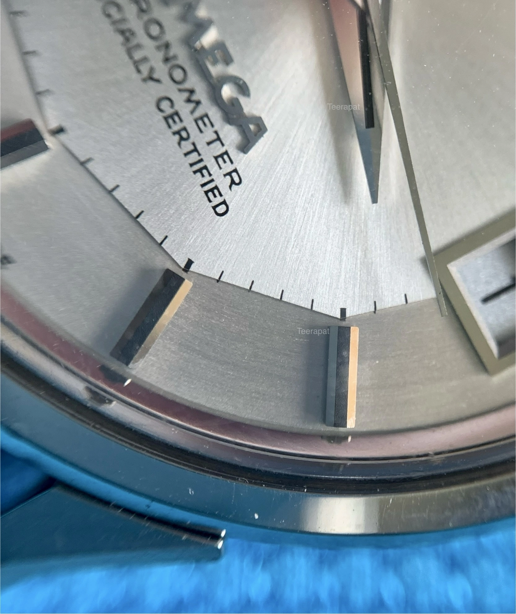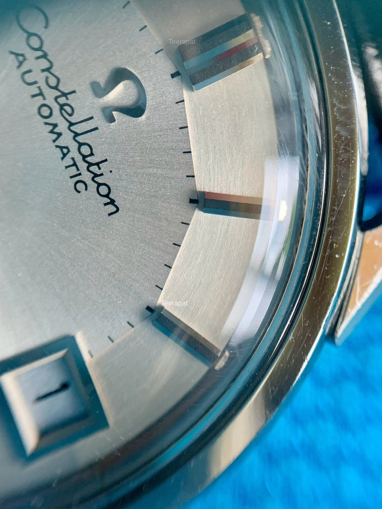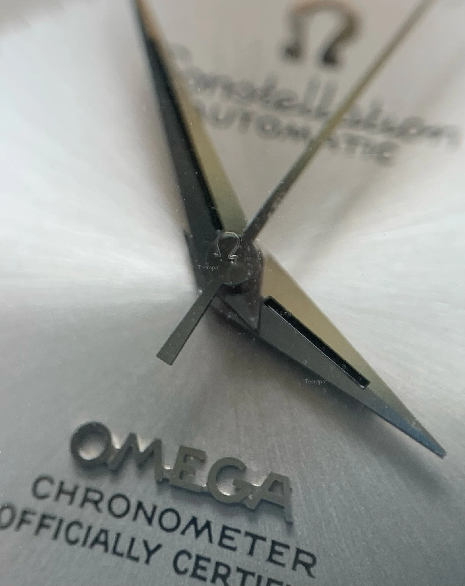 Firstly, the Omega emblem remains applied but is now separated - the symbol is preserved in its traditional upper position, while the word “OMEGA” has been repositioned toward the lower half of the dial. The text layout has also been revised, with “Constellation” now appearing at the top, followed by “Automatic,” and “Chronometer Officially Certified” relocated to the bottom.