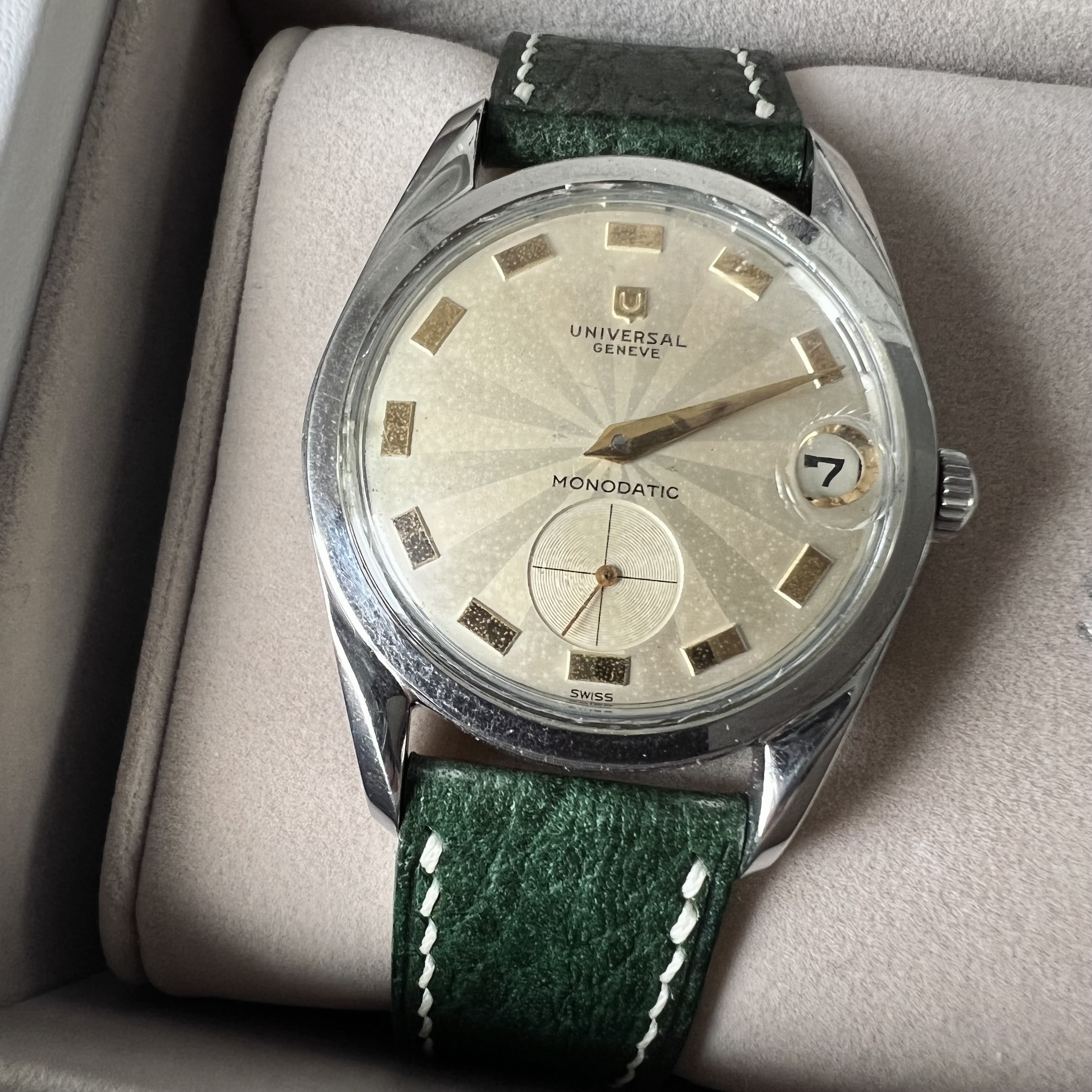 As always, greatly appreciate the feedback and input -- definitely helped to temper my initial enthusiasm and prevented me from making a mistaken acquisition. The replacement crown didn't bother me too much, but the missing original hands were problematic. I did some asking around with local watchmakers, and they all confirmed that finding the correct hands would be virtually impossible apart from finding a donor watch. Again, thanks to the UG Monodatic experts in this thread for your advice.