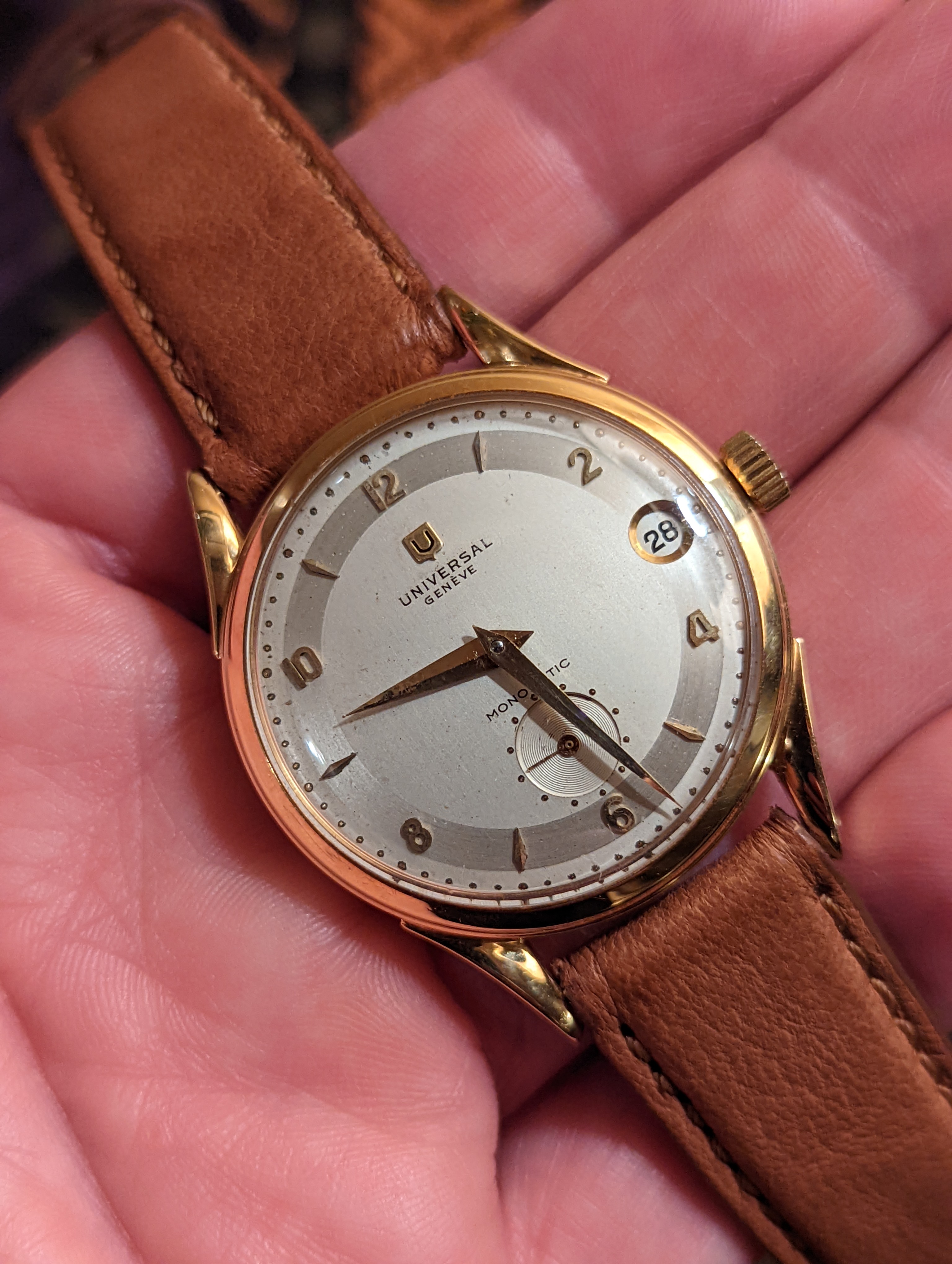 it's always a plus when you have the roulette date wheel (odd dates are red), I'm not sure why some monos have it and some don't, this one obviously doesn't