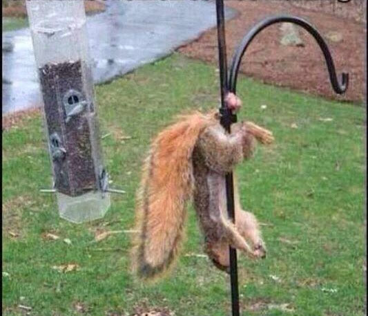 I wouldn't be surprised if the squirrel is laughing at all this and thinking to himself "thank f蠀ck I got out when I did."