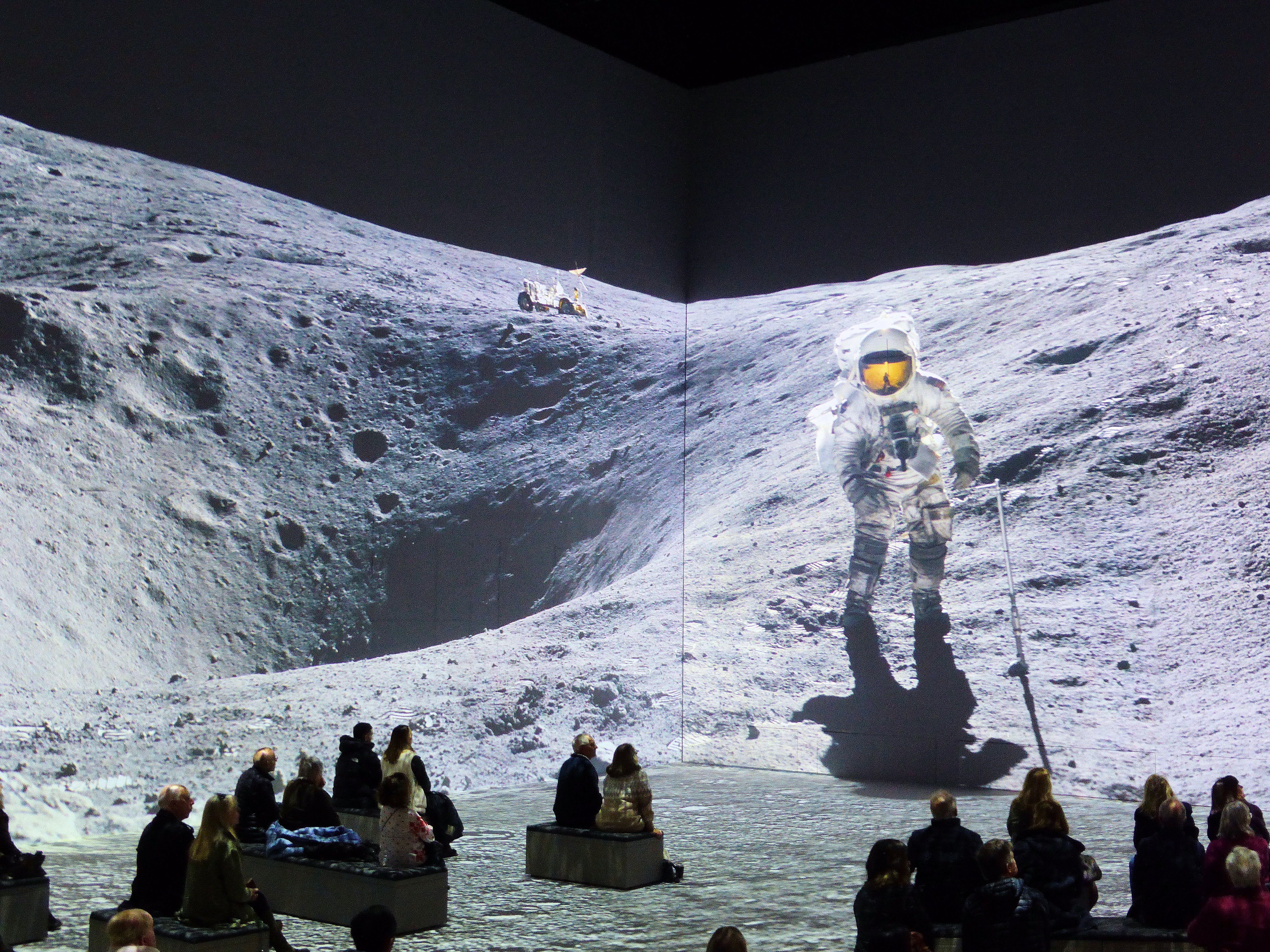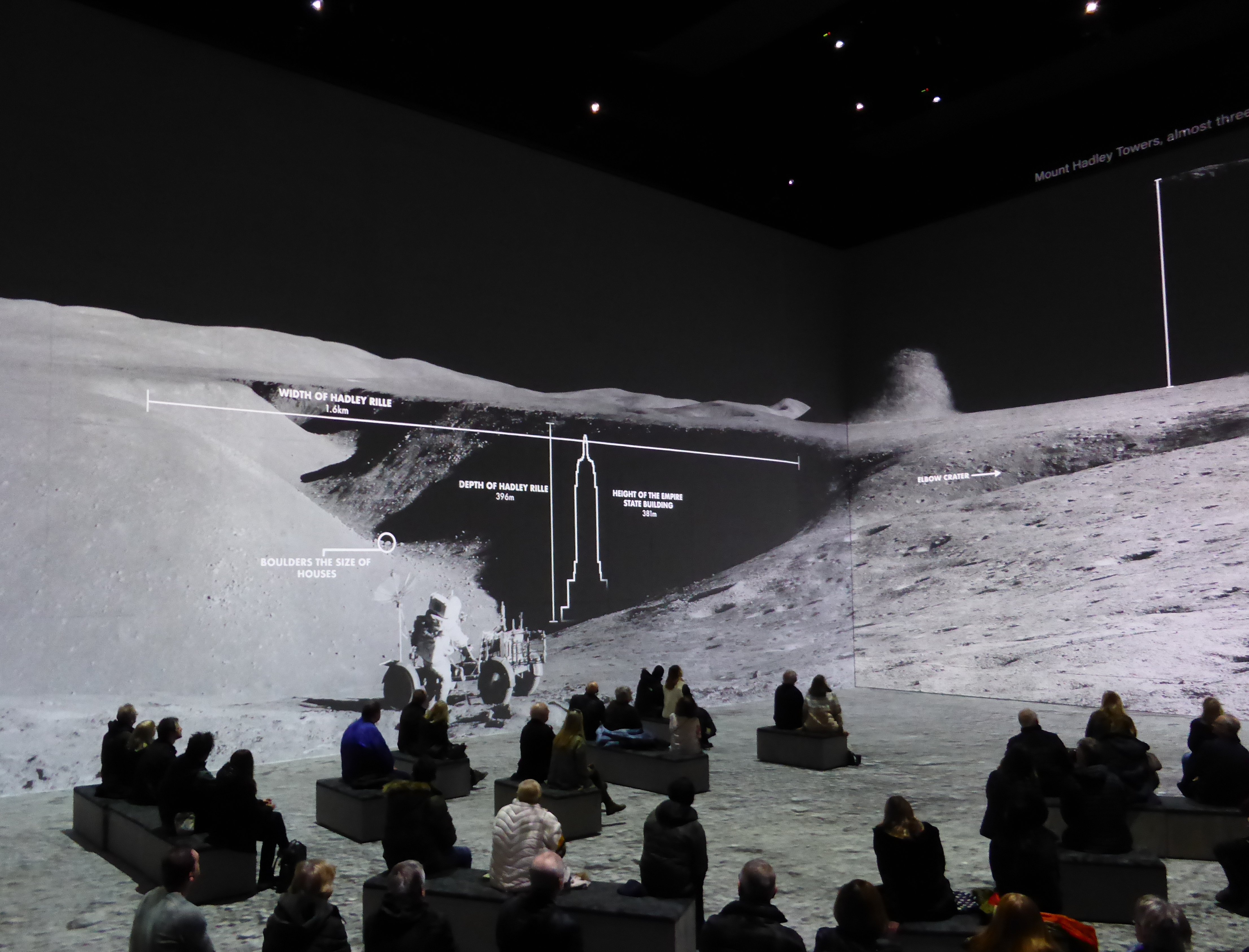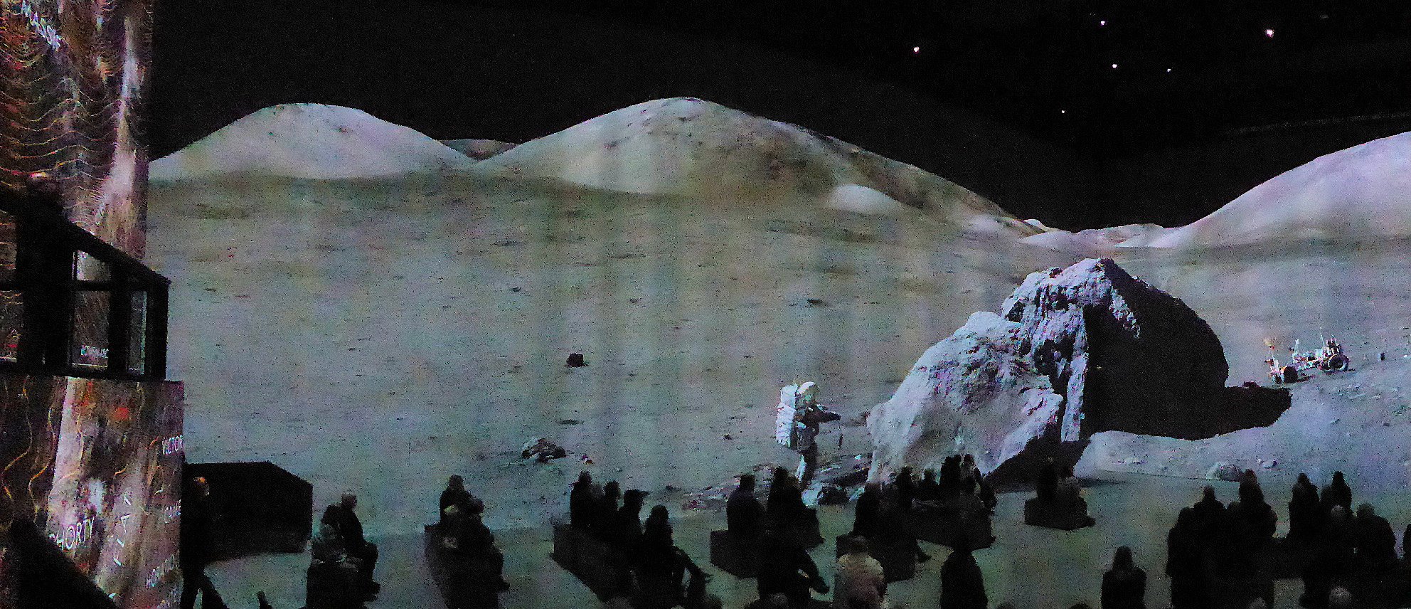 The projections of the moon were fantastic, as were the panoramas which really gave a sense of the landing zones topography and the scale of it all. It is not 3D but by using the walls and floor it creates the next best thing from 2D images.