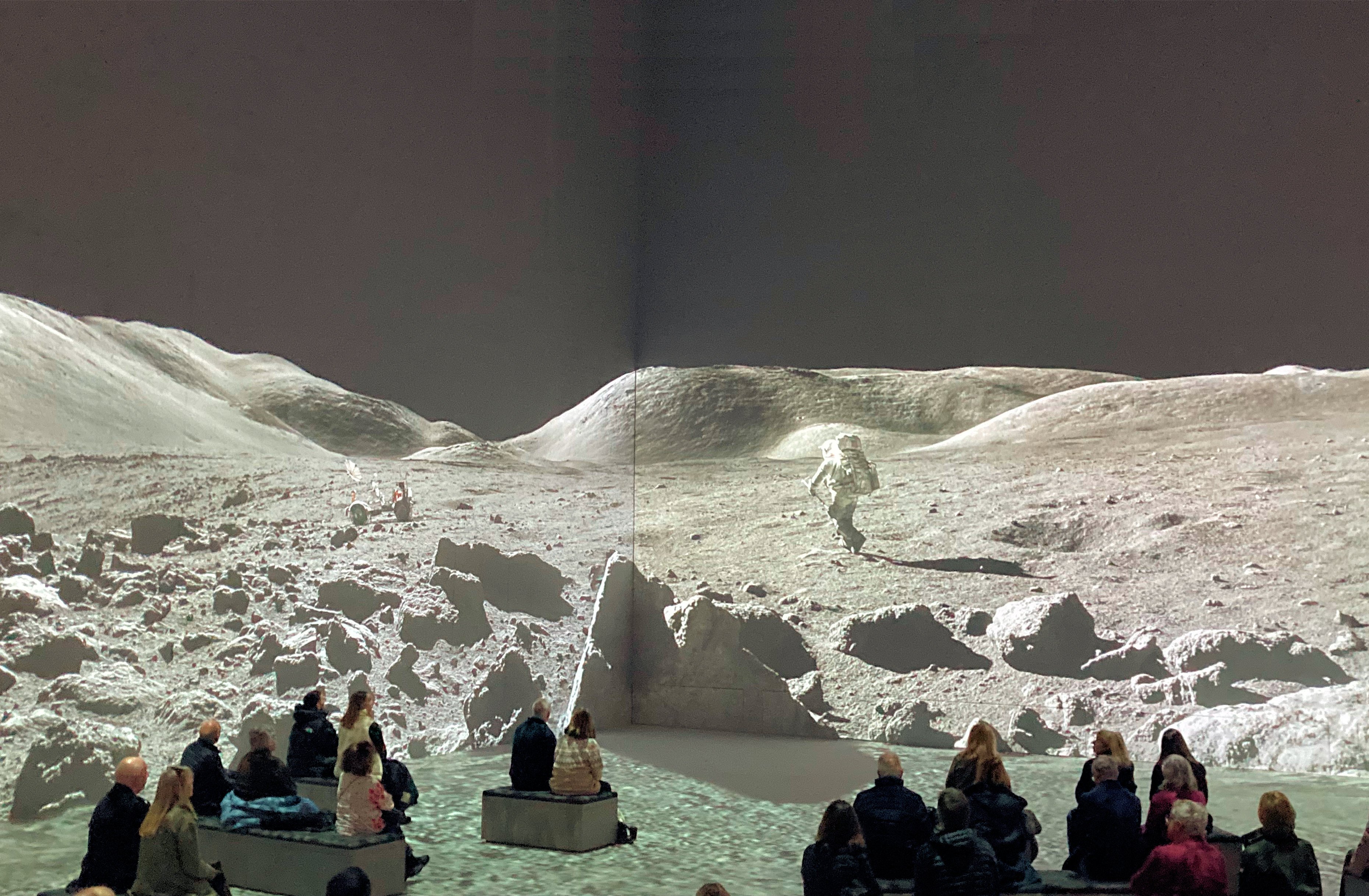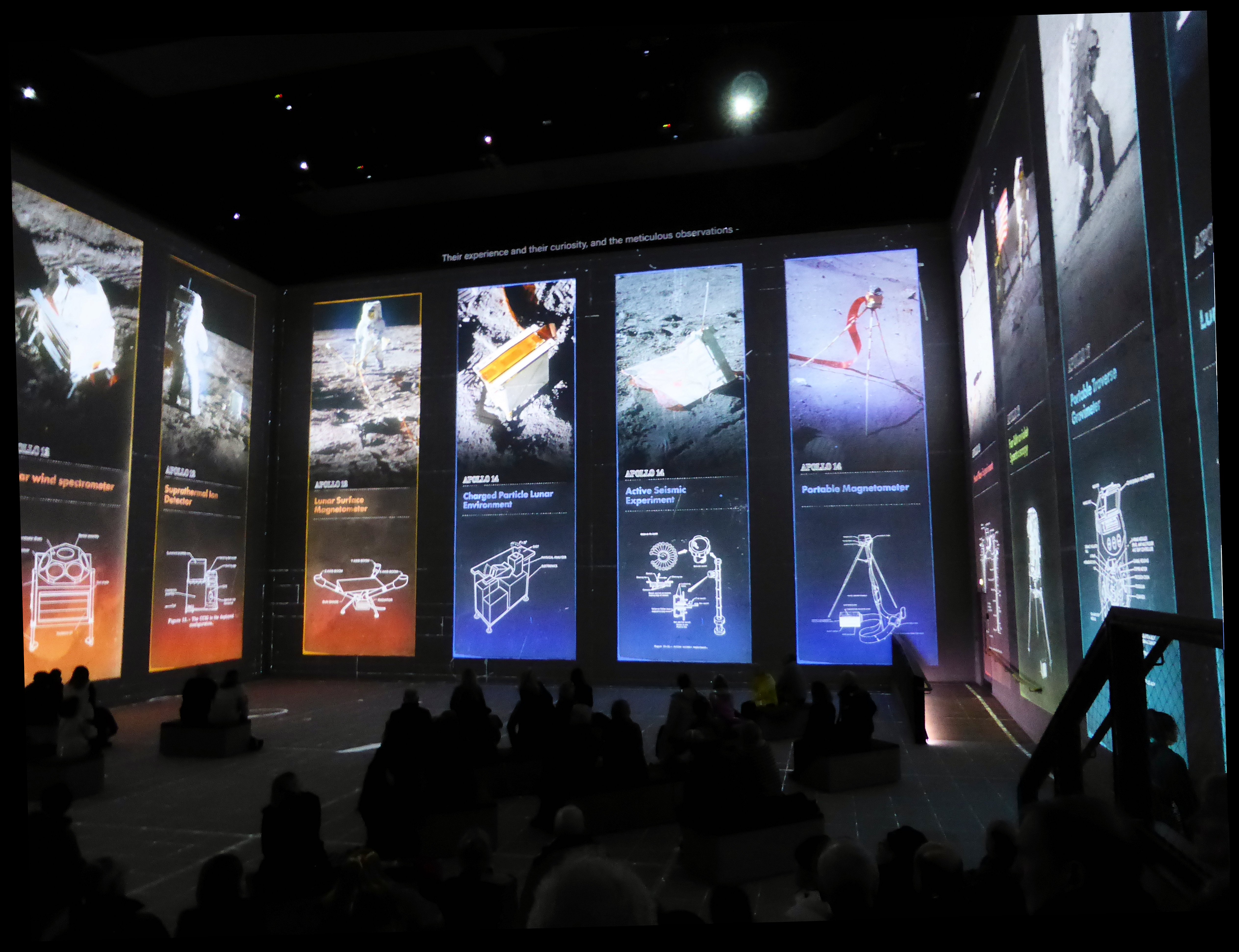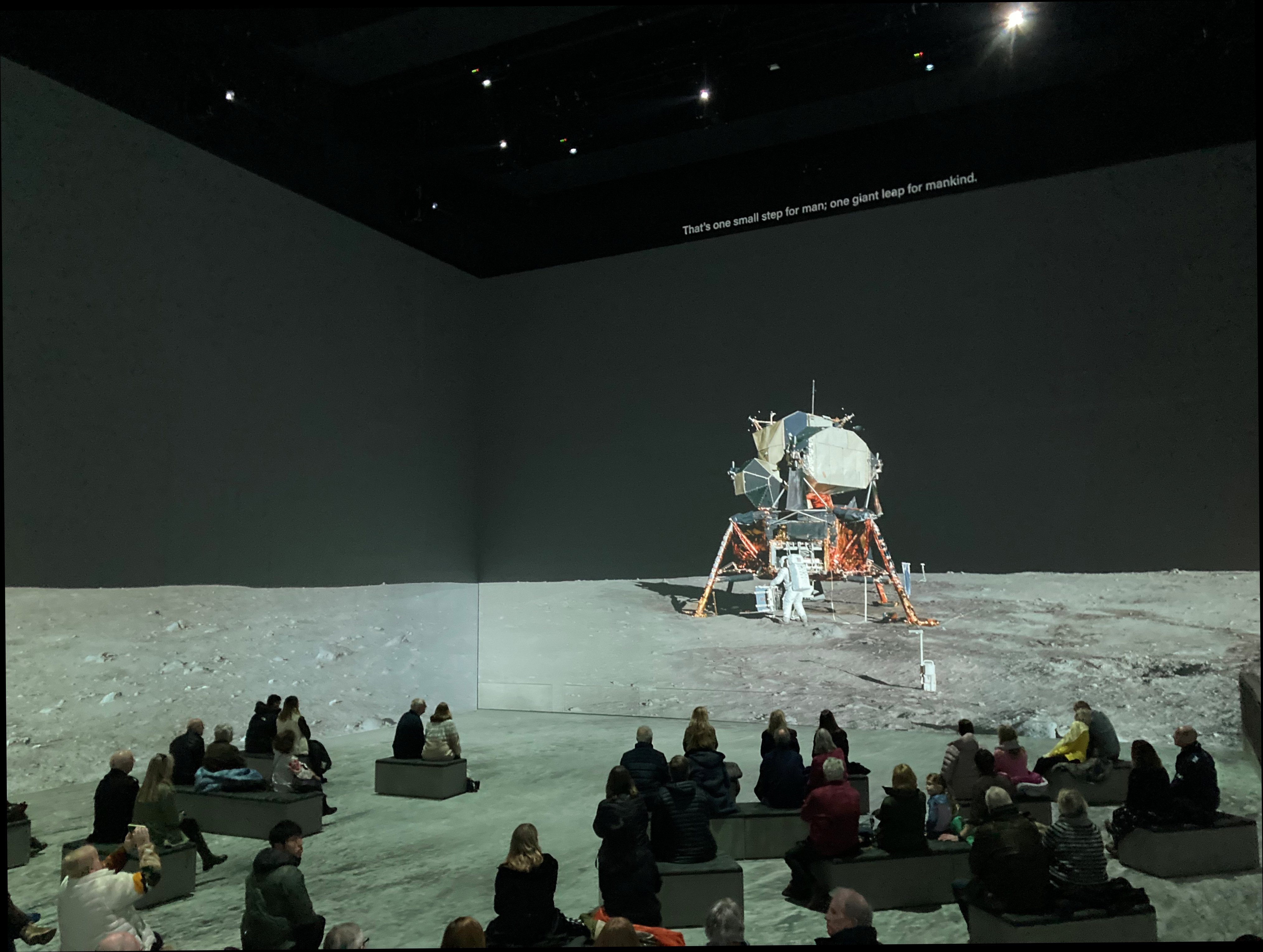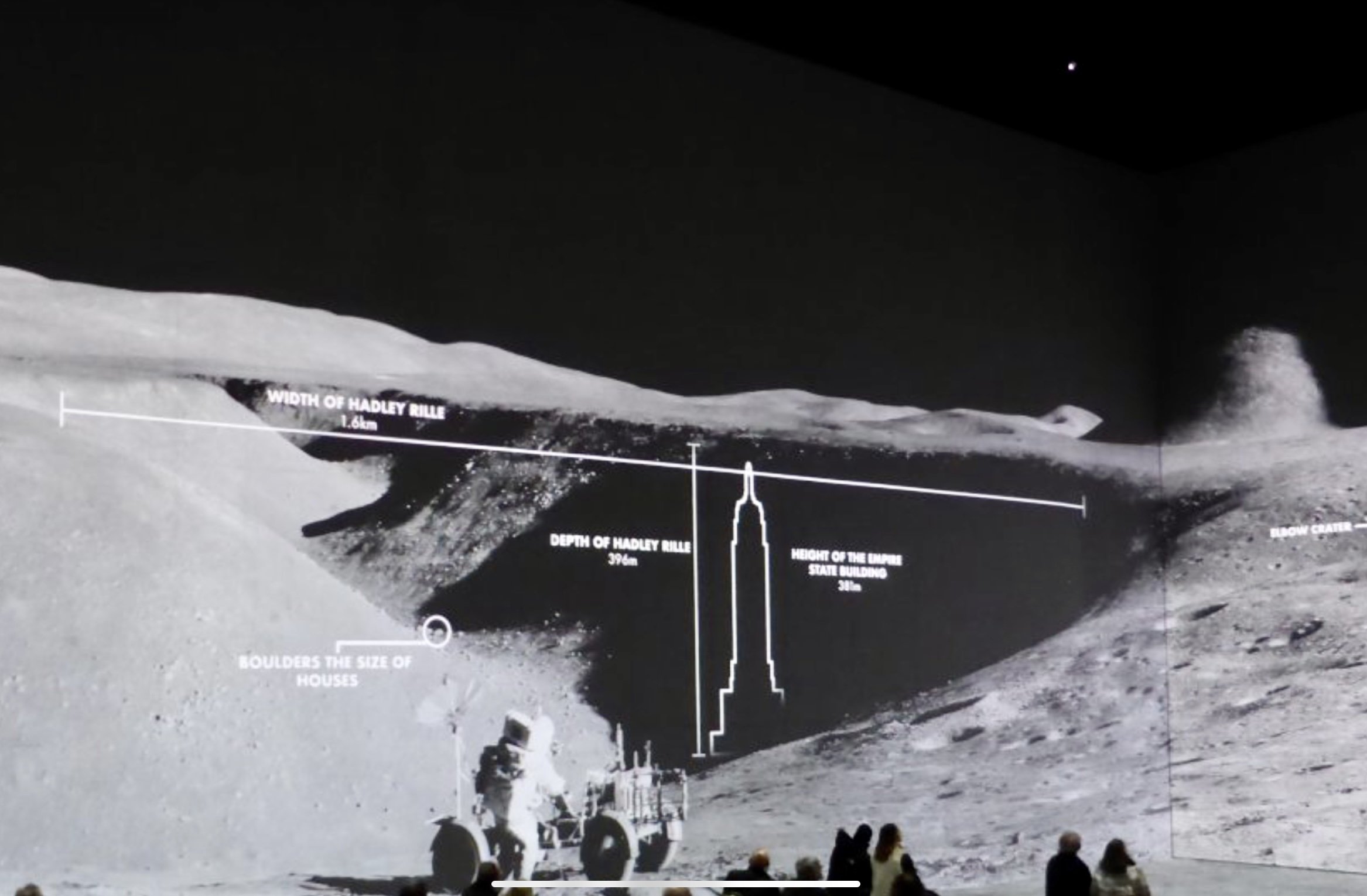 The projections of the moon were fantastic, as were the panoramas which really gave a sense of the landing zones topography and the scale of it all. It is not 3D but by using the walls and floor it creates the next best thing from 2D images.