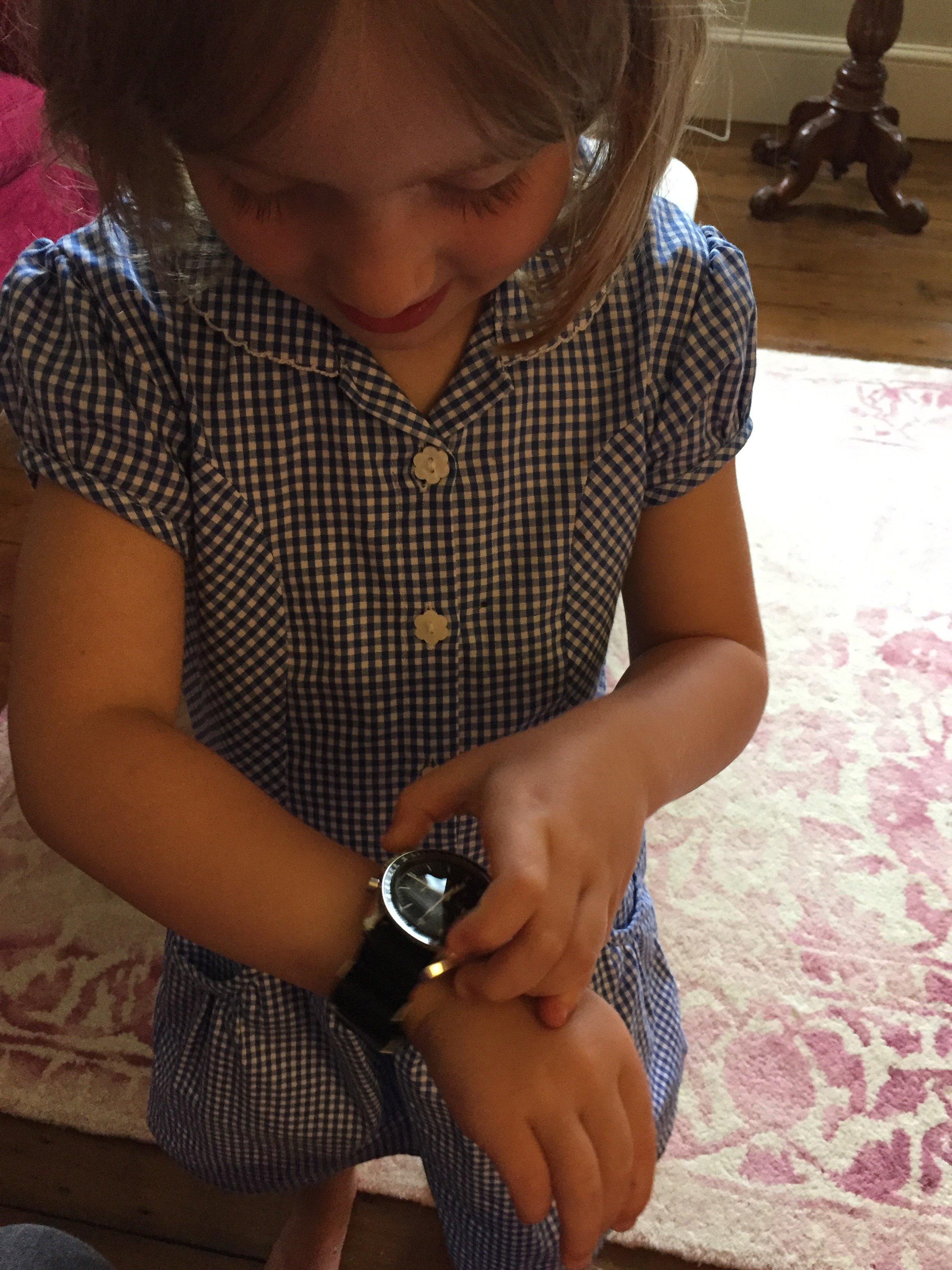 Gotta let them start learning early. He has a small Timex and a digital Paw Patrol watch.