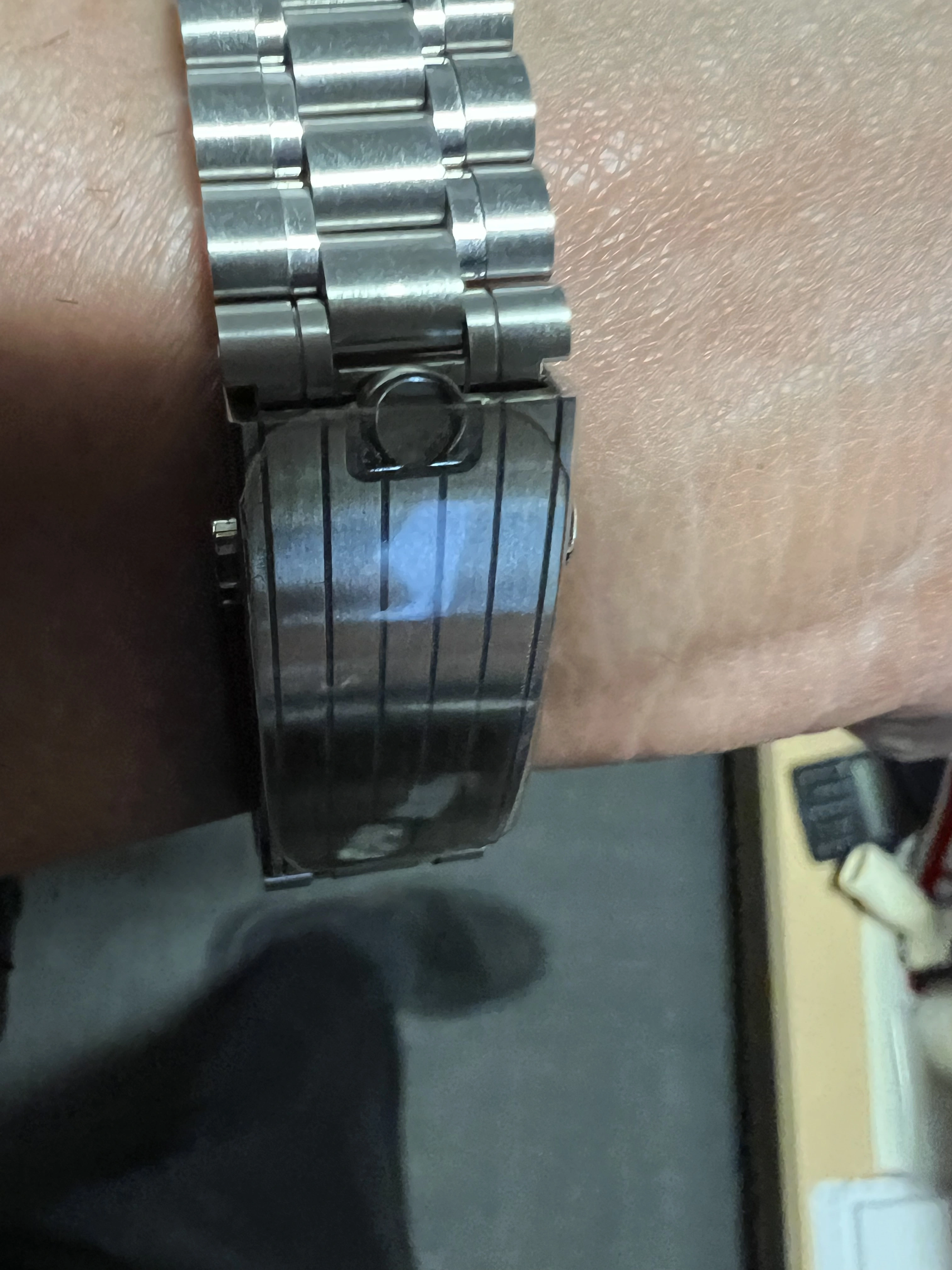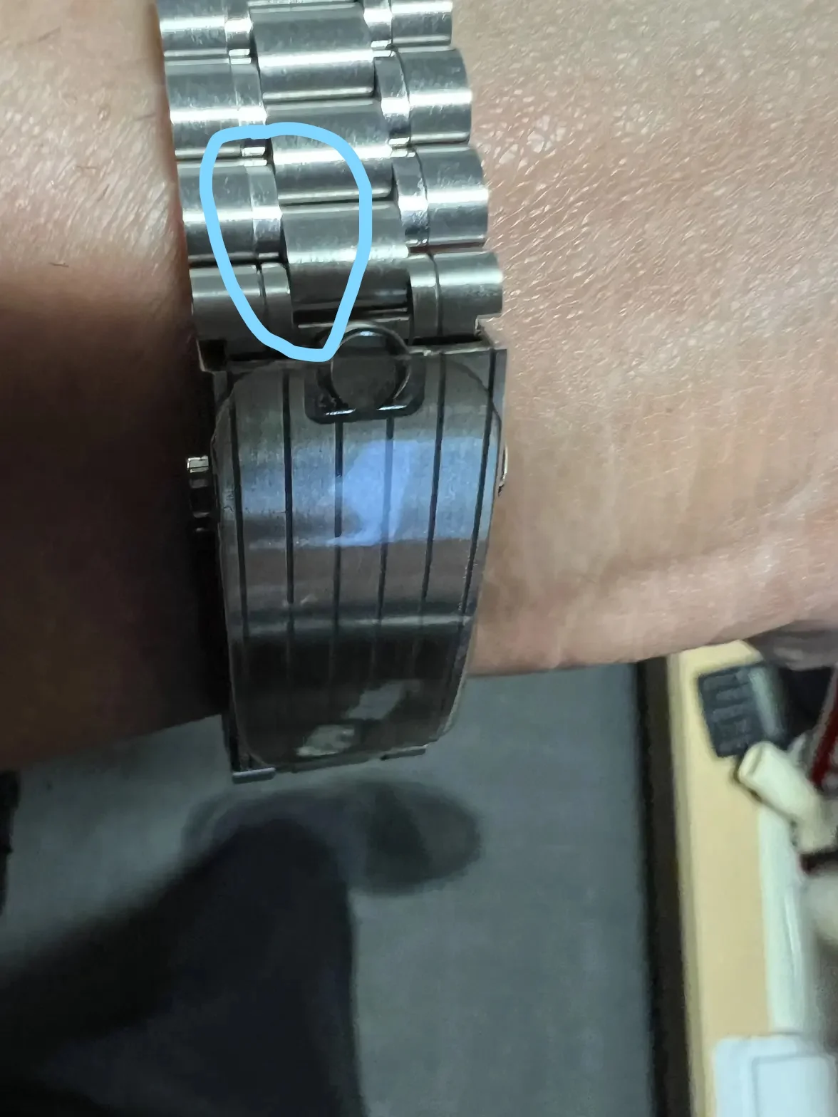 So has anyone noticed that the middle link parts on each side of the clasp of the sapphire version are not polished? And what is the correct term for them, btw?