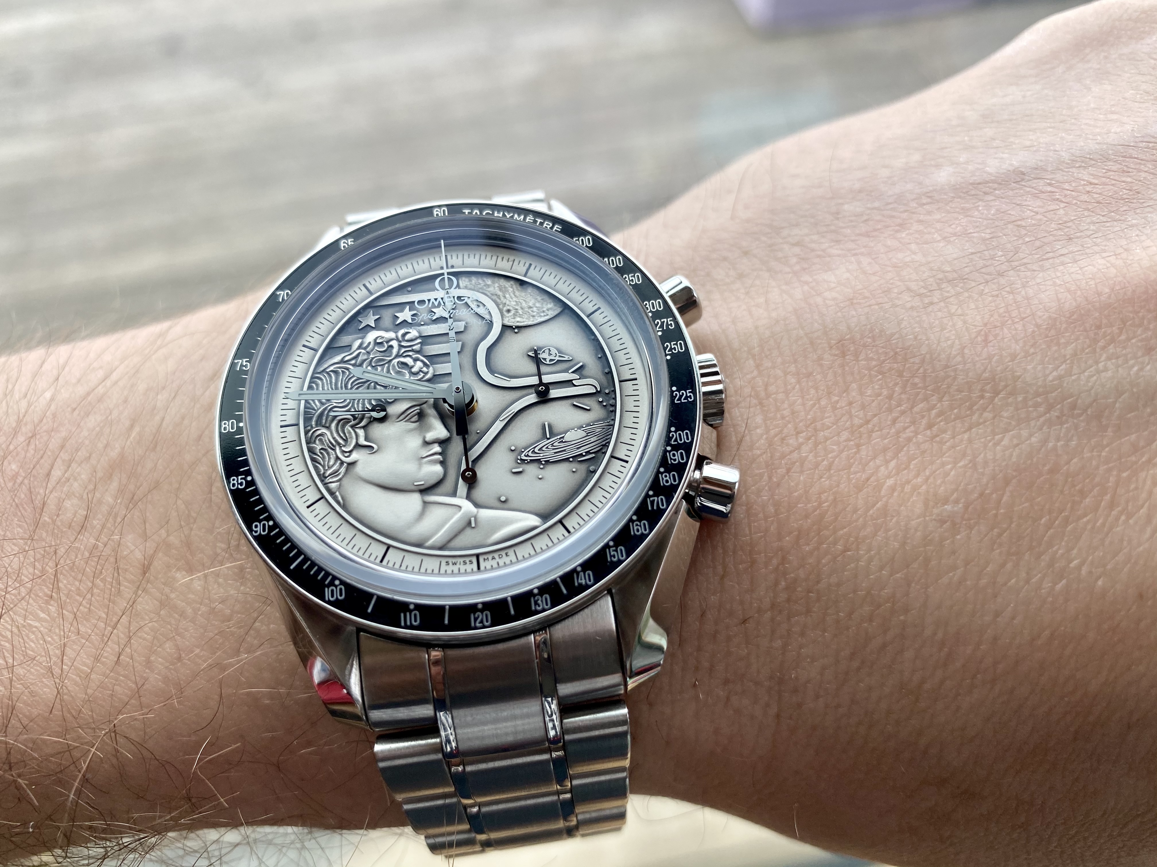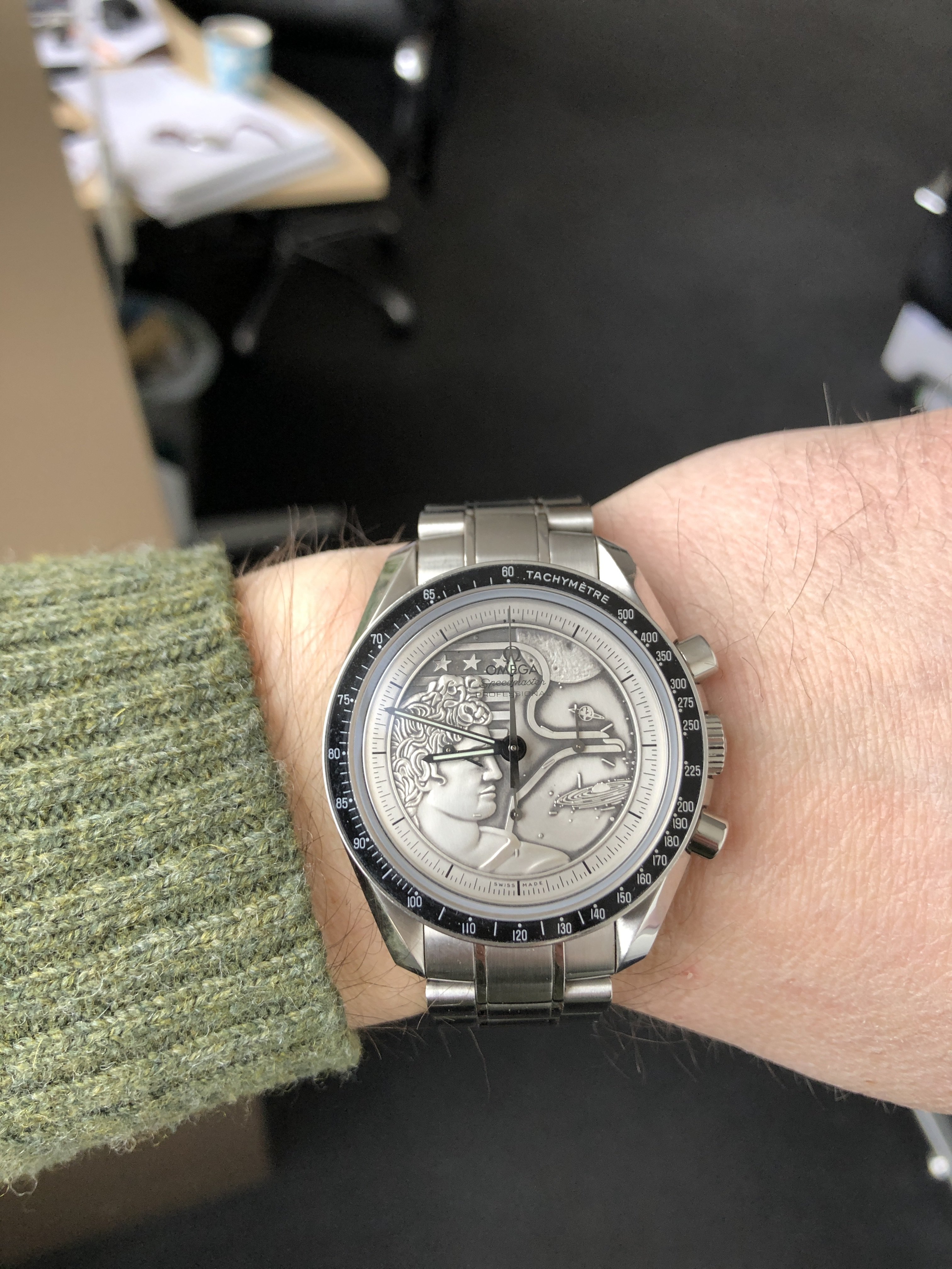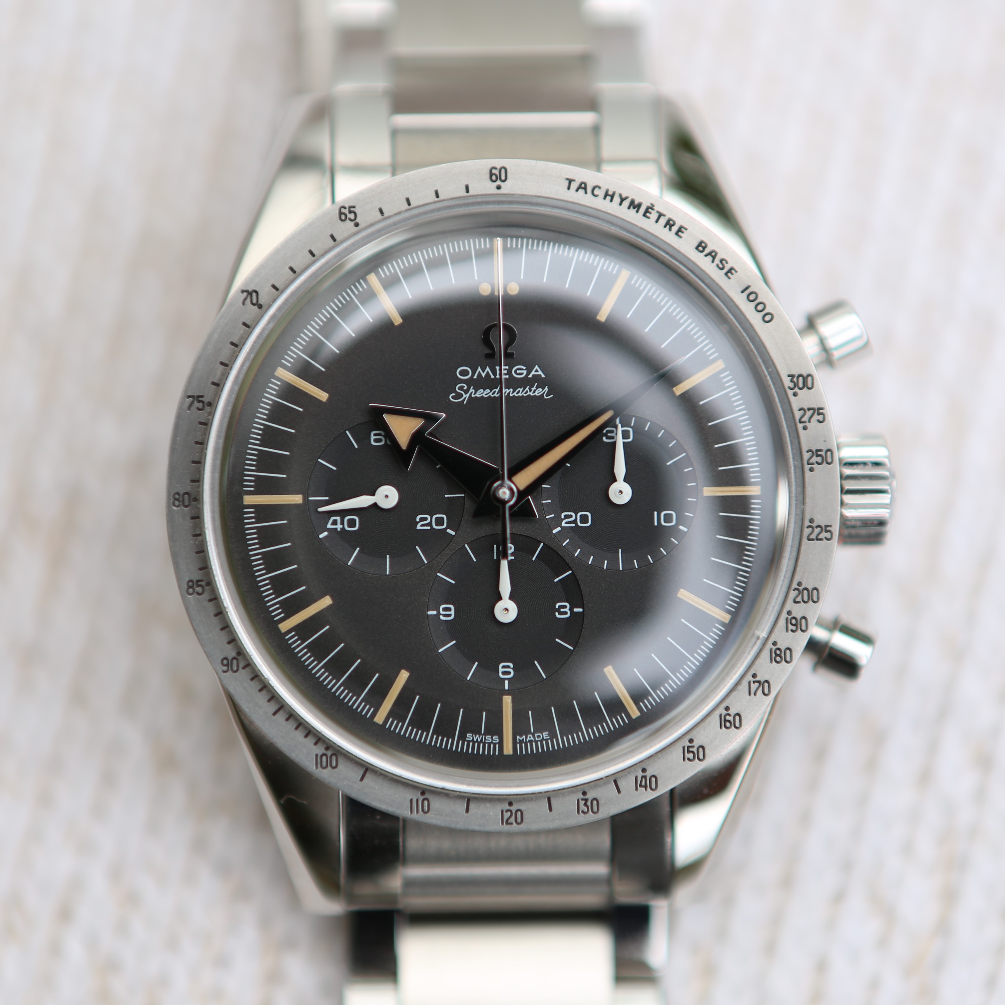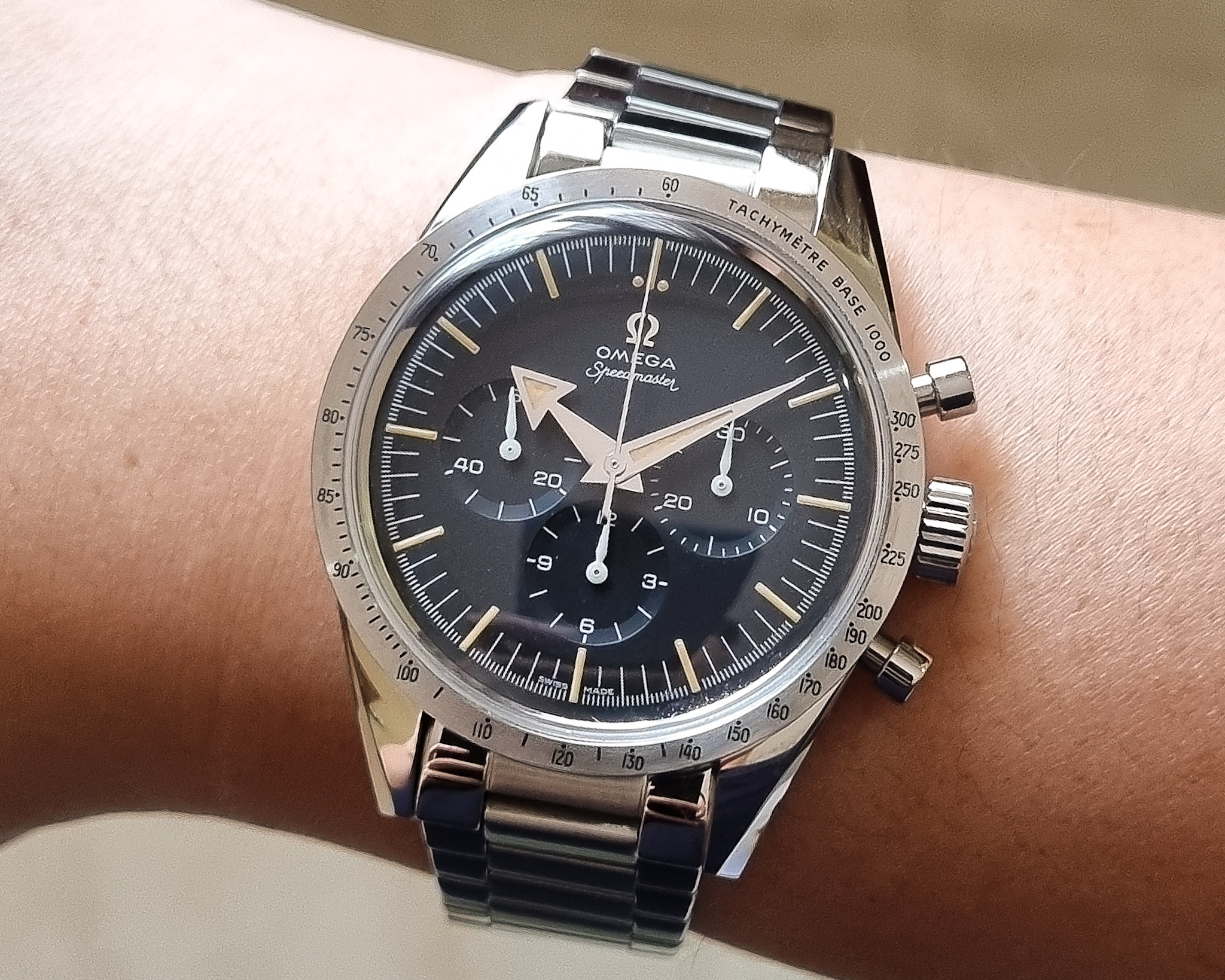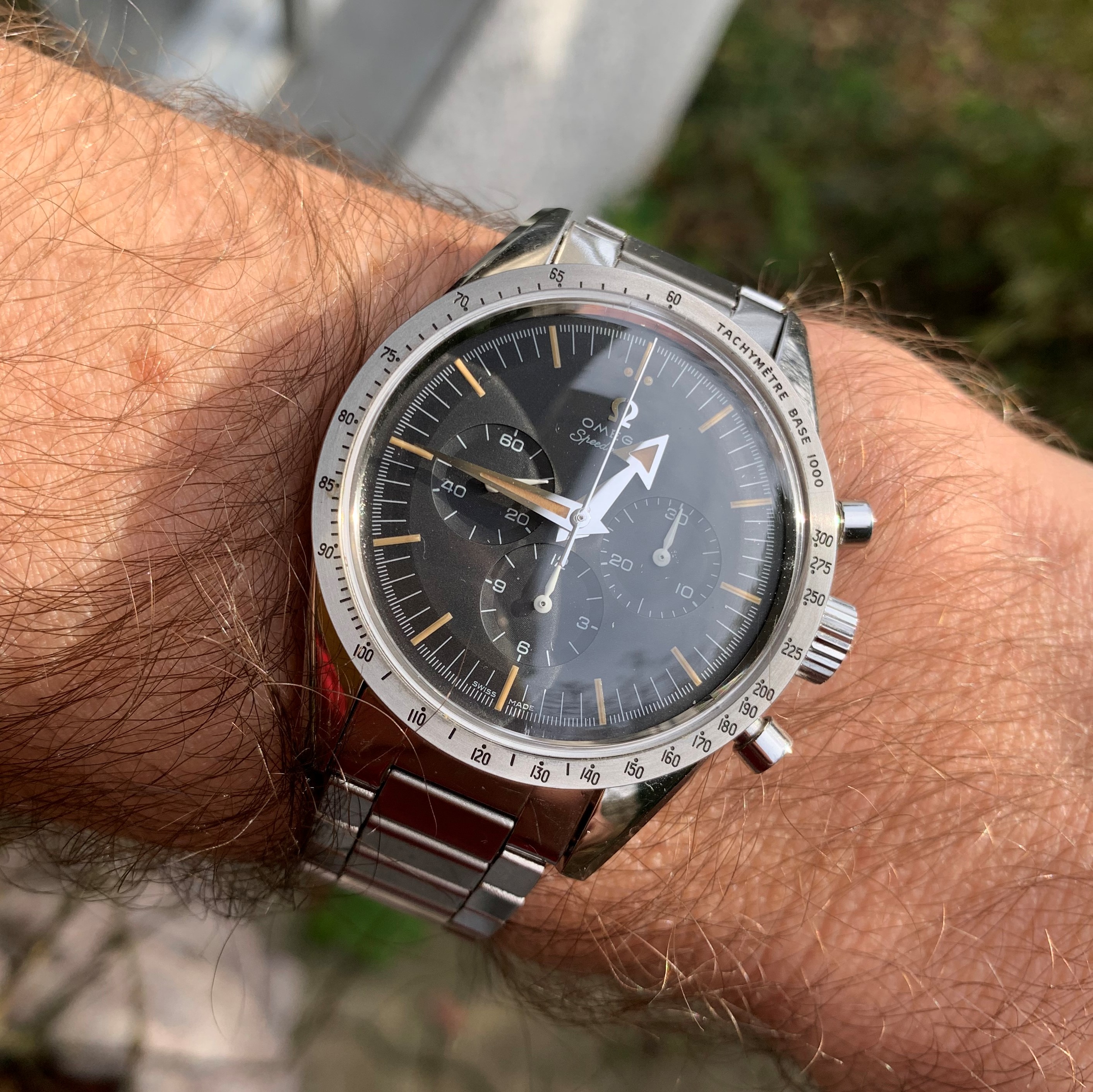 2. Value. It is still rather cheap - dare I say undervalued - compared to the current generation of Speedmasters, all things considered (as of writing, about 7k, which is what they cost in 2017 when they arrived). If it had a 321, it would be worth double (and it would have the wrong 321). The dial still has sub-second markings to fit a 321 (now that they smartened up we probably will never get a new 6Hz movement with an old 5Hz dial again) so a die hard could make the switch...but personally i'm fine with the 1861...
