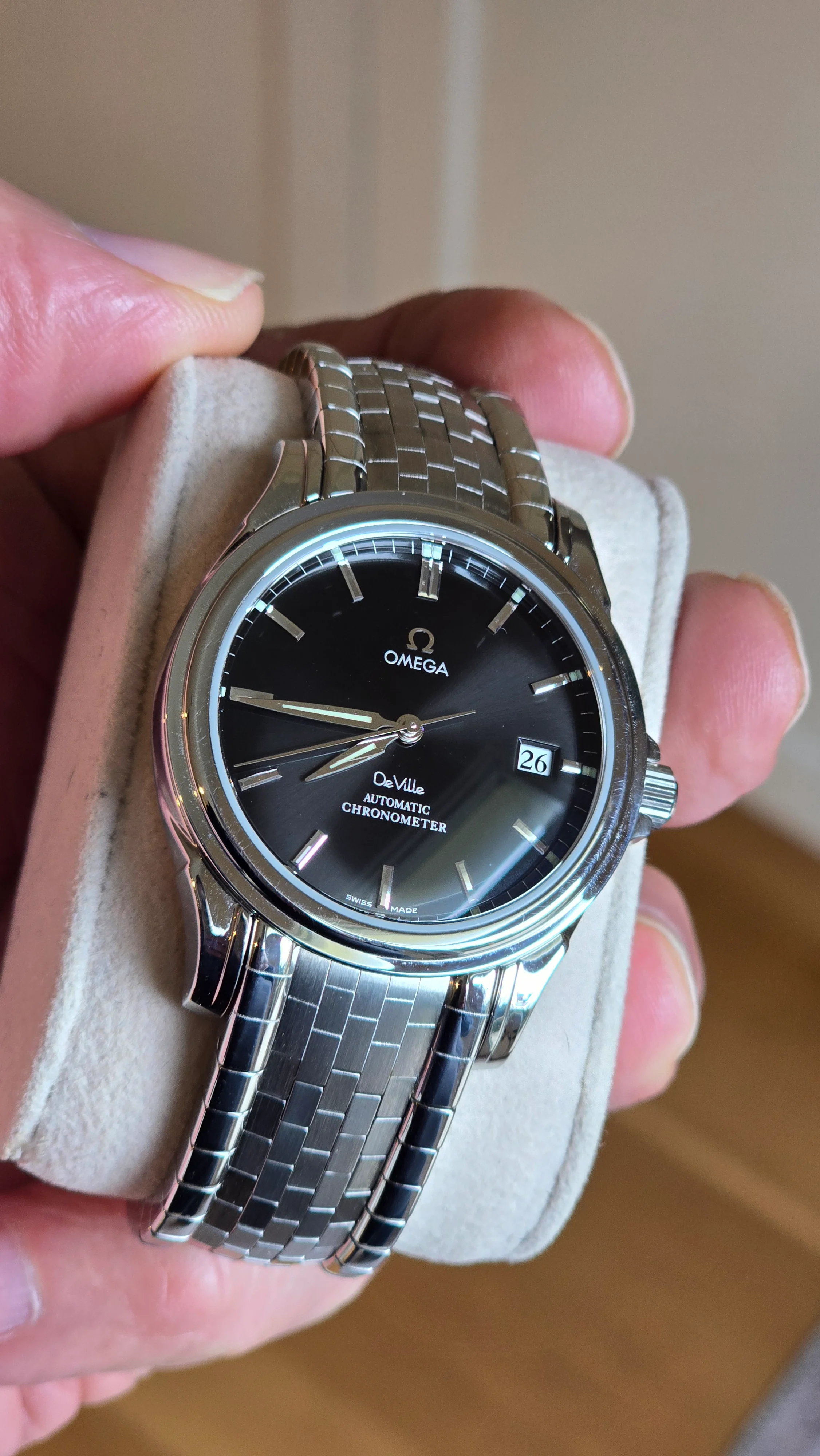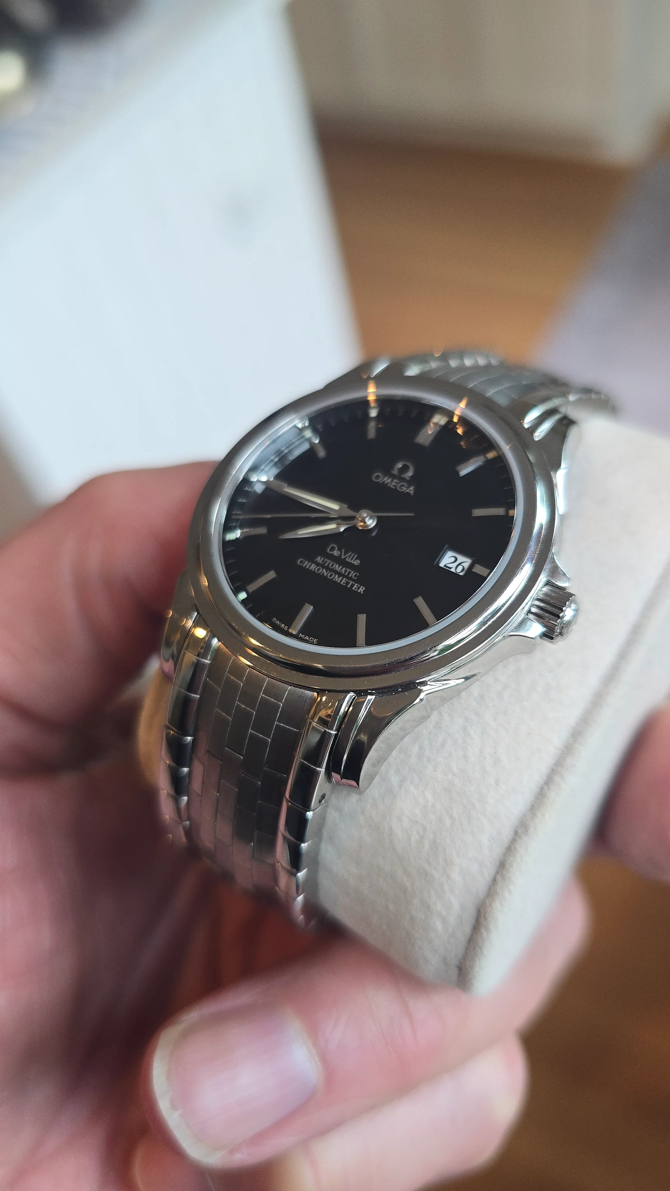 There was a reason why it was unsold until now - this version was priced out of proportion. I believe a "normal" moon watch cost in the region of 27-28 000 Swedish crowns and this version around 60-65 000. OK, it has a dial made out of something that has actually been to/in space, it has a sapphire crystal and an almost magic case back but... the price was ridiculous. Some years later the position for negotiations were better... A lot.